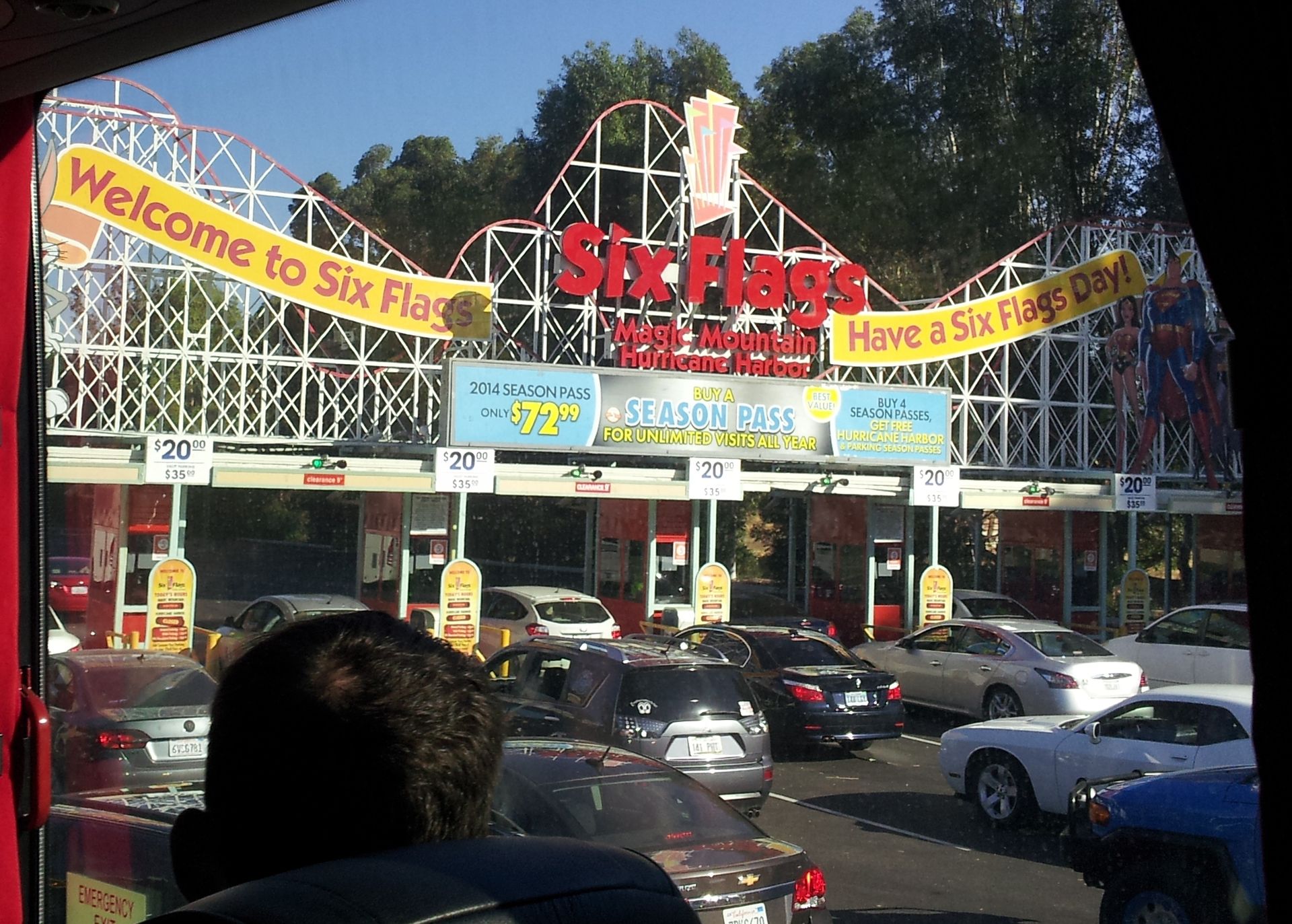 Die Bahn mit dem wohl besten Eingangsschild das ich kenne - und das in einem Six Flags Park.