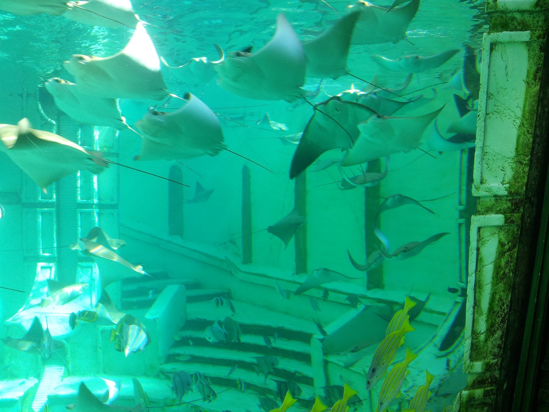 Im Ausgang ziehen Rochen und andere Fische ihre Kreise durch das versunkene Atlantis.