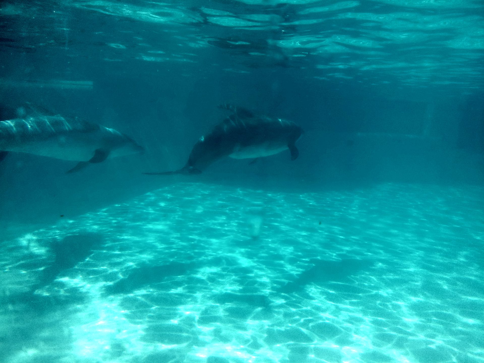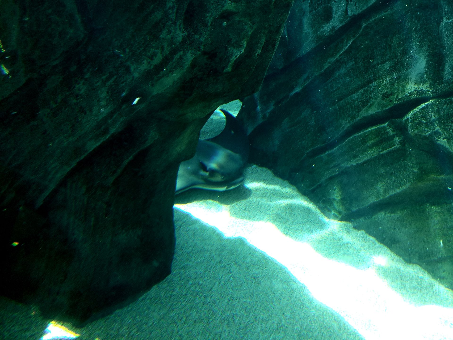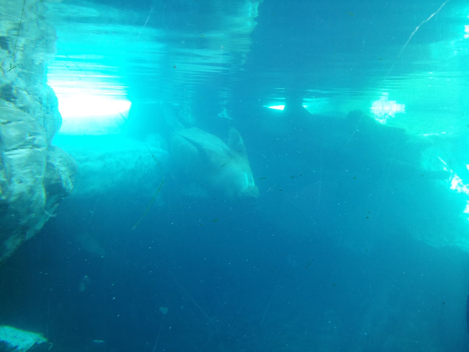 Also kam es auf dem Rücken schwimmend bis direkt an die Scheibe, vollführte einen astreinen Immelmann und verschwand irgendwo in den künstlichen Felsen des Beckens.