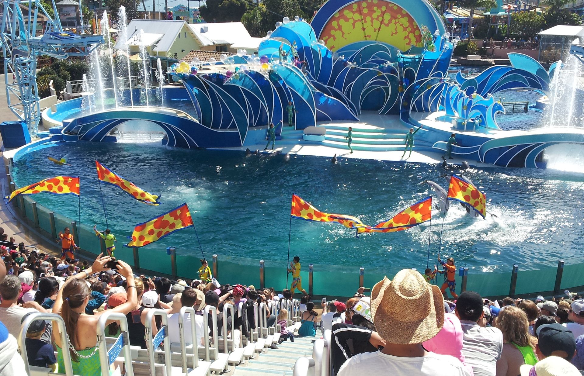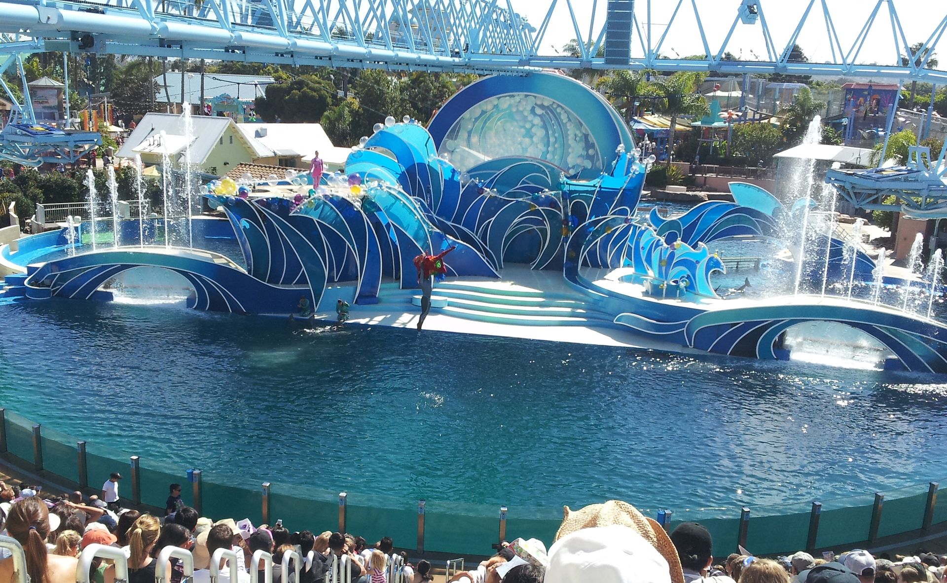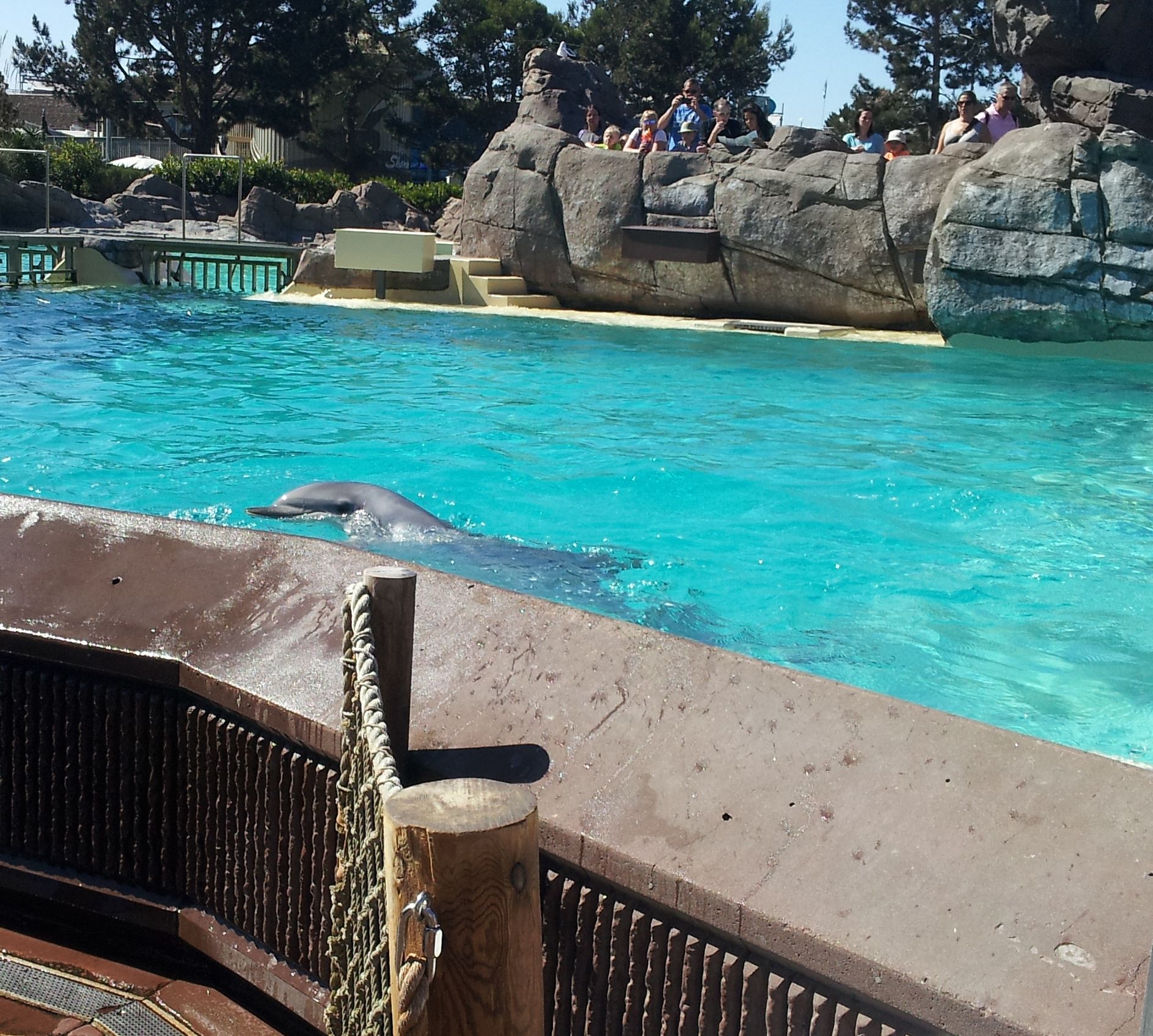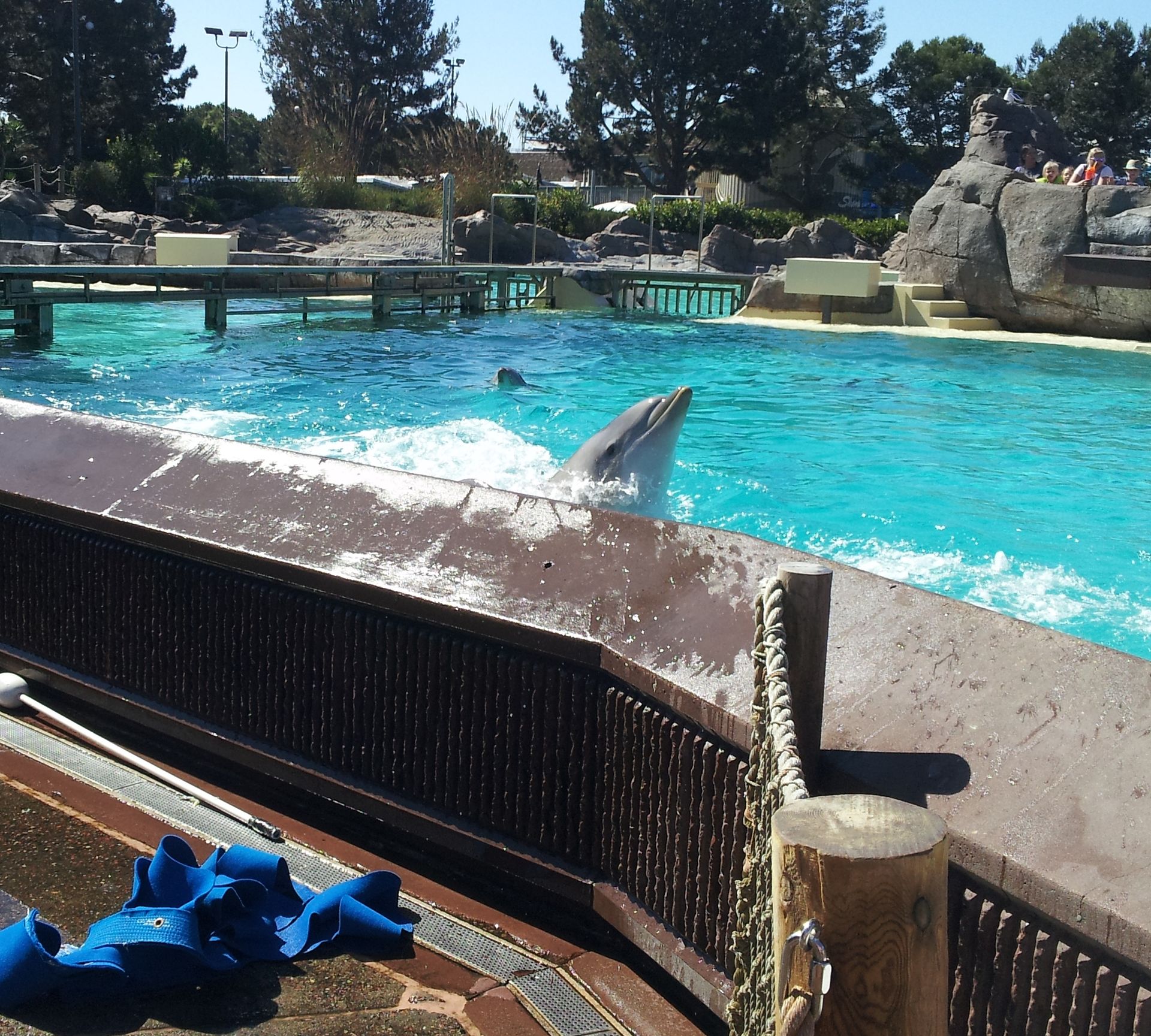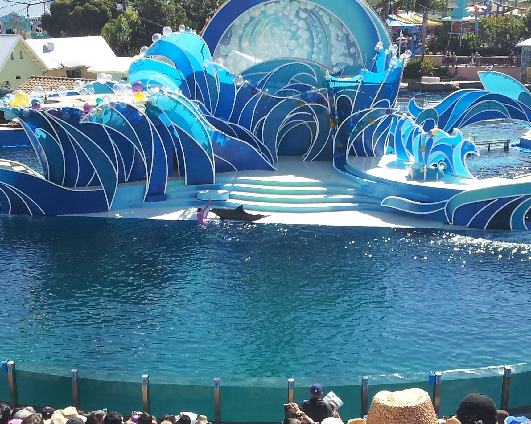 Nein, das ist noch nicht das Shamu Stadium. Hier vollführen Delfine ihre Kunststücke.