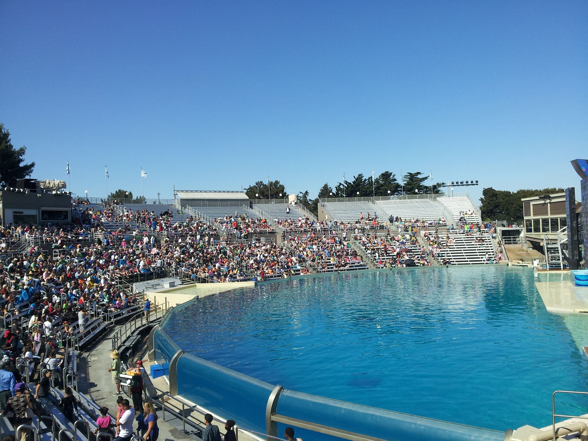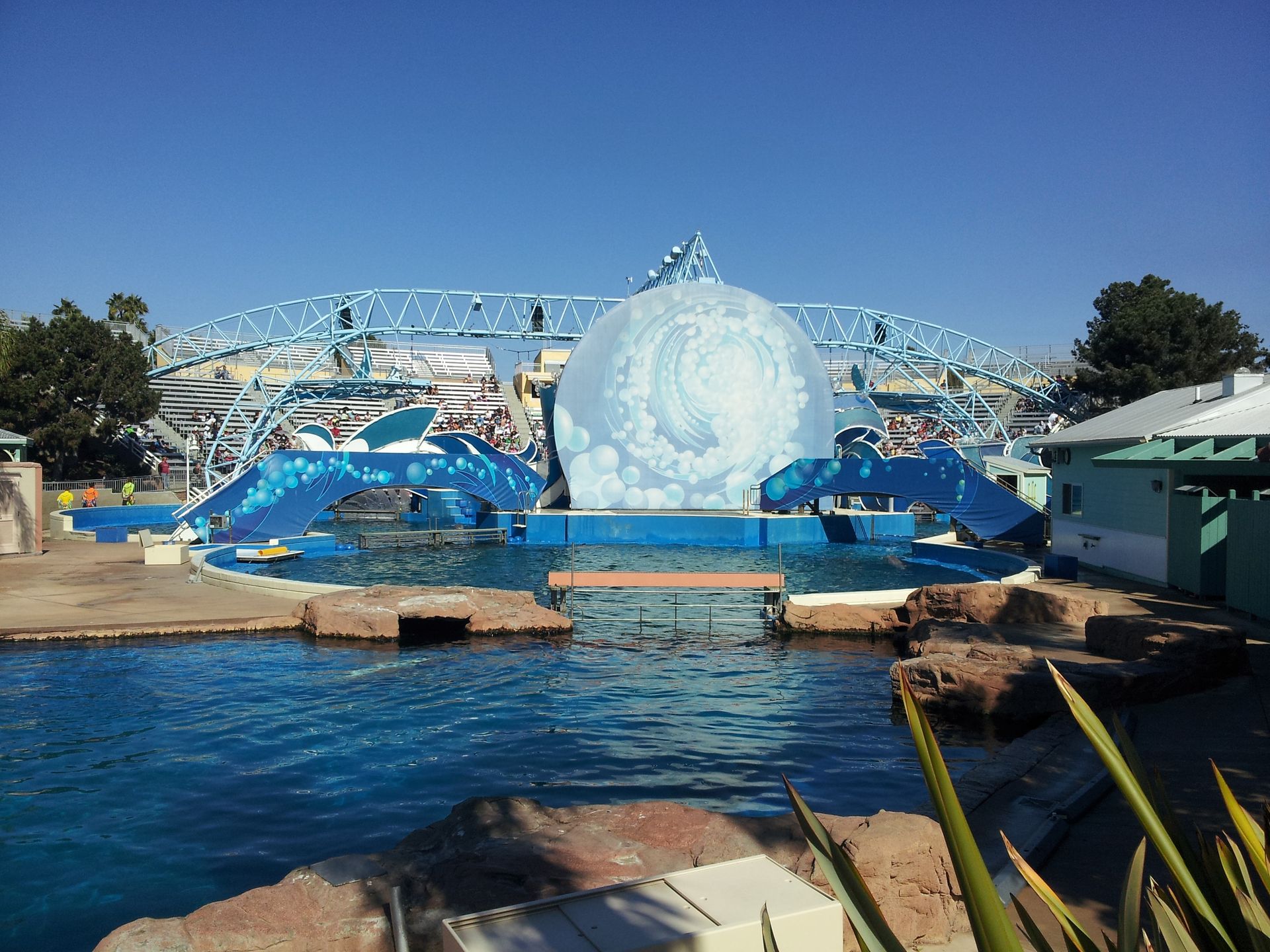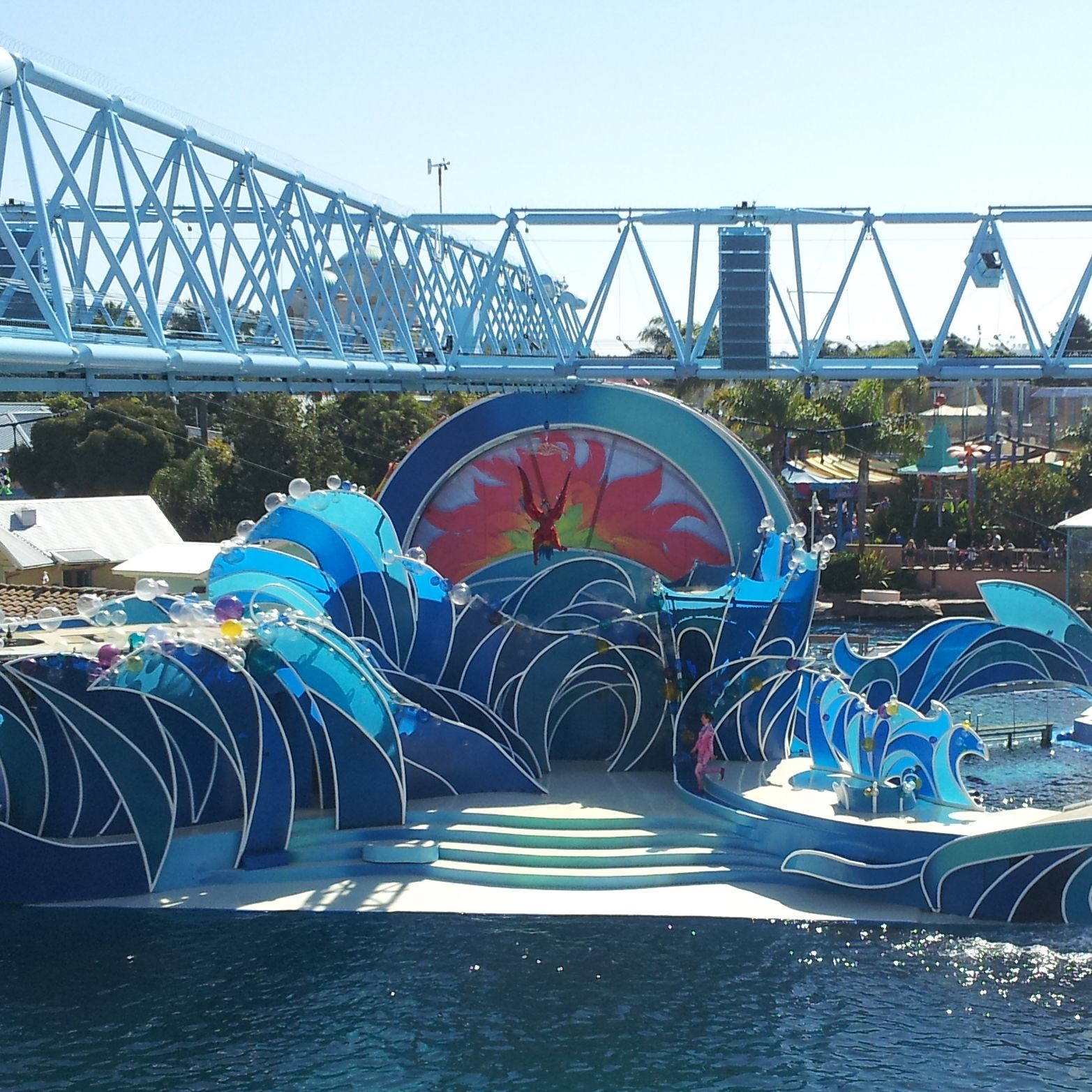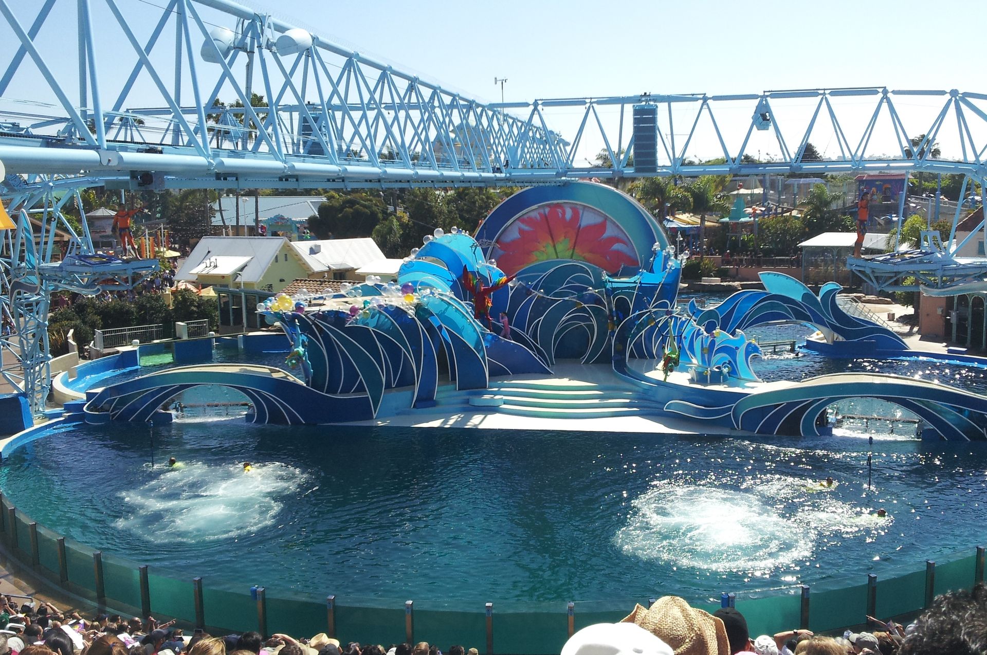 Nein, das ist noch nicht das Shamu Stadium. Hier vollführen Delfine ihre Kunststücke.