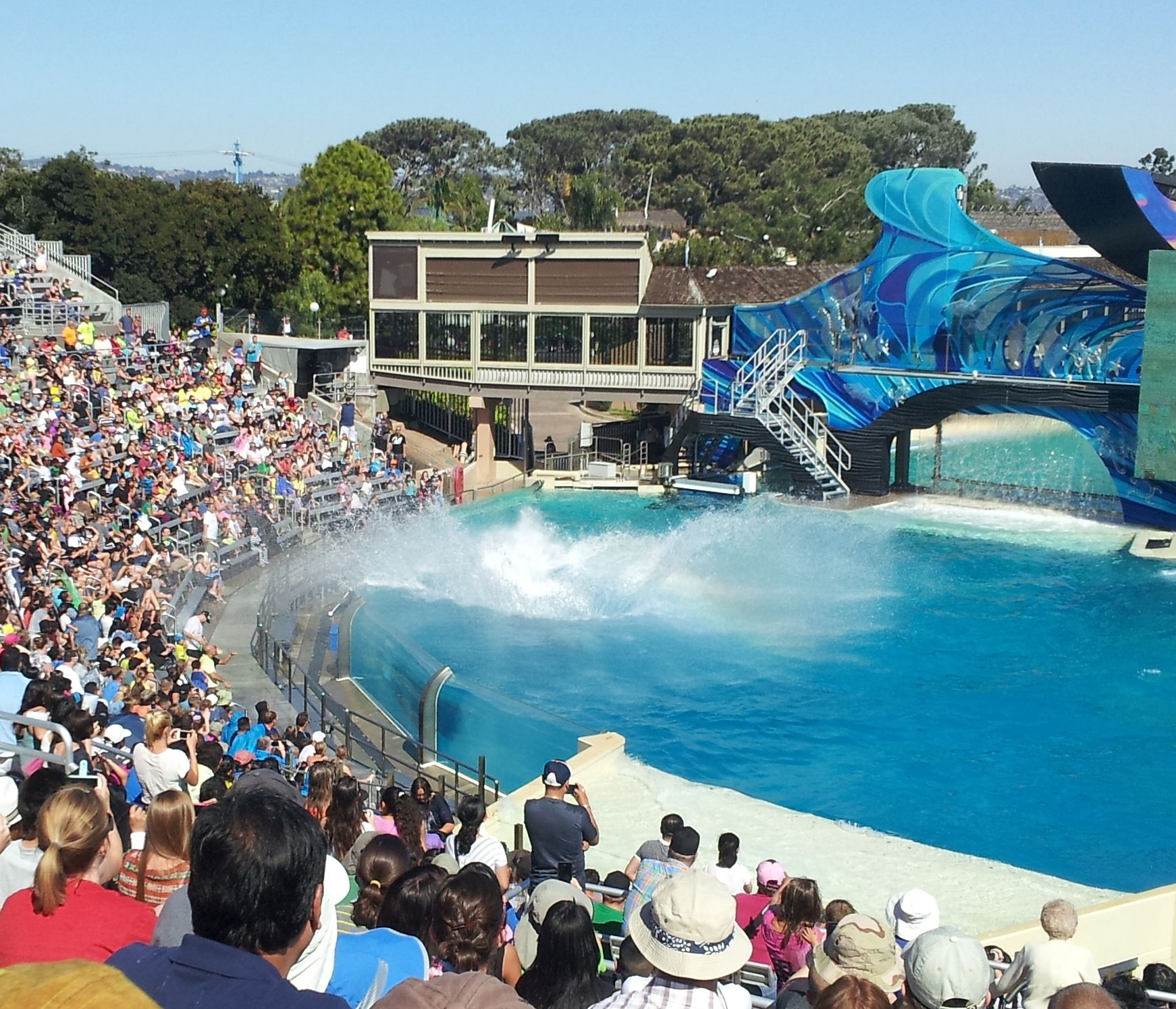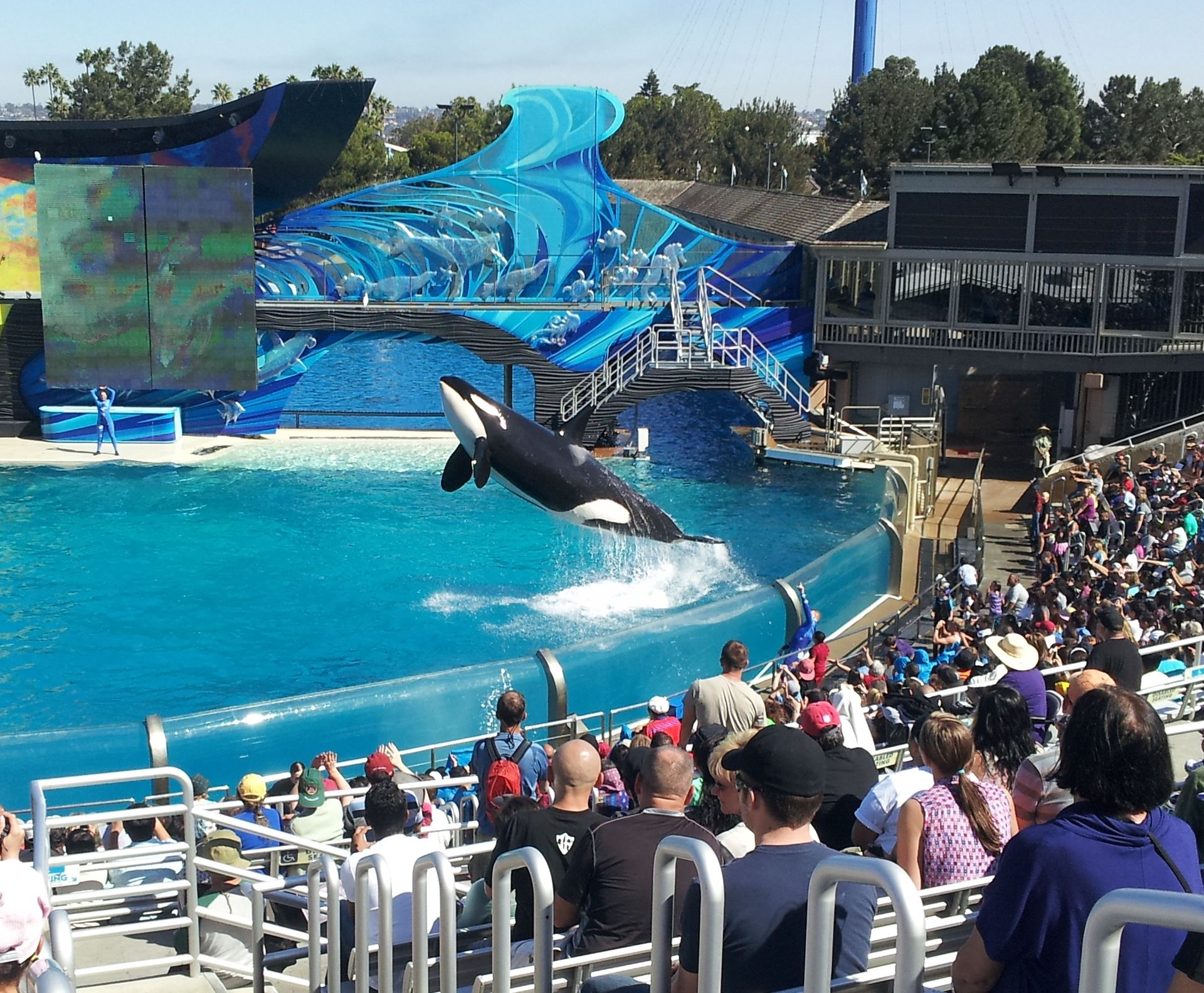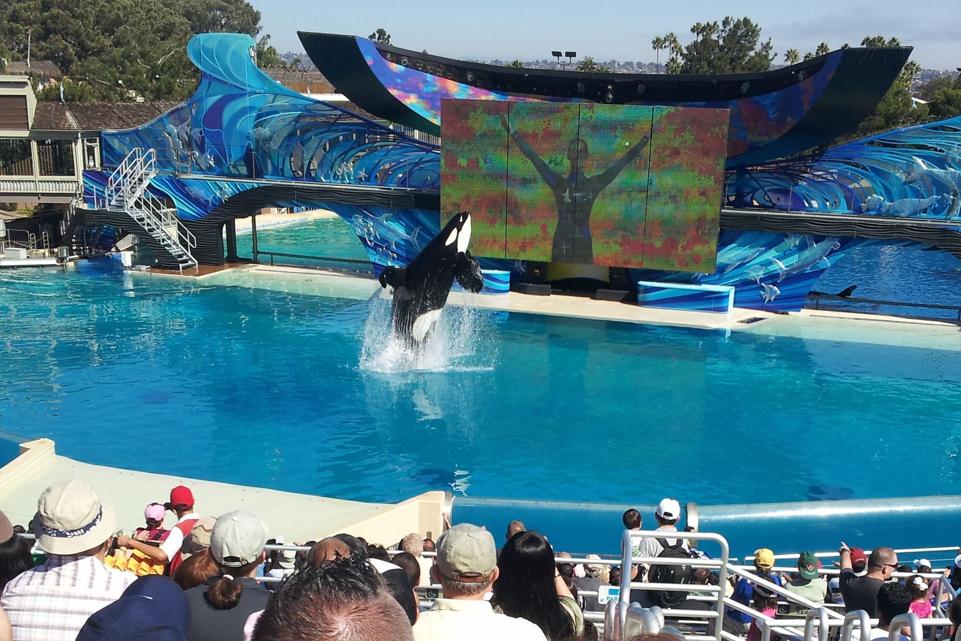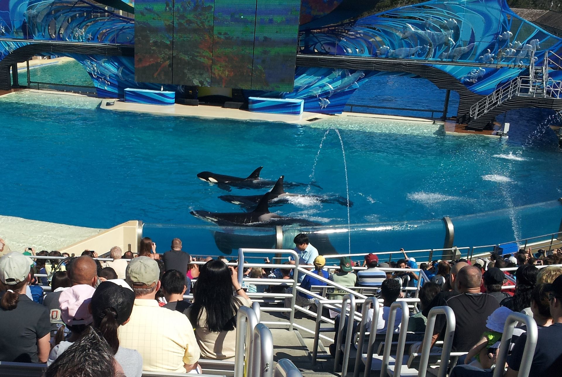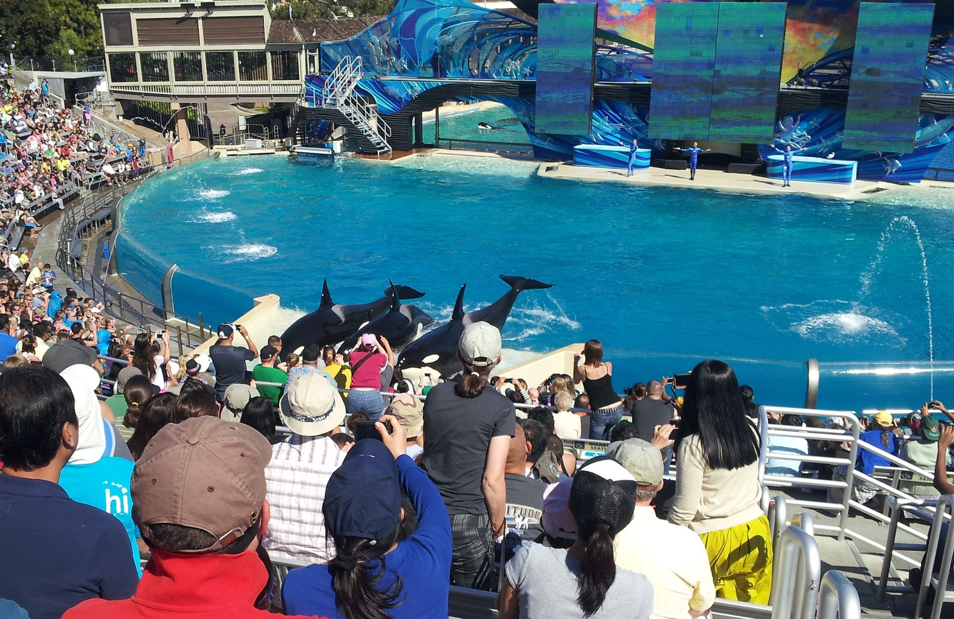 Nein, das ist noch nicht das Shamu Stadium. Hier vollführen Delfine ihre Kunststücke.