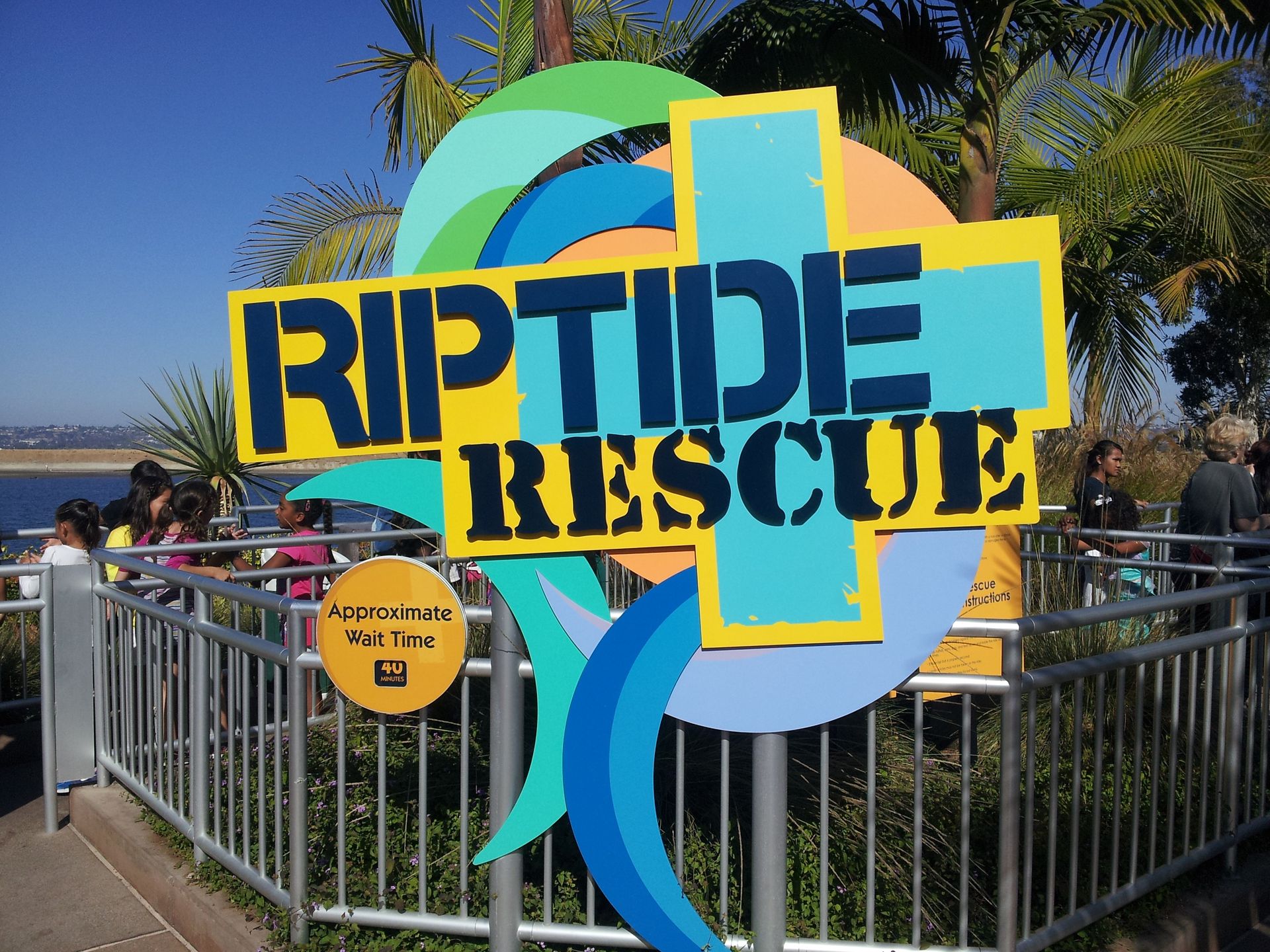 Bei einer gefühlten Fortbewegungsgeschwindigkeit von unter 1 Meter pro Minute und dem dichten Gedränge - was die Luft in der Halle auch nicht wirklich besser machte - war unsere Motivation aber noch vor dem Erreichen des Tunnels erschöpft und wir schlossen uns einigen anderen Besuchern an, die sich über einen Notausgang ins Freie retteten. Die Runde fortzusetzen war angesichts der Uhrzeit wenig sinnvoll, also bereiteten wir uns langsam auf den Rückweg vor. Elke schaute sich kurz die sanitären Anlagen an, während ich auf eine kurze Wartezeit am direkt gegenüberliegenden Riptide Rescue hoffte. Auf dem Parkplan hatte ich nämlich angenommen, dass dies ein Huss Troika sei, den ich damals im Bobbejaanland richtig geil fand.