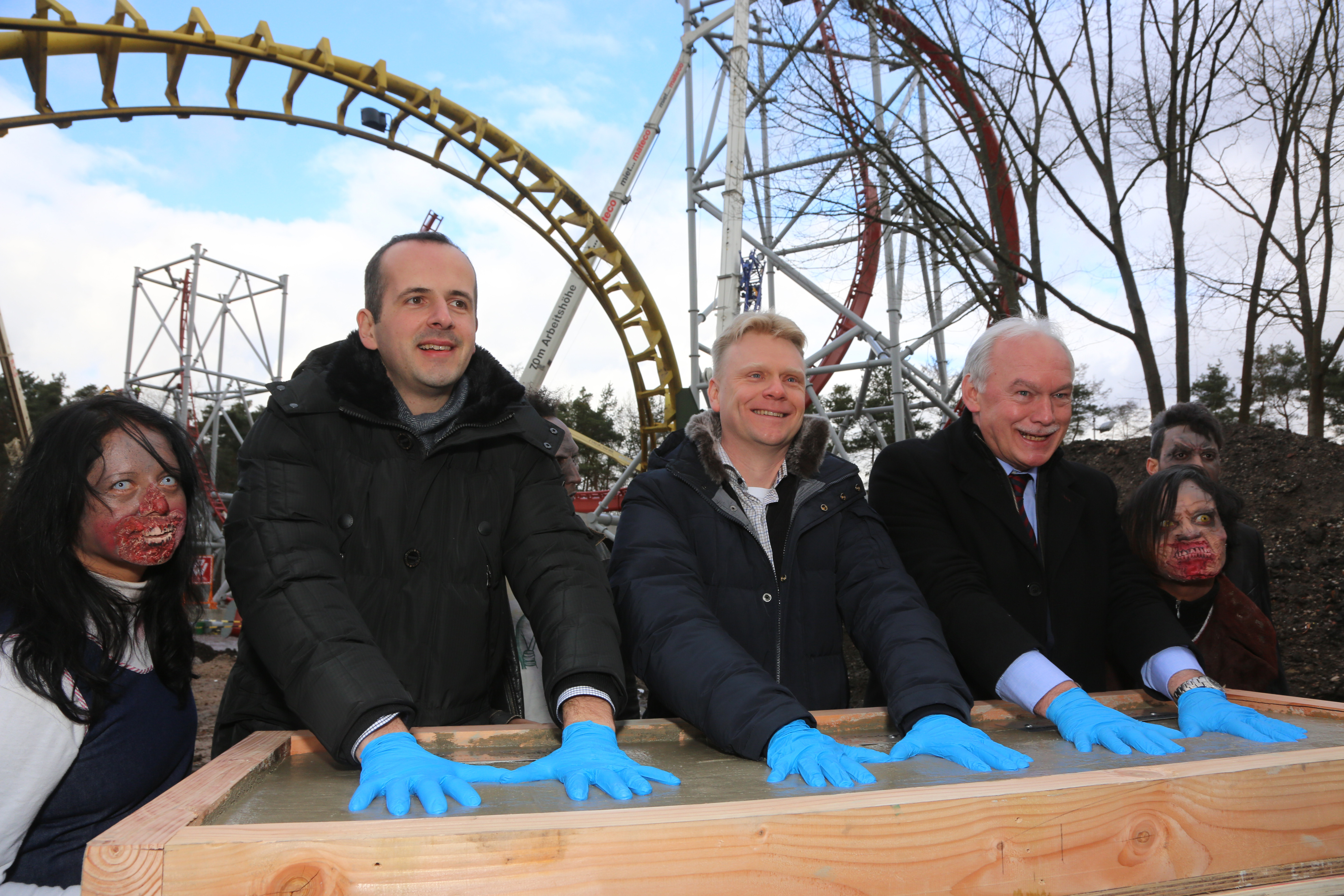 Heute stellten Steve Van den Kerkhof, Geschäftsführer der Plopsa-Gruppe, Lothar Lorch, Bürgermeister der Gemeinde Hassloch sowie Parkmanager Bernd Beitz die Baustelle offiziell vor.