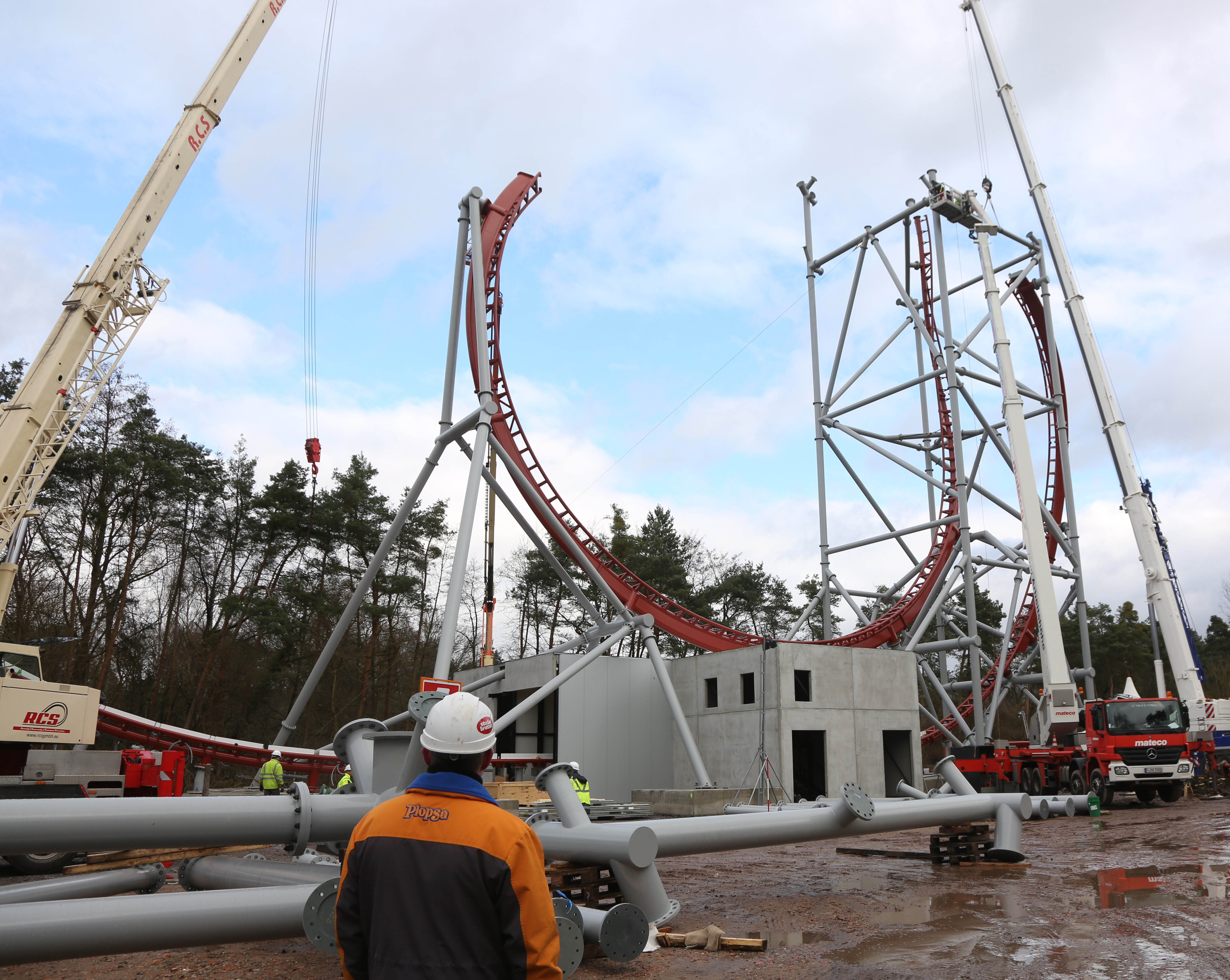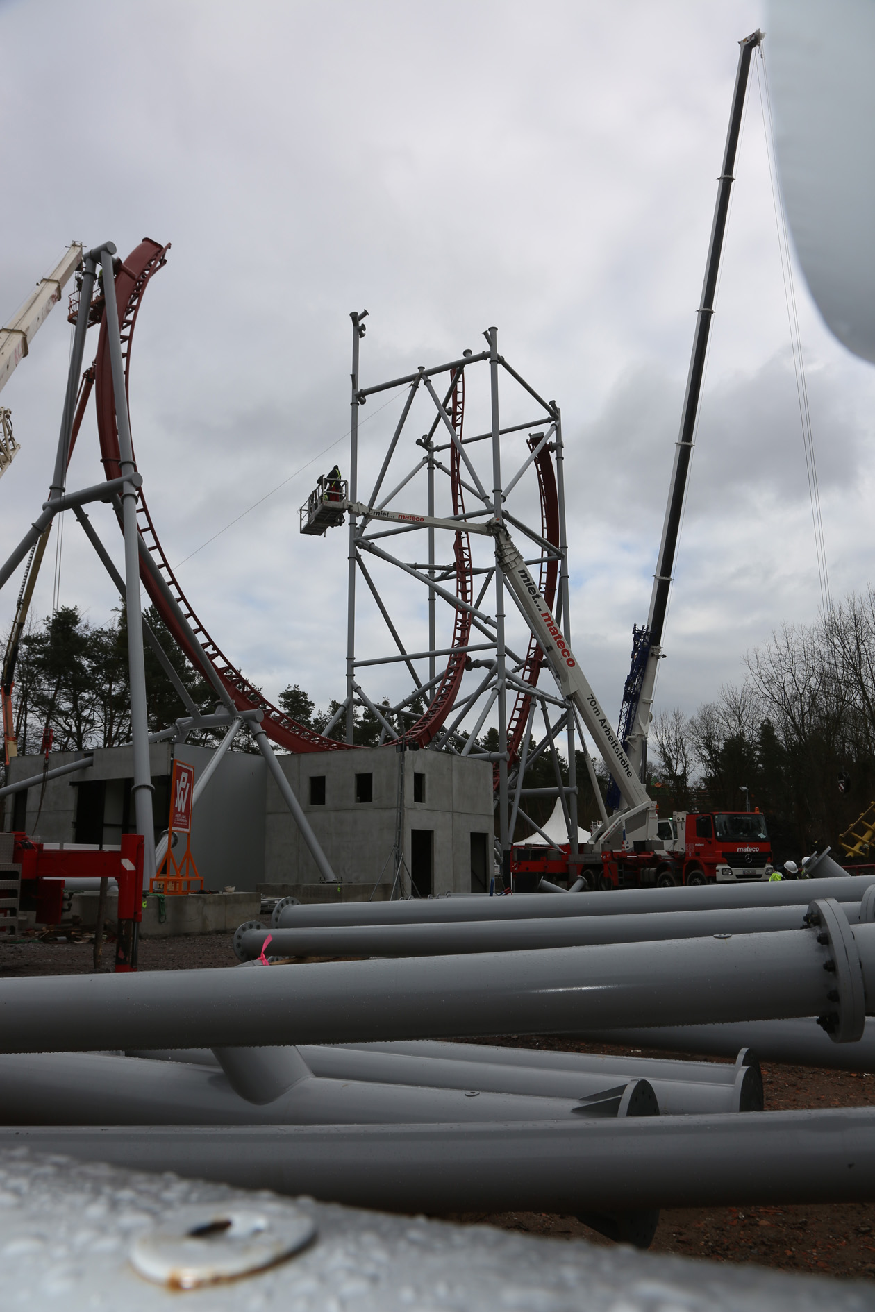 Rund um die Uhr wächst der neue Thrillcoaster des Holiday Parks in die Höhe.