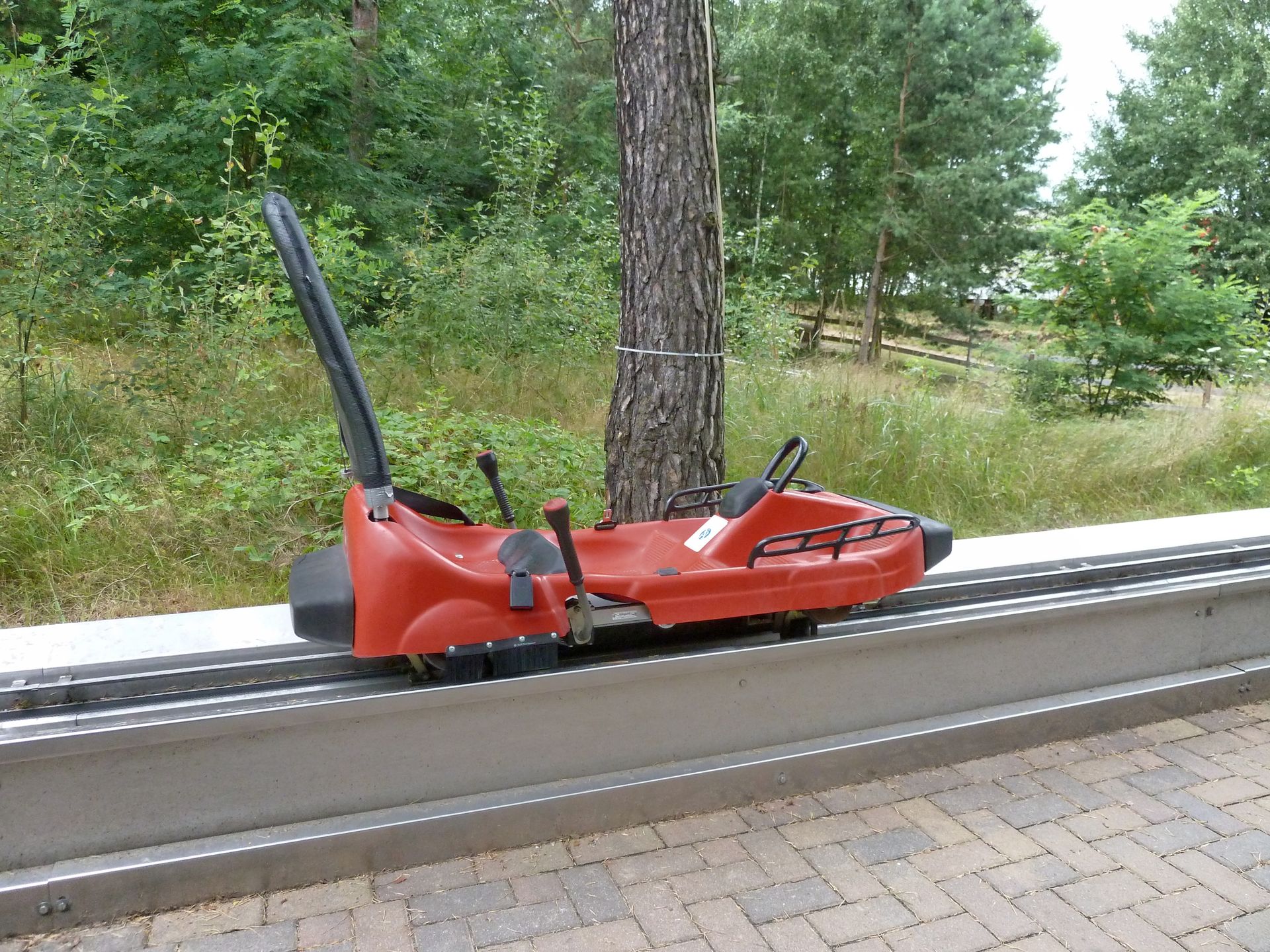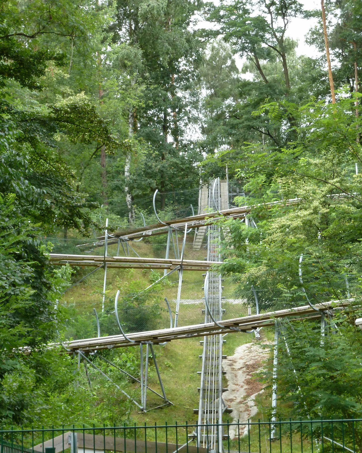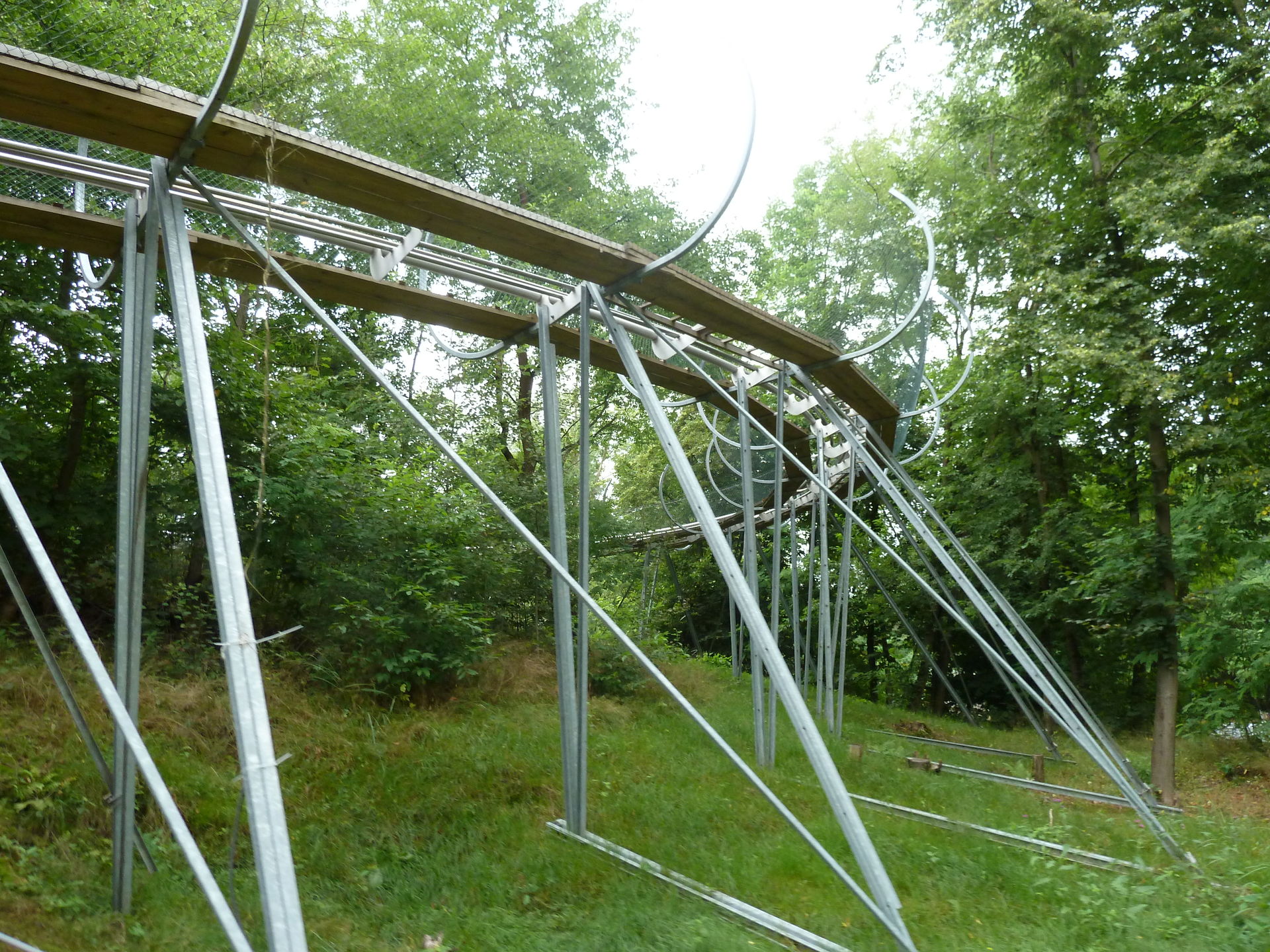 Der Hügel, an den die Bahn gebaut ist, ist weder hoch noch steil. Man darf also nicht zu viel erwarten. Die Streckenführung ist trotzdem recht lustig und beinhaltet die Eigenheit, dass man nachdem man quasi wieder unten angekommen ist, nochmal hochgezogen wird. Hierdurch wird die Strecke natürlich doppelt so lang. Außerdem gibt es stellenweise sogar Duelling- und Racing-Elemente. Wirklich nett wenn neben einem öfters die andere Abfahrt auftaucht und dann wieder verschwindet.