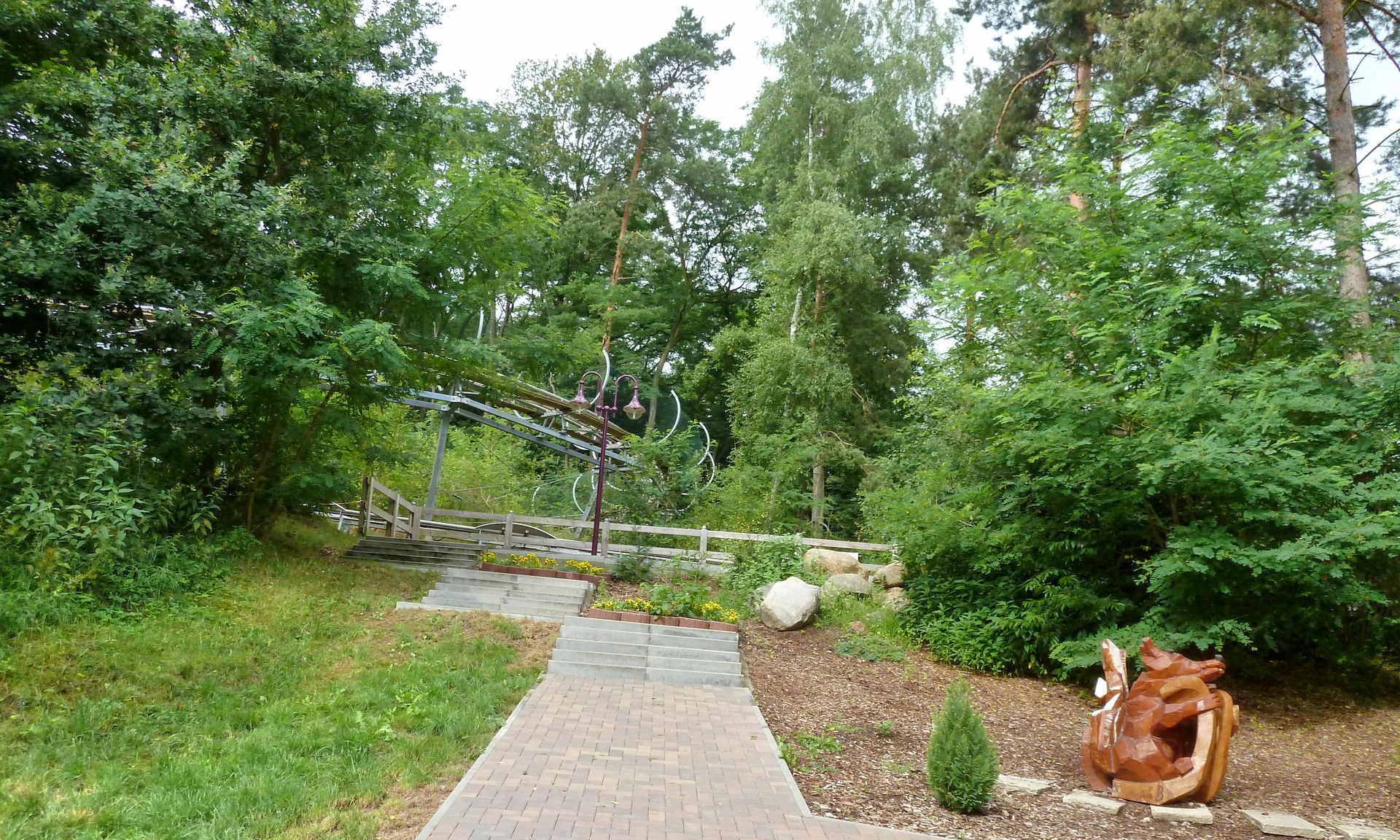 Am folgenden Morgen (leider schon der letzte unserer Kleinen Tour) ging es dann wieder aus Berlin hinaus. Im Berliner Umland findet man mit dem Scharmützelbob einen Wiegand Alpin Coaster. Die Anreise von Berlin aus ist eigentlich unkompliziert, nur die letzten Meter müssen dann zu Fuß zurückgelegt werden.