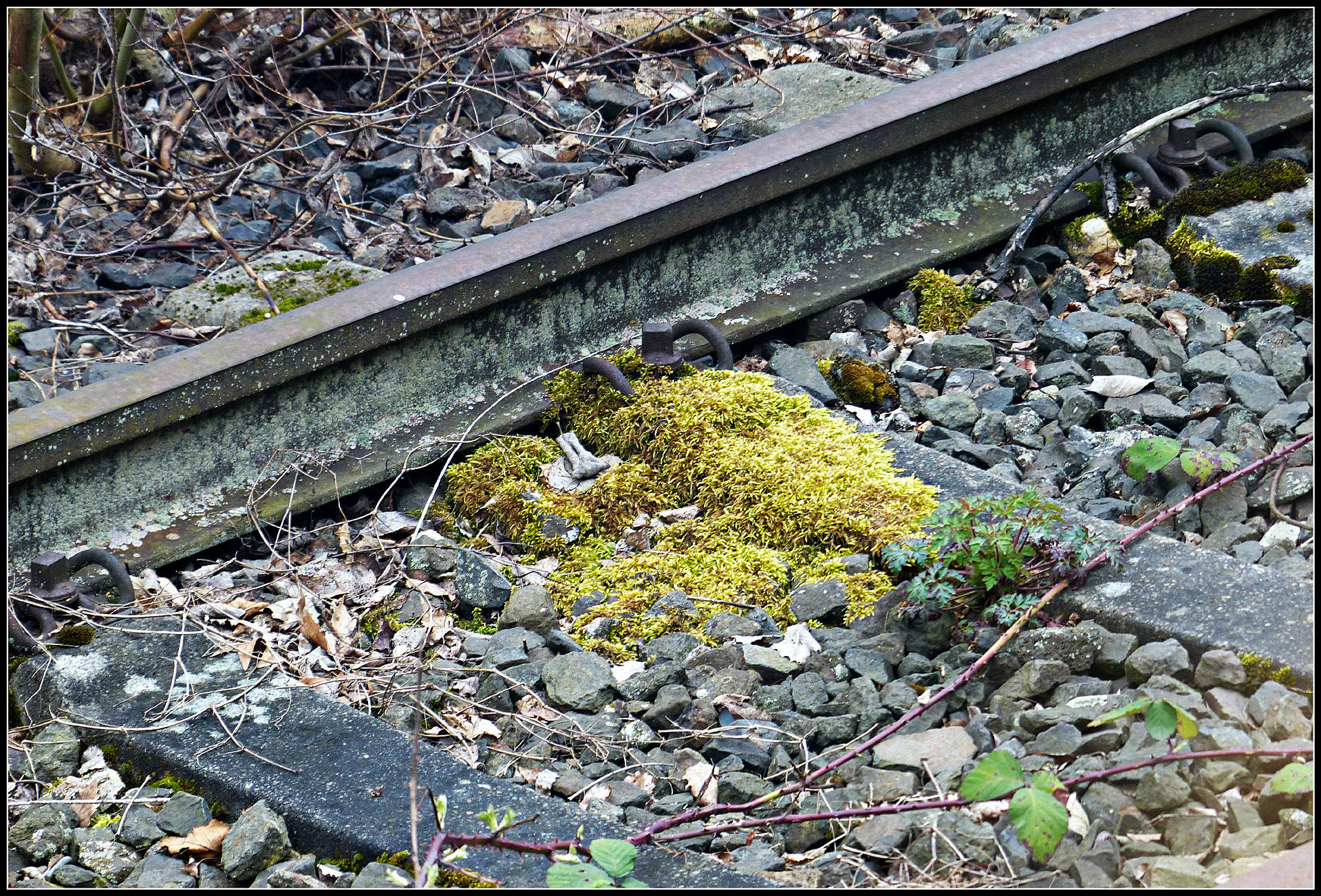Vorbei an alten und maroden Schwellen und Gleisresten.