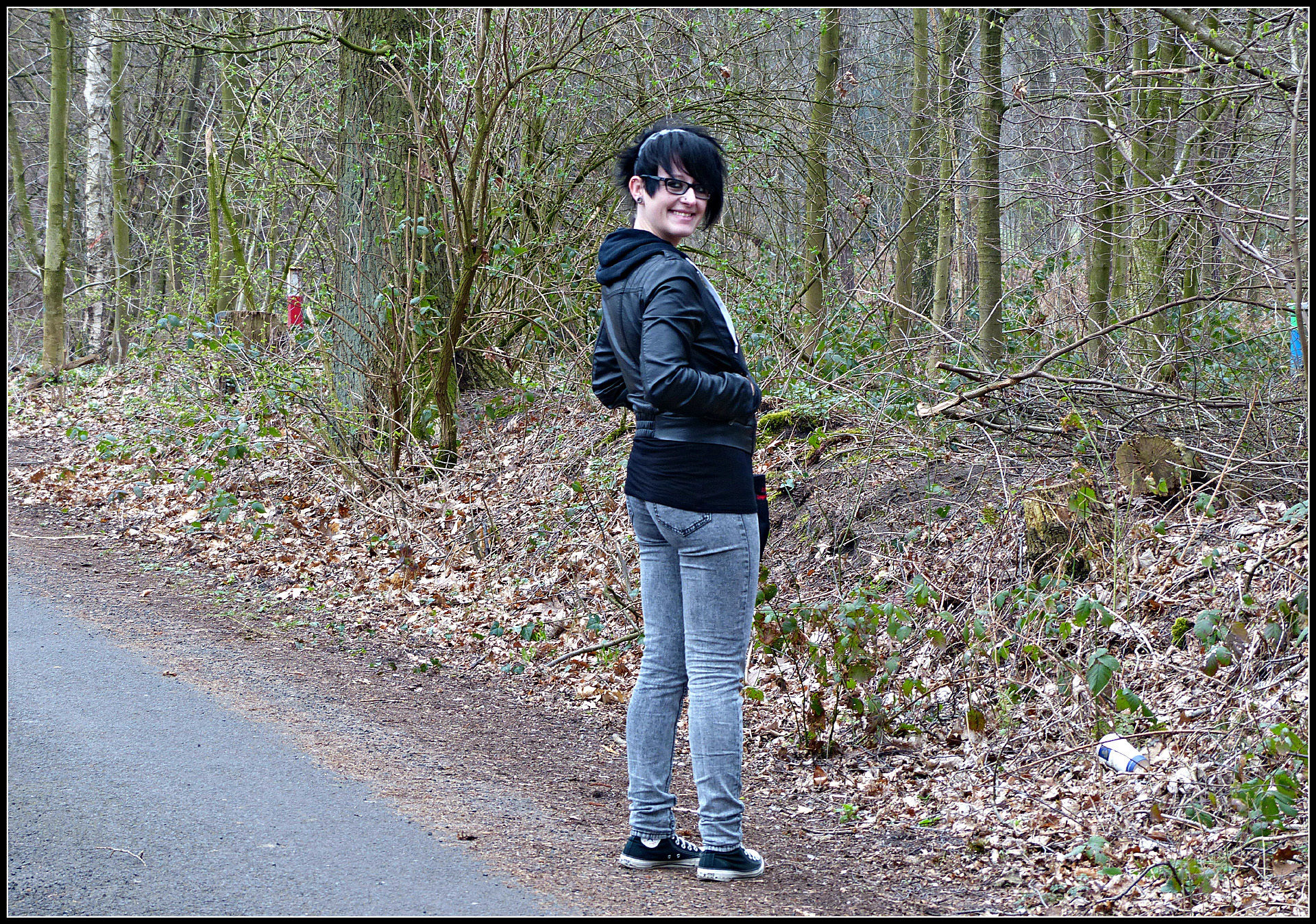 Frau guckt in den Wald? Warum? "Schau lieber in die Kamera!"