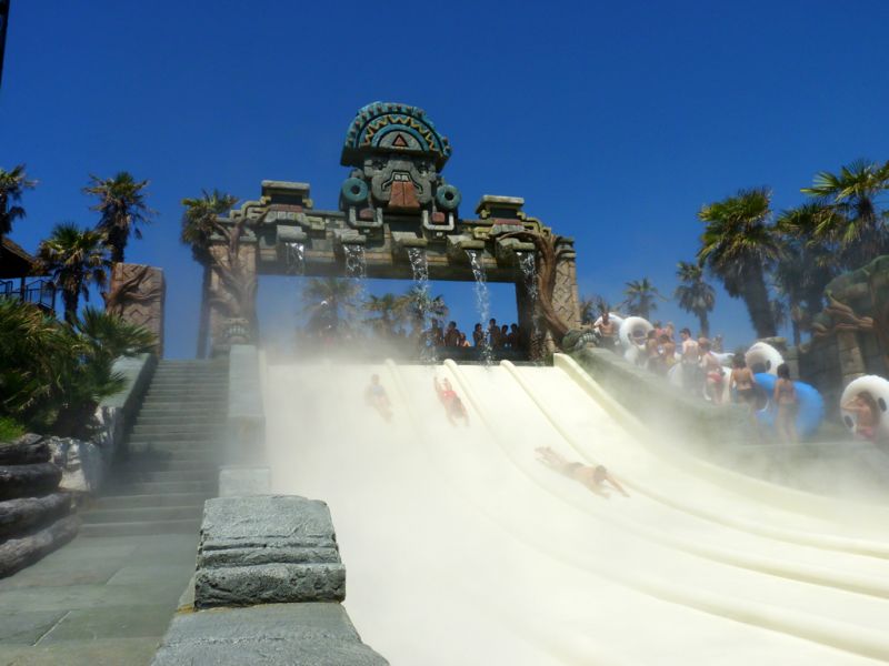 Darüber hinaus besitzt der Park noch ein Wellenbecken mit echtem Sandstrand, welcher den Leuten nach zu urteilen deutlich schöner zu sein scheint als das Original in nur 500 Meter Entfernung. Es besteht aber auf jeden Fall Investitionsbedarf in neue und modernere Rutschanlagen. Ein paar weitere Bodyslides würden auch nicht schaden. Man kann nur hoffen, dass sich der Park rechtzeitig dazu entschließt. Insgesamt ist Aqualandia ein schöner Wasserpark, in dem man unter den richtigen Bedingungen extrem viel Spaß haben kann. Gute zwei Stunden haben gereicht um alles ausgiebig zu testen. Nur in der Hauptsaison würden wir selbst bei geschenktem Eintritt einen großen Bogen darum machen!
