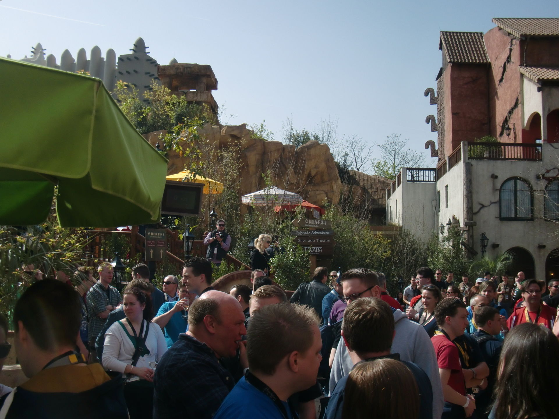 Das Phantasialand hatte es aber verstanden, diesen Plan zu durchkreuzen. Statt Sommer, Hitze und Stundenlangen anstehen gab es heute perfekt-angenehme Wärme und meist Sitzenbleiben - die längste Schlange des Tages gab es morgens vor dem Einlass zur Akreditierung.