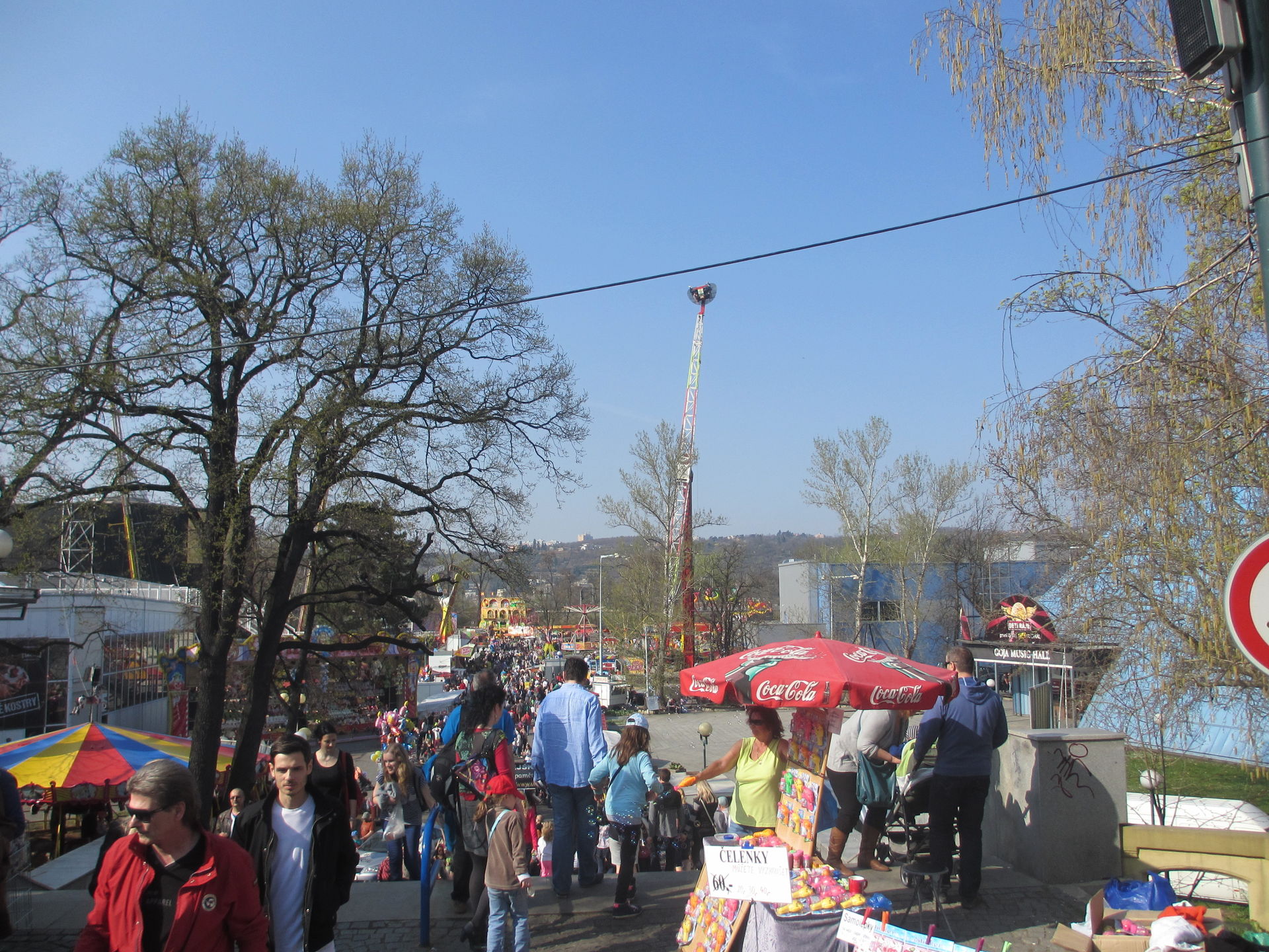 Dies allerdings zu ganz anderen Preisen. Während eine Fahrt auf dem Galaxi Horska Draha 50 Kronen (ca. 2¤) kostet, muß man für eine Runde auf dem Thriller und den anderen Fahrgeschäften westeuropäischer Herkunft das Doppelte bezahlen. Die Tschechen scheint das aber nicht zu stören. Überall ist gut Betrieb.