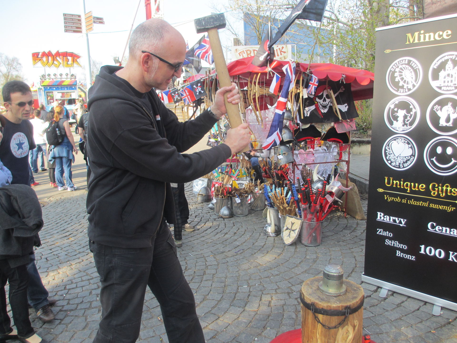 In den USA dreht Anita uns gerne die Quetschmünzen als Erinnerungssouvenier, die wir in den Winterpausen durchwühlen, wenn wir in Erinnerungen an vergangene Parkbesuche schwelgen. Hier muß ich ran, statt Walzendrehen heißt es hier: Einmal Thor spielen und den Hammer schwingen und schon ist eine Münze mit einer "Matejska Pout 2014" Prägung fertig!