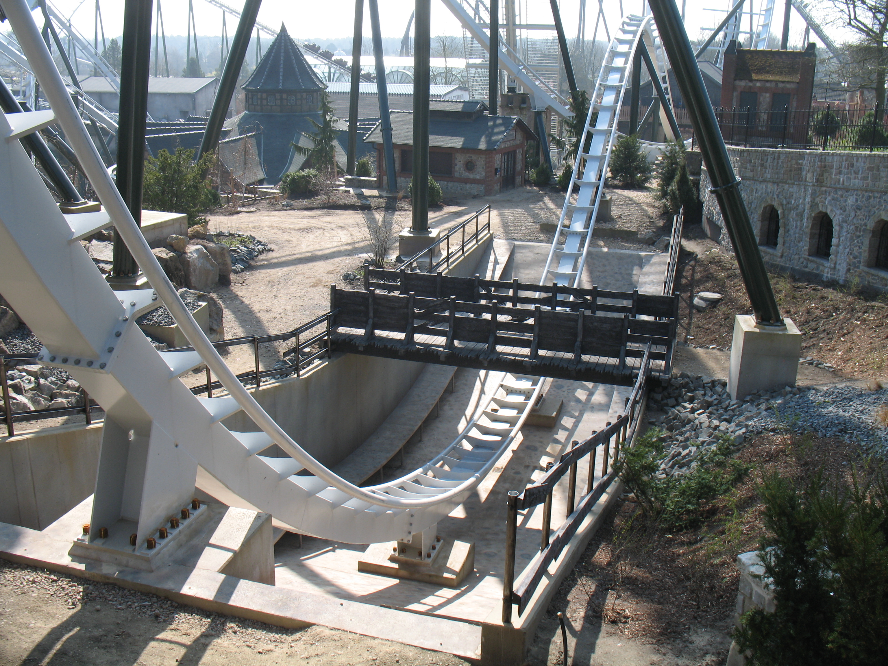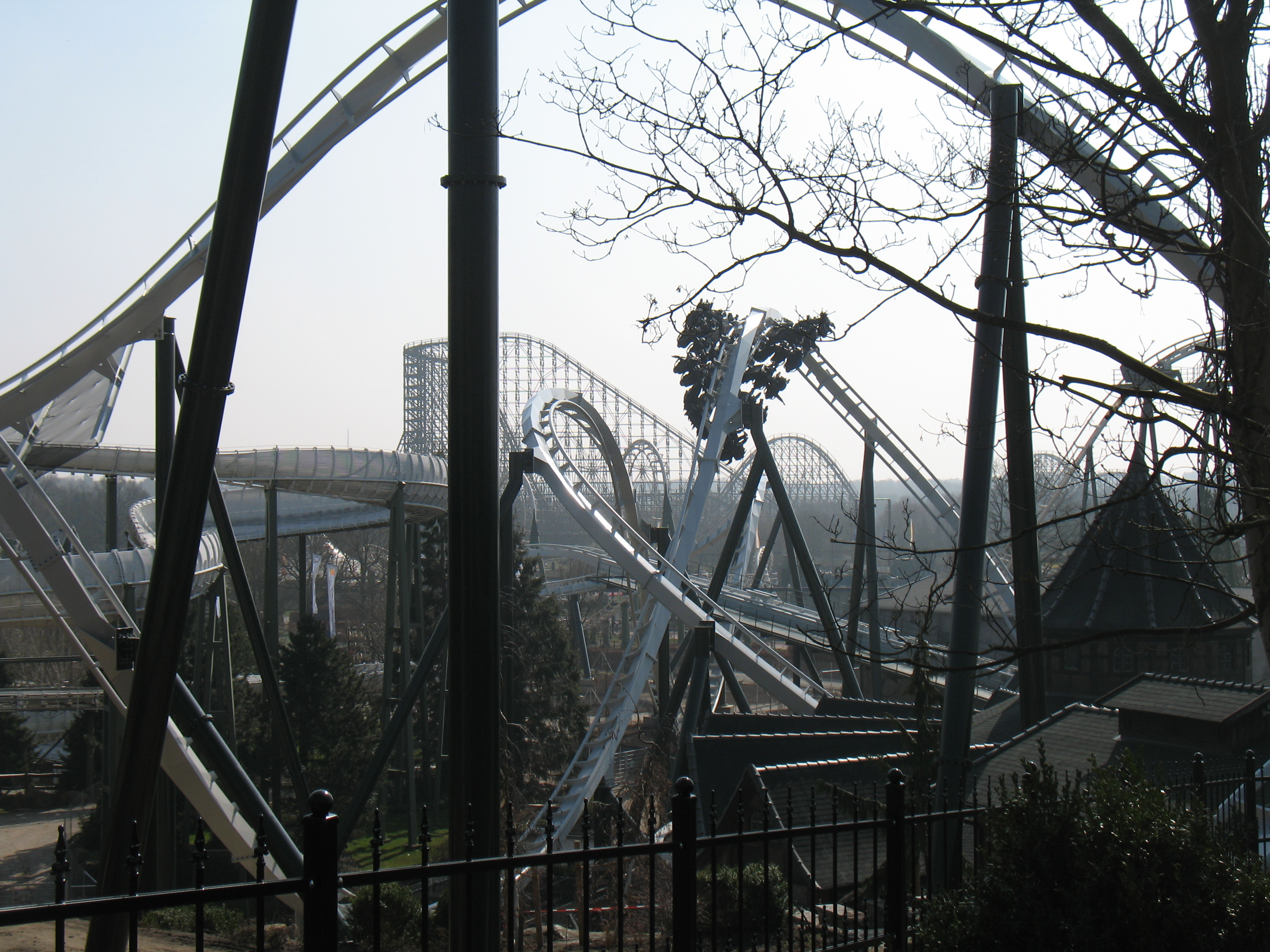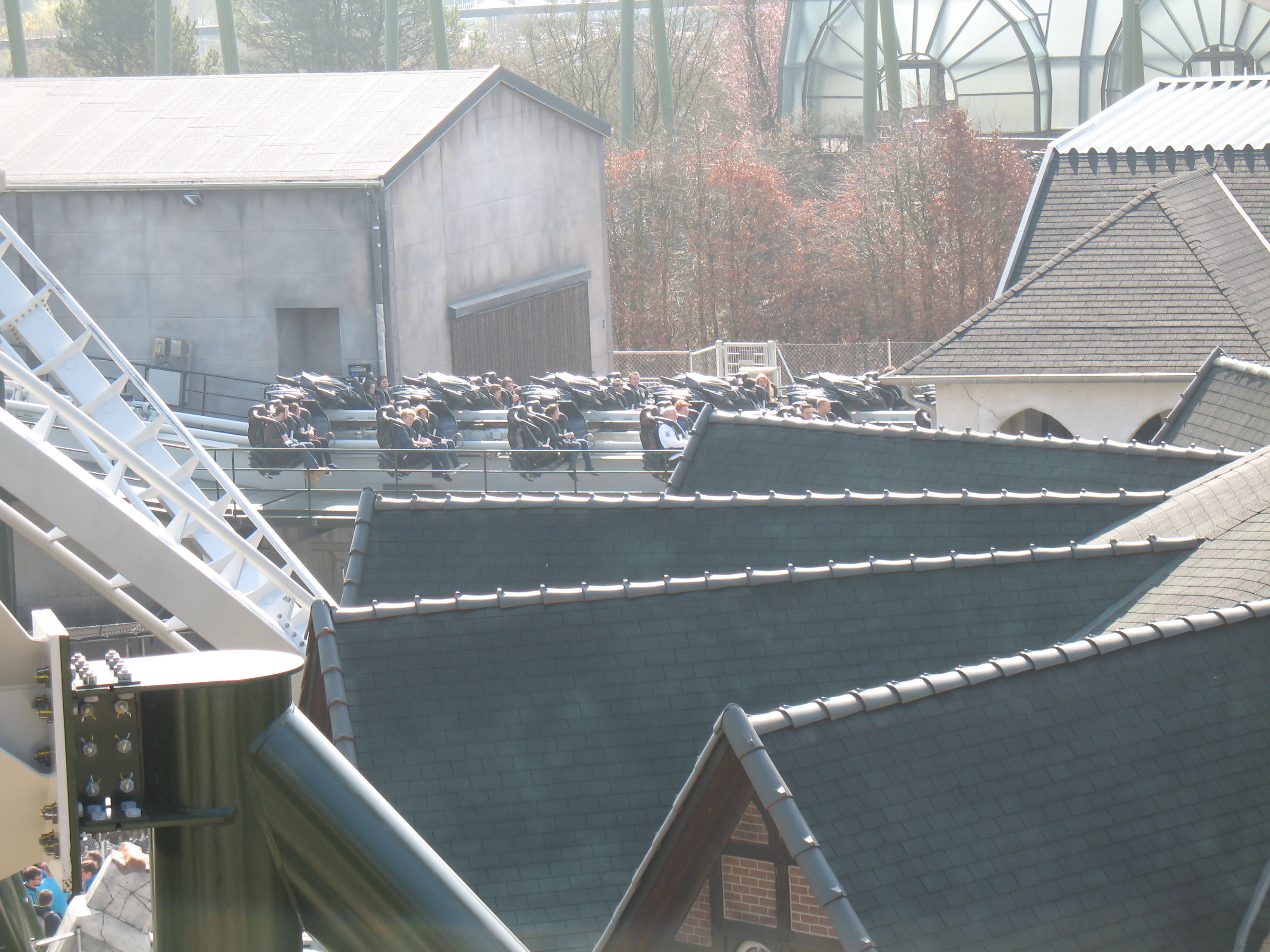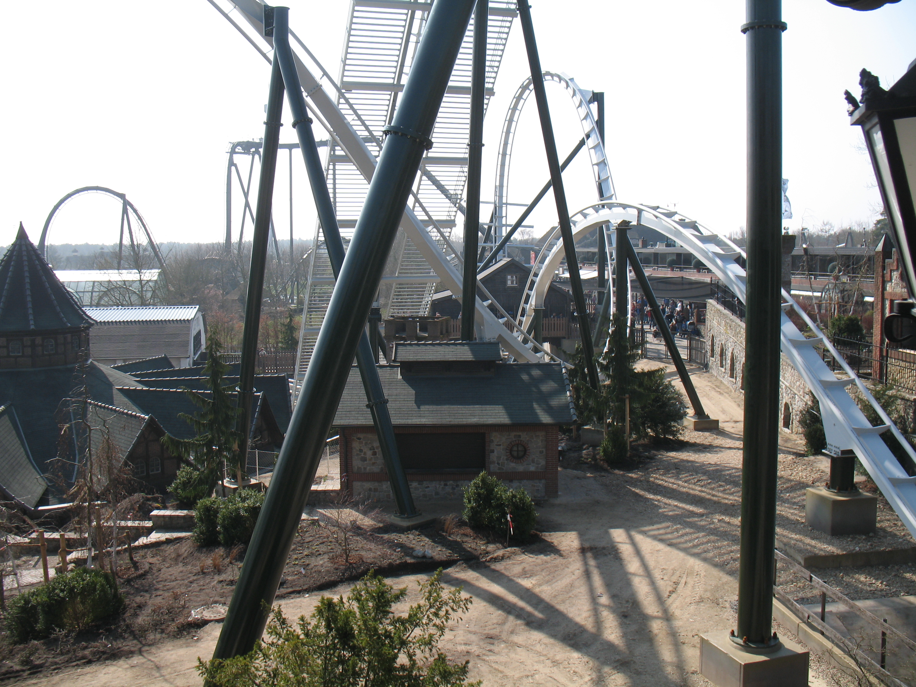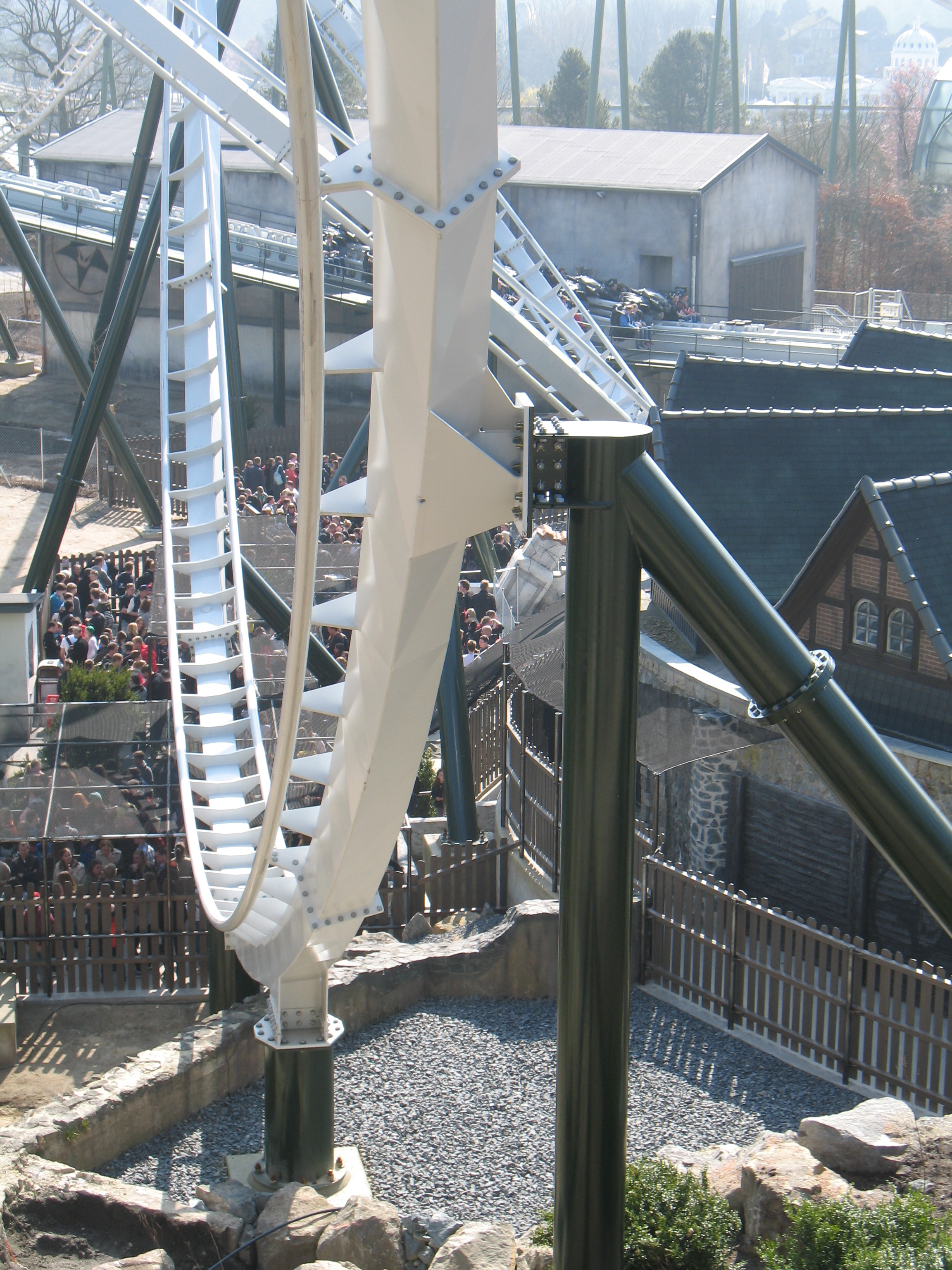 Airtime-Hügel rauschenden Zug sehen oder fotografieren wollten, so dass man sich dort durchquetschen muss und sehr schlecht durchkam. Das Phänomen scheint im Vorfeld unterschätzt oder nicht bedacht worden sein. Vielleicht kann man den Balkon noch verbreitern oder einen weiteren davor bauen, der eine Sackgasse bildet und somit nur für Zuschauer interessant ist. Dann wäre der jetzige als Weg für Express-Butler und Single-Rider frei nutzbar.
