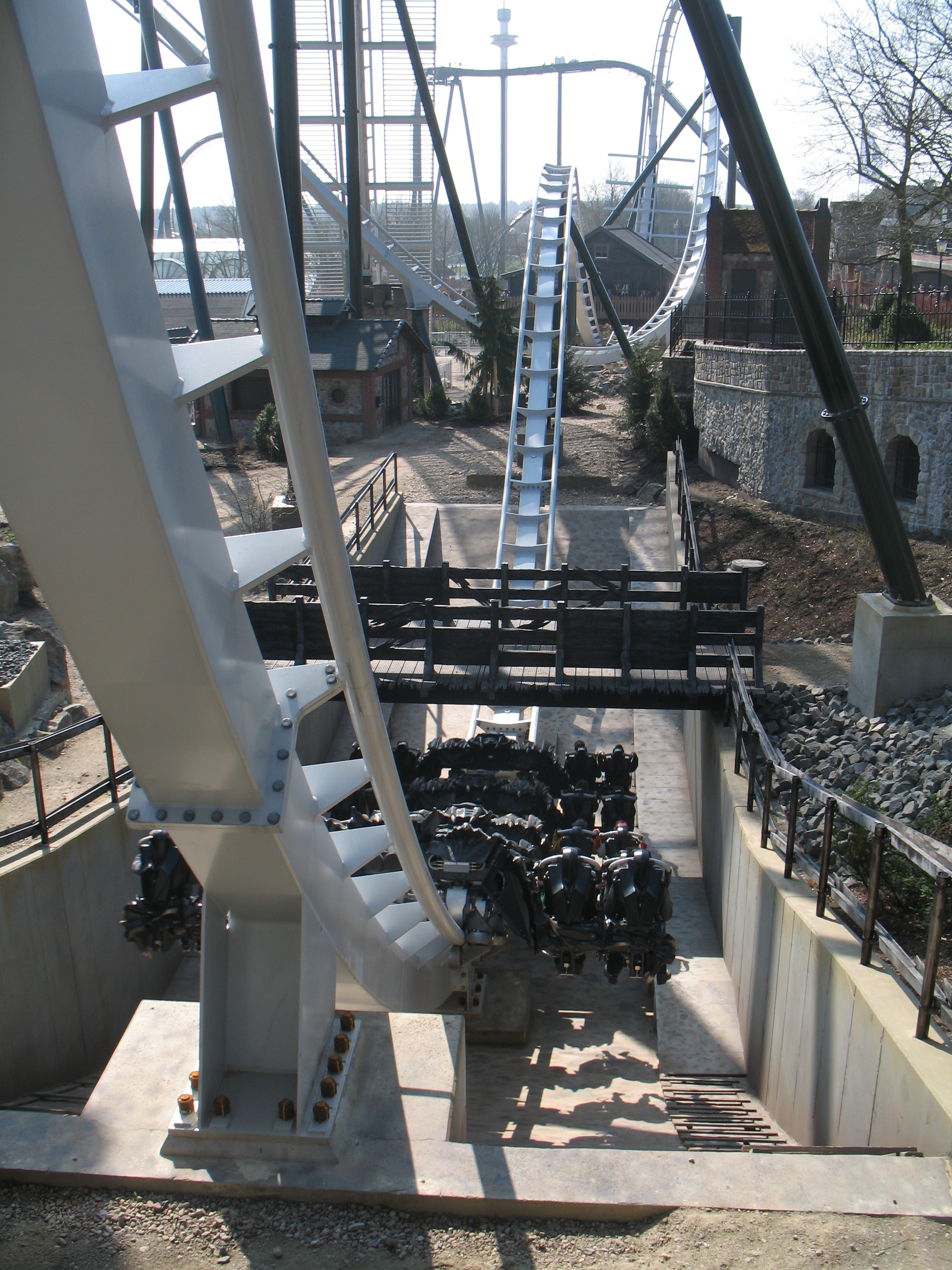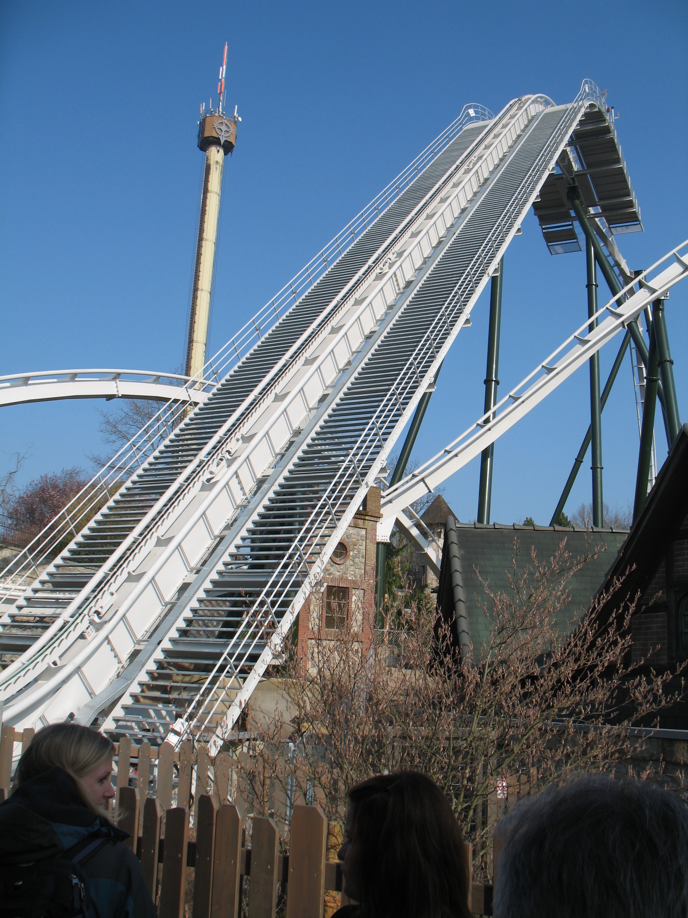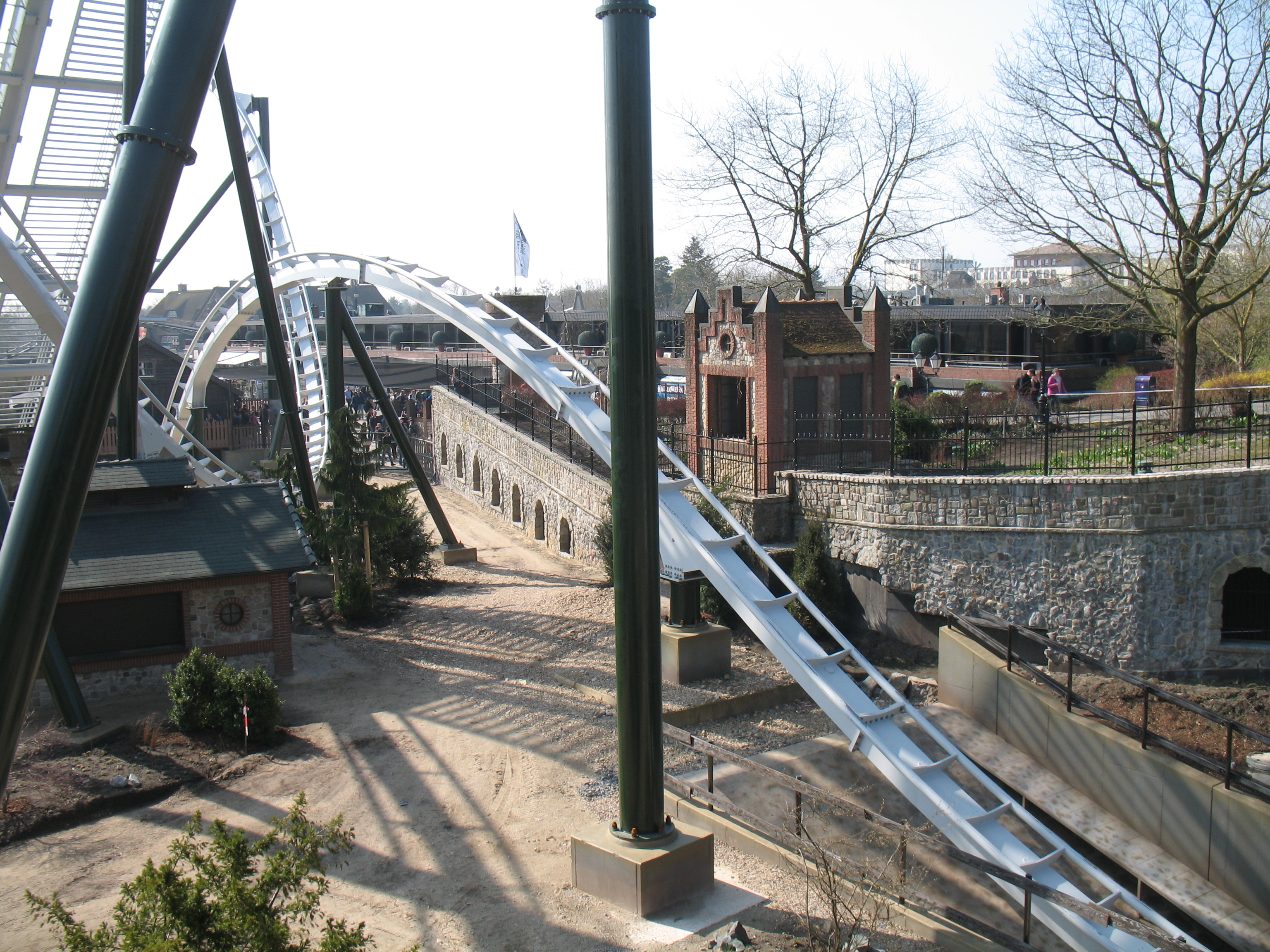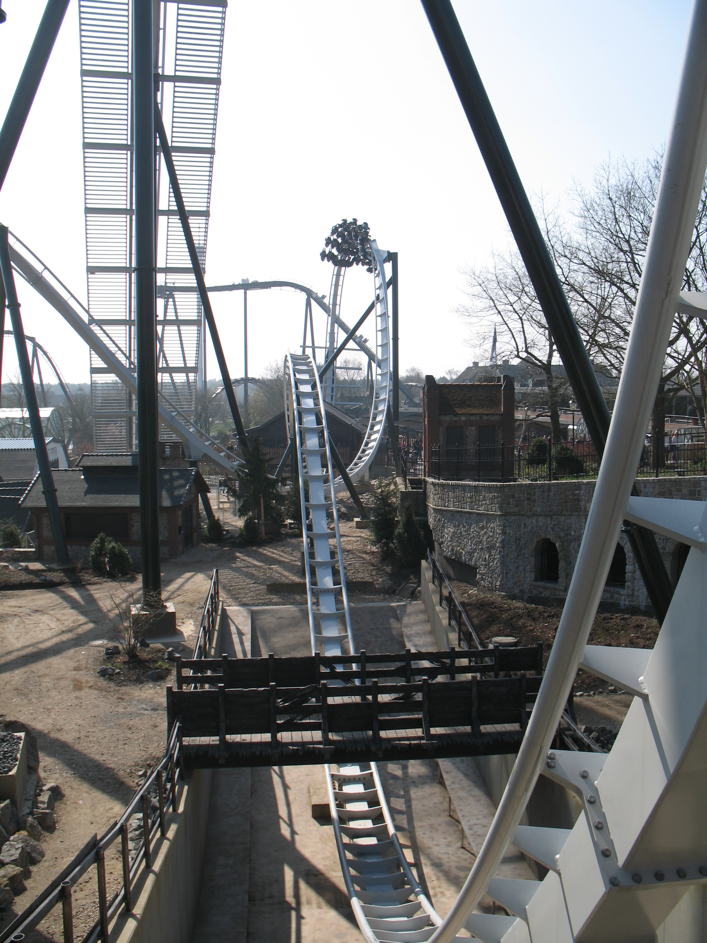 Airtime-Hügel rauschenden Zug sehen oder fotografieren wollten, so dass man sich dort durchquetschen muss und sehr schlecht durchkam. Das Phänomen scheint im Vorfeld unterschätzt oder nicht bedacht worden sein. Vielleicht kann man den Balkon noch verbreitern oder einen weiteren davor bauen, der eine Sackgasse bildet und somit nur für Zuschauer interessant ist. Dann wäre der jetzige als Weg für Express-Butler und Single-Rider frei nutzbar.