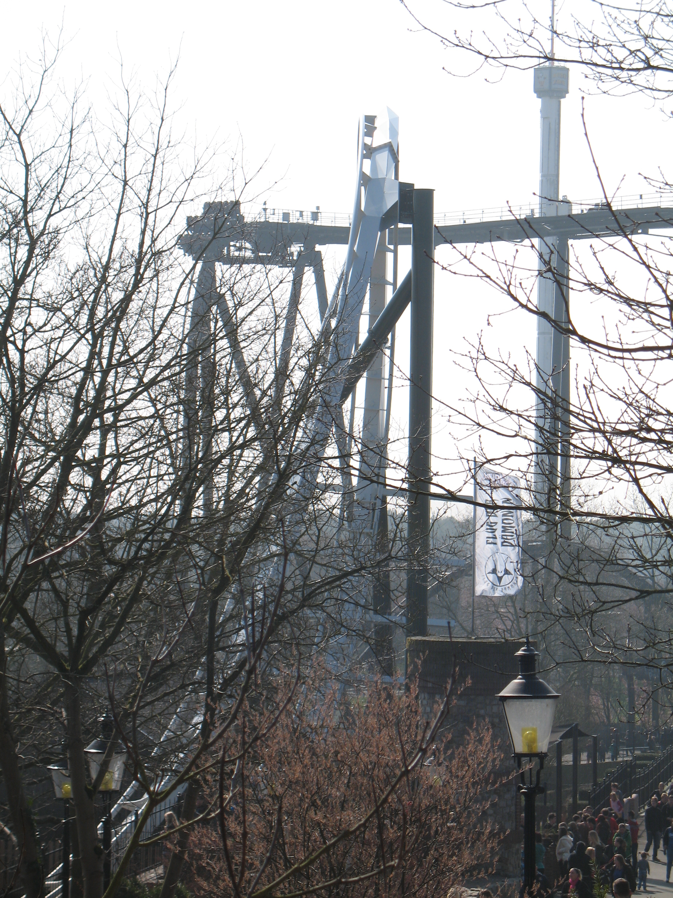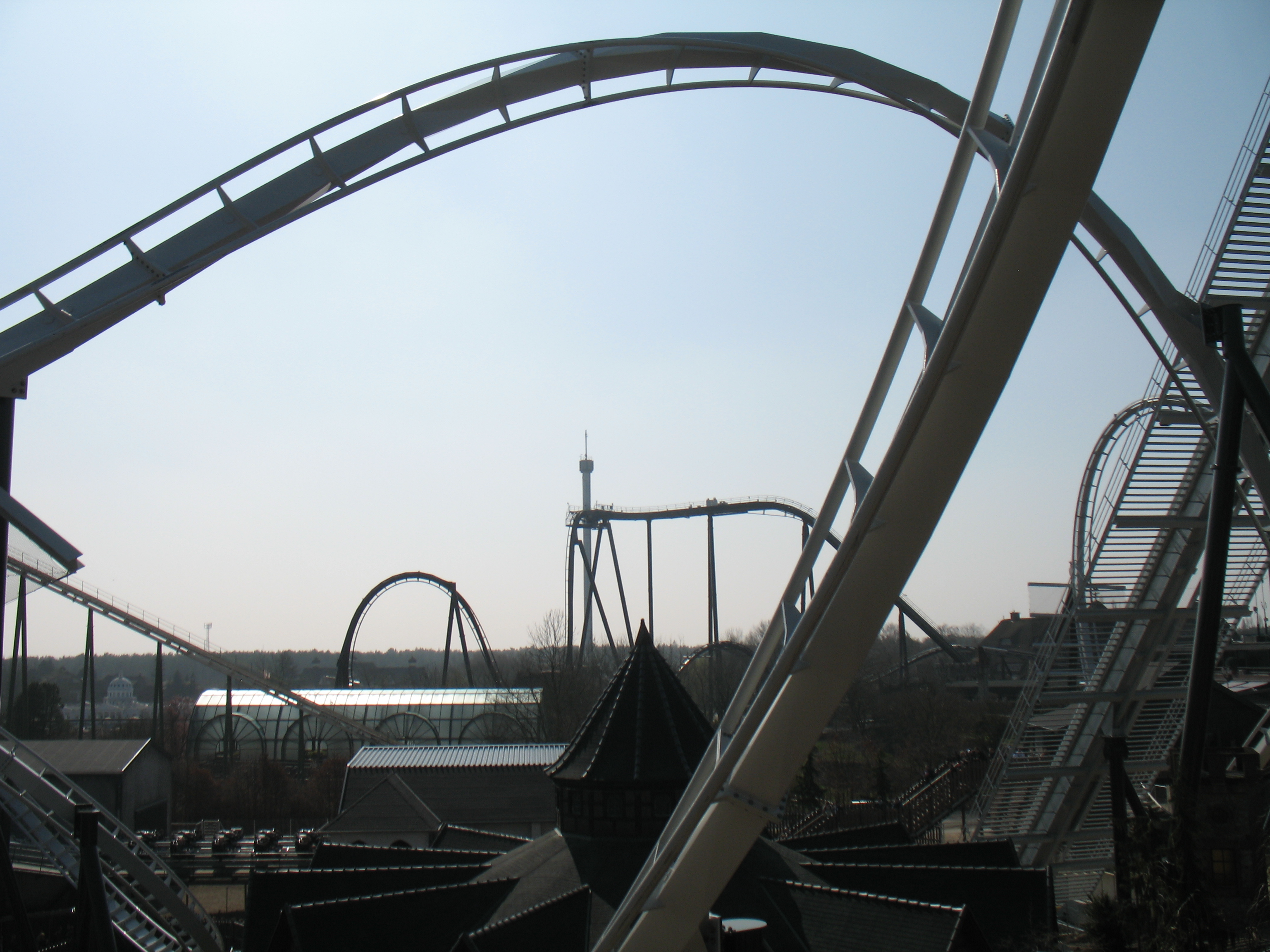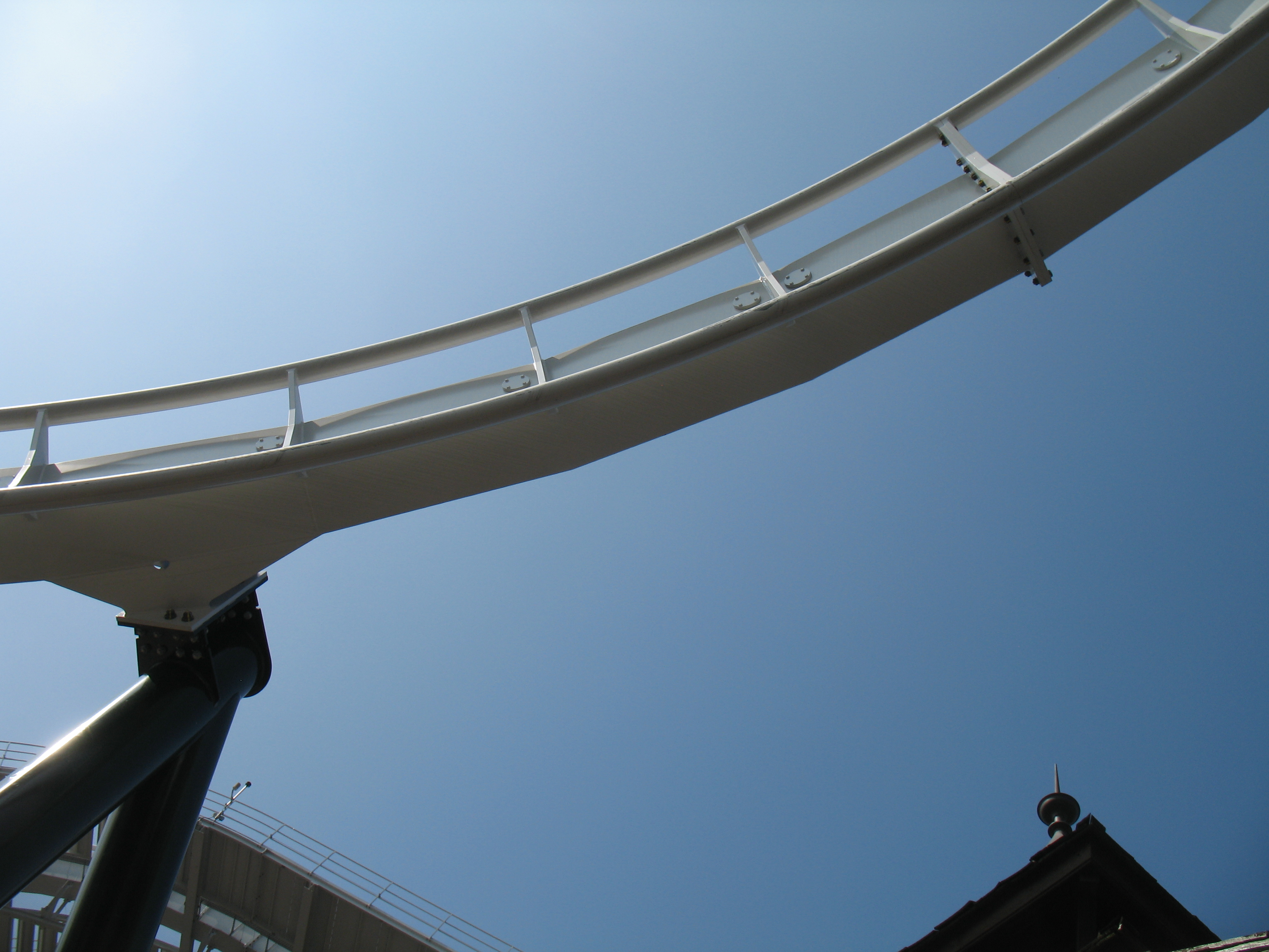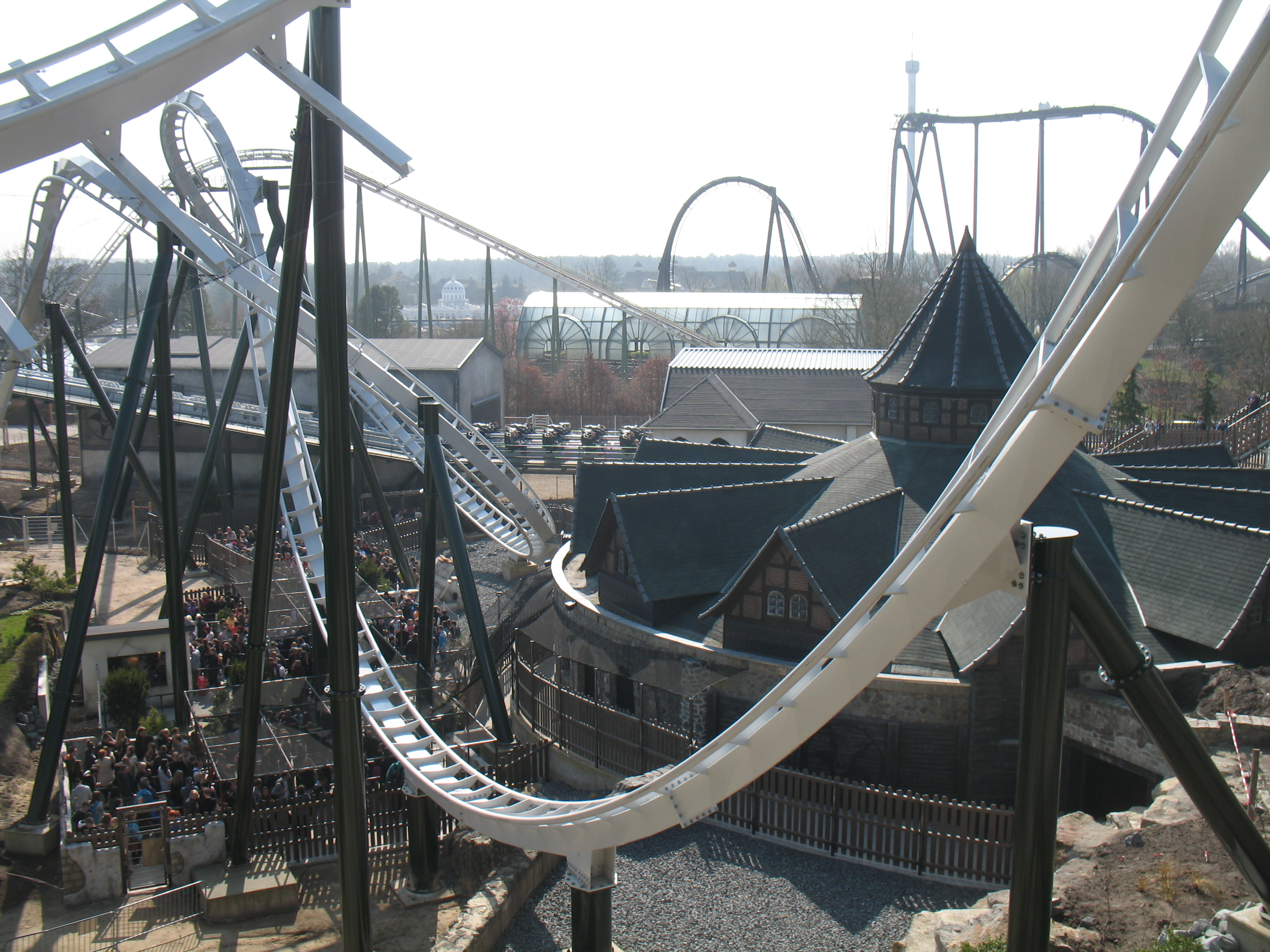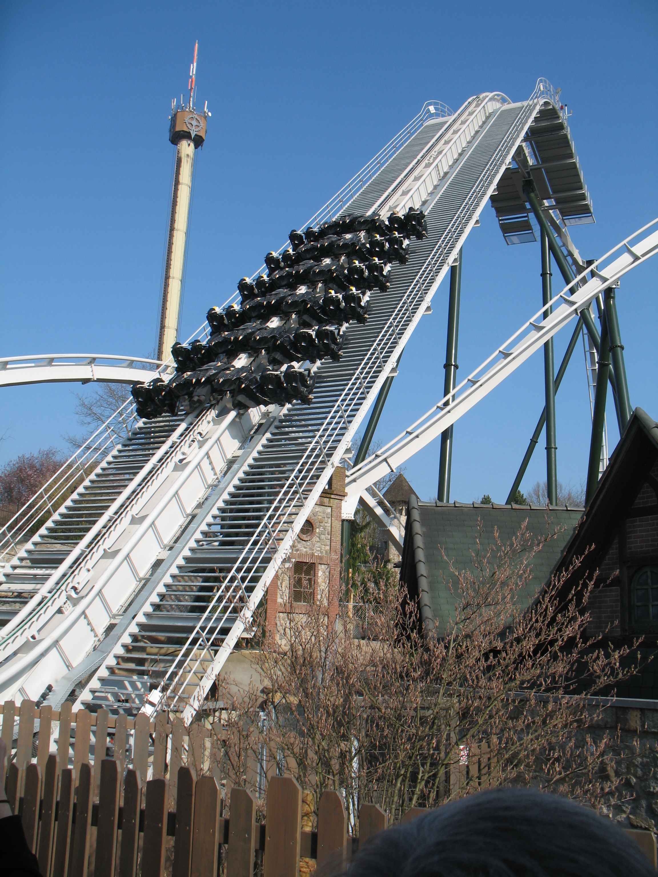 Airtime-Hügel rauschenden Zug sehen oder fotografieren wollten, so dass man sich dort durchquetschen muss und sehr schlecht durchkam. Das Phänomen scheint im Vorfeld unterschätzt oder nicht bedacht worden sein. Vielleicht kann man den Balkon noch verbreitern oder einen weiteren davor bauen, der eine Sackgasse bildet und somit nur für Zuschauer interessant ist. Dann wäre der jetzige als Weg für Express-Butler und Single-Rider frei nutzbar.