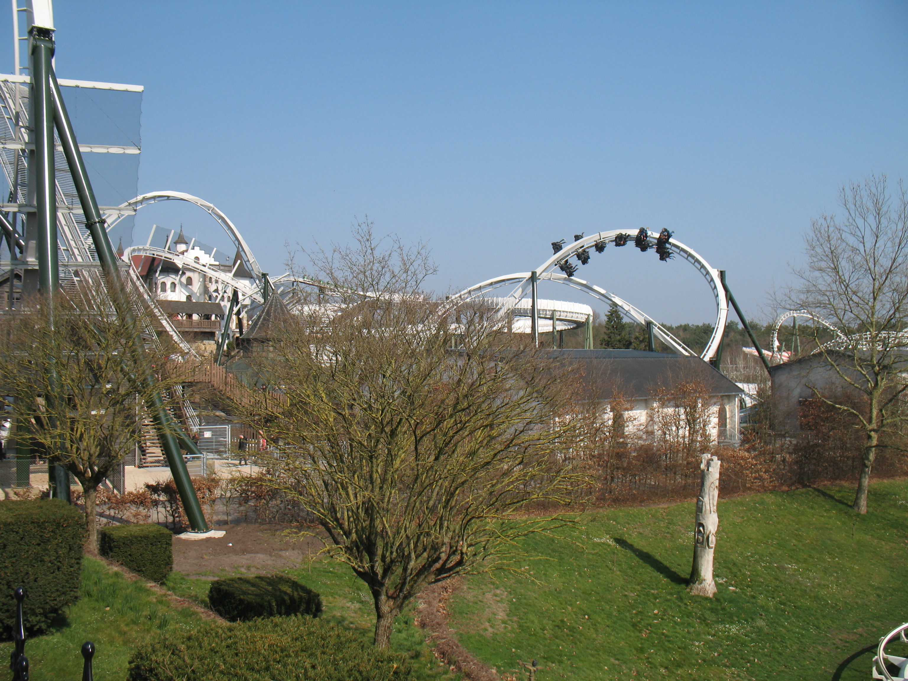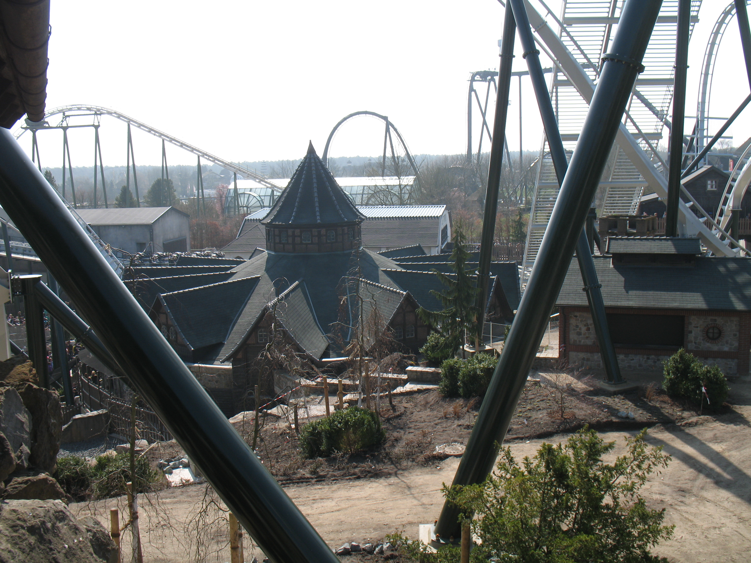 Schön finde ich, dass man am alten Eingang zur Wildwasserbahn gegenüber Scream hinter einem Turmdurchgang noch einen kleinen eingezäunten Aussichtspunkt eingerichtet hat, von dem man den First-Drop sowie den Graben mit der Brücke gut beobachten kann. Gegenüber der Bobbahnstation hat man im Bereich der letzten Schleife der Wildwasserbahn den Kanal komplett entfernt und einiges an Erde entfernt. Die entstandene Fläche wurde betoniert, so dass man diese betreten kann. Von dort gibt es einen Zugang zum Balkon der ehemaligen Wildwasserbahn, von dem man ebenfalls interessante Ein- und Ausblicke auf die Bahn, deren Elemente und den gesamten Bereich hat. Nicht zu vergessen den schon immer vorhandenen Balkon zwischen den Onride-Fotos und der Station der Bobbahn, die einen guten Blick auf die Einfahrt der Panoramakurve sowie den Bretzel und Wartebereich ermöglicht. Der letzte Aussichtspunkt befindet sich hinter den Spielbuden am Limit, von wo man einen sehr guten Blick auf die Schlusskurve sowie Teile des Bretzels hat.