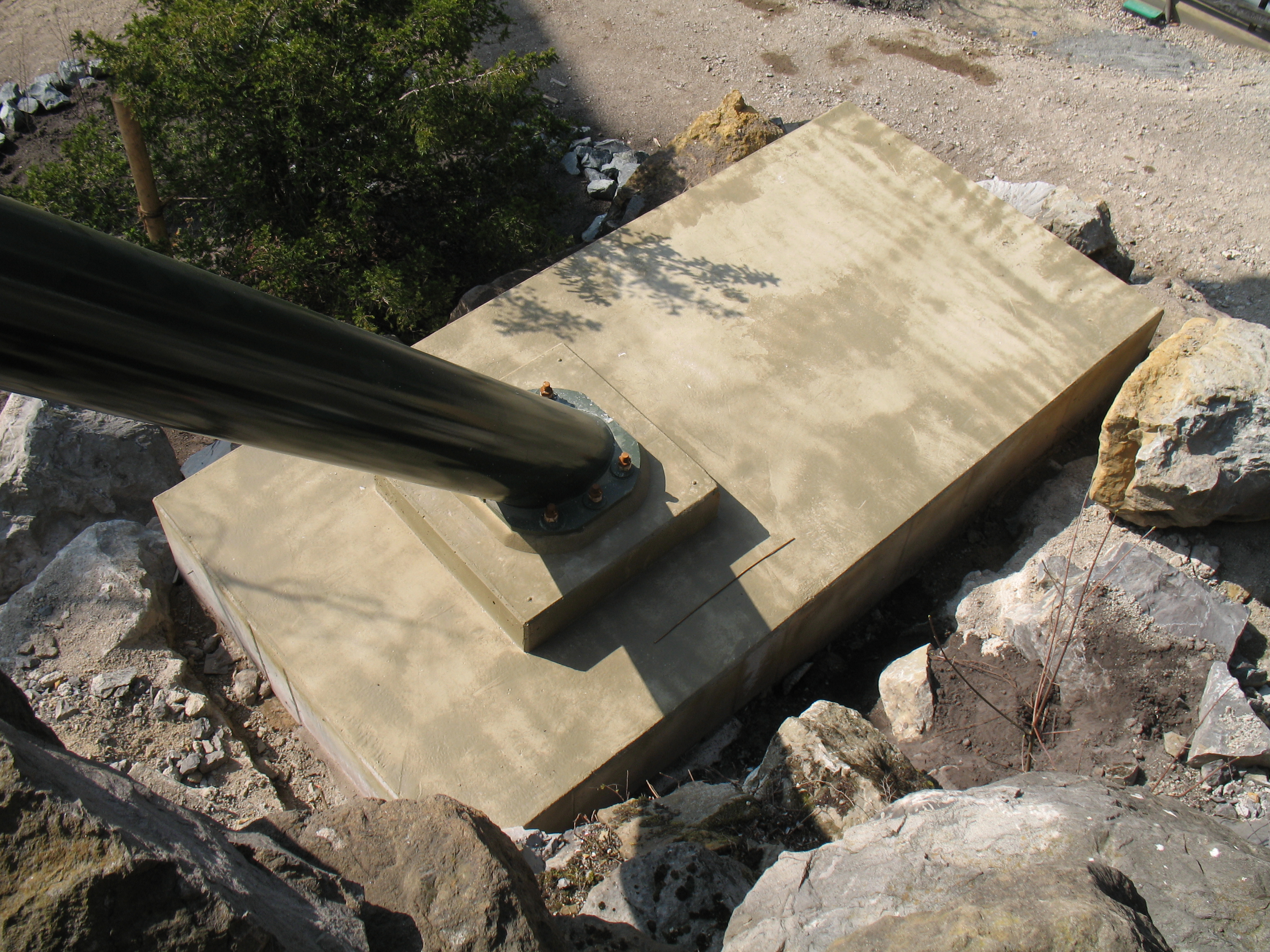 Das man während der Bauphase für die Kräne, Betonmischer und Baufahrzeuge Platz braucht ist normal. Dem sind in der Anfangsphase viele alte Bäume zum Opfer gefallen, so dass man erst gemerkt hat, wie grün die Ecke vorher war. Die Bahn ist an vielen Ecken an das Gelände der Wildwasserbahn angepasst worden, an einigen Stellen wie der Station, der Shopdurchfahrt und dem Tal nach dem First-Drop wurde aber auch kräftig das Gelände der Bahn angepasst. Wenn man mal sieht, welcher Höhenunterschied zwischen Station und Shop liegt und dort früher ein sanfter Hügel statt jetzt einer ebenen Fläche existierte, dann kann man erahnen das dort schon eine Menge Erde bewegt wurde. Die Thematisierung und Landschaftsgestaltung würde ich als eher karg und steinig bezeichnen. An vielen Stellen wurde der Boden mit Steinen bedeckt. Es wurden einige flachwachsende Büsche angepflanzt und einige Kiefern. Noch macht es einen sehr freien und nicht begrünten Eindruck. Man muss der Vegetation auf jeden Fall noch ein paar Jahre zugestehen, bis es das Gelände zurück erobert hat. Dass es aber nie wieder so grün und bewachsen werden wird wie noch vor zwei Jahren, steht jetzt schon fest. Ich hoffe doch sehr, dass neben den wachsenden vorhandenen Pflanzen noch weitere in dem Bereich hinzukommen werden. Es gibt noch einige Ecken, die gar keine Vegetation aufweisen, z.B. im Bereich der Schlußhelix. Zudem gab es ganze Flächen, die neben nicht vorhandener Pflanzen noch nicht mal die Steine als Bodenbedeckung gehabt haben, also noch Baustellenfeeling verströmten. Dafür, dass die Bahn schon Ende letzten Jahres fertig war und man aufgrund des milden Winters quasi durchgehend arbeiten konnte, hätte ich schon eine fertige oder zumindest fortgeschrittenere Gestaltung erwartet. Etwas schade finde ich die vielen Sicherheitszäune aus Maschendraht, die für die Besucher und Mitfahrer gut erkennbar sind. Klar "Safety first", aber vielleicht hätte man die Zäune etwas verstecken können, z.B. hinter Pflanzen oder Erdwällen. Ober man hätte statt Maschendraht ein anderes Material wie Metallzäune genommen.