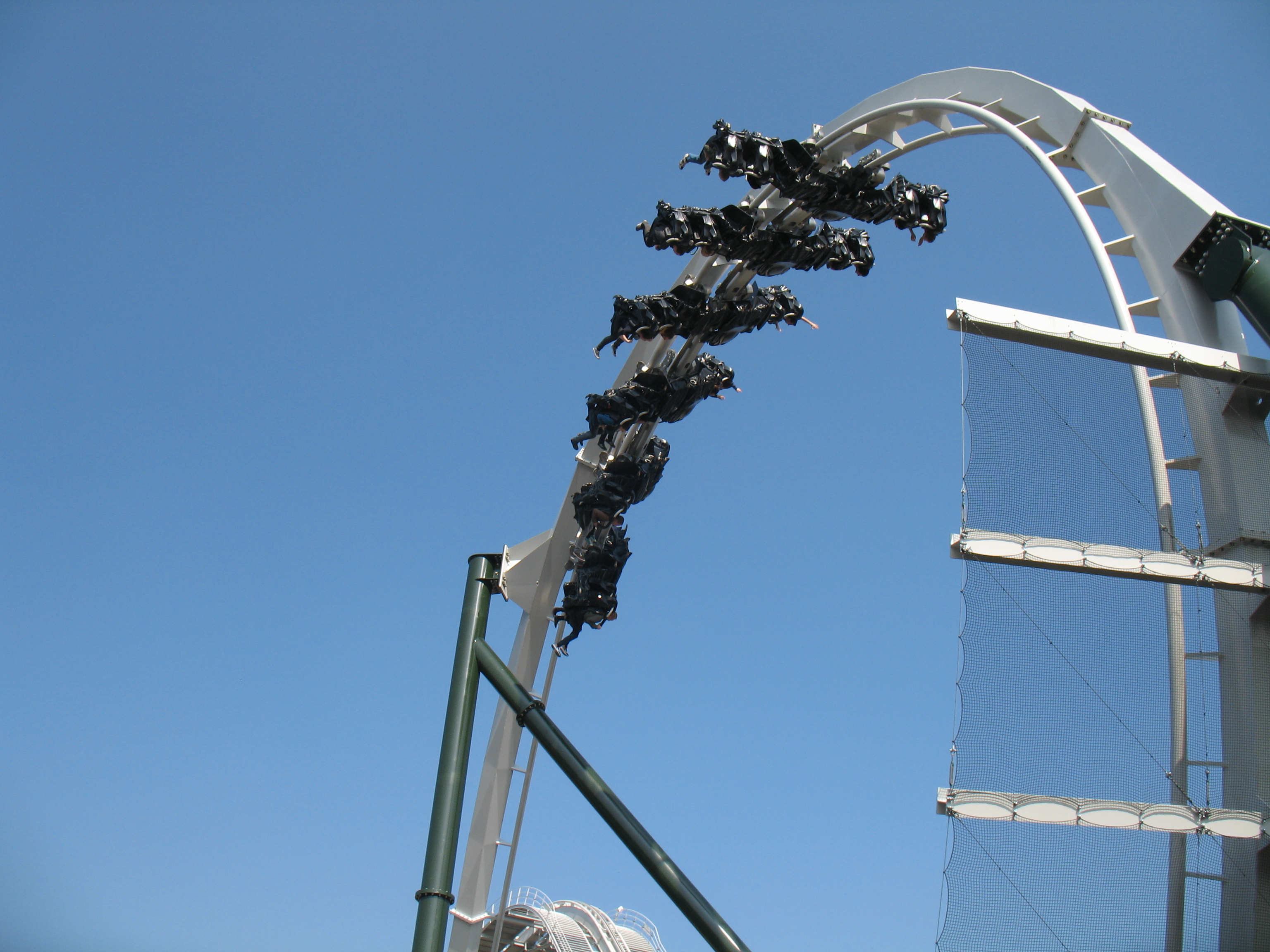 Camelback und dem Lifthill durch, was ich aber nicht als Near-Miss-Element empfinde, selbst in der ersten Reihe, da dort noch reichlich Platz ist. Jetzt geht es in den hochgelegenen