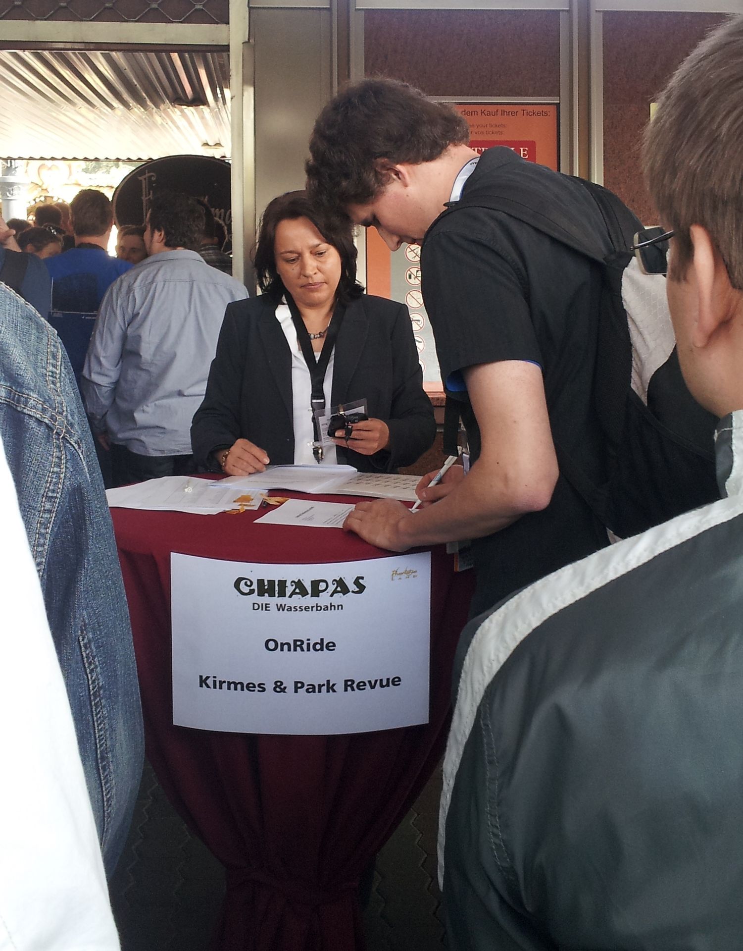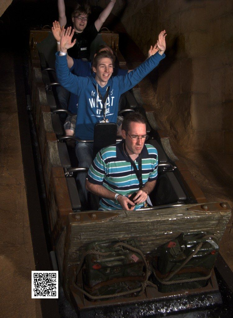 Inzwischen hatte man uns auch erklärt, dass die Onride-Fotos heute umsonst rausgehauen werden. Und wir hatten uns schon gewundert, dass sich alle nach ihrer Fahrt an der Ausgabe angestellt hatten...