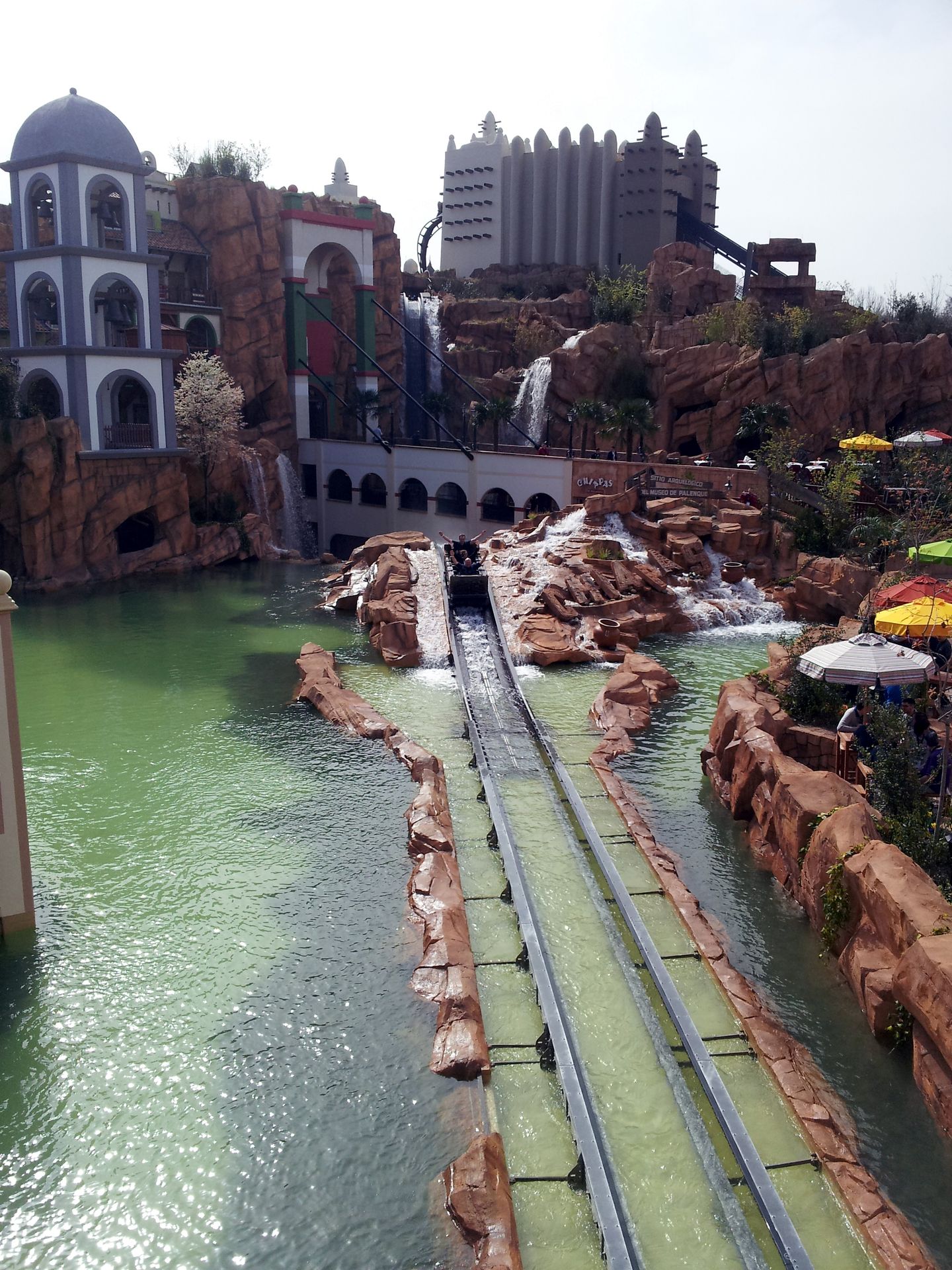 Eine wirklich gelungene Fahrt. Als ich das Modell gesehen hatte, ging ich davon aus, dass man größtenteils Indoor unterwegs sein würde. Tatsächlich gibt es aber nur wenige Stellen während der Fahrt, an denen man kein Tageslicht sehen kann. Demzufolge ist Chiapas tatsächlich "nur" eine Wasserbahn, und eben nicht der von vielen erwartete Mix aus Wasserbahn und Darkride. Ein paar Animatronics, eine umstürzende Wand, oder ähnliches hätten die Fahrt aber durchaus noch aufwerten können.