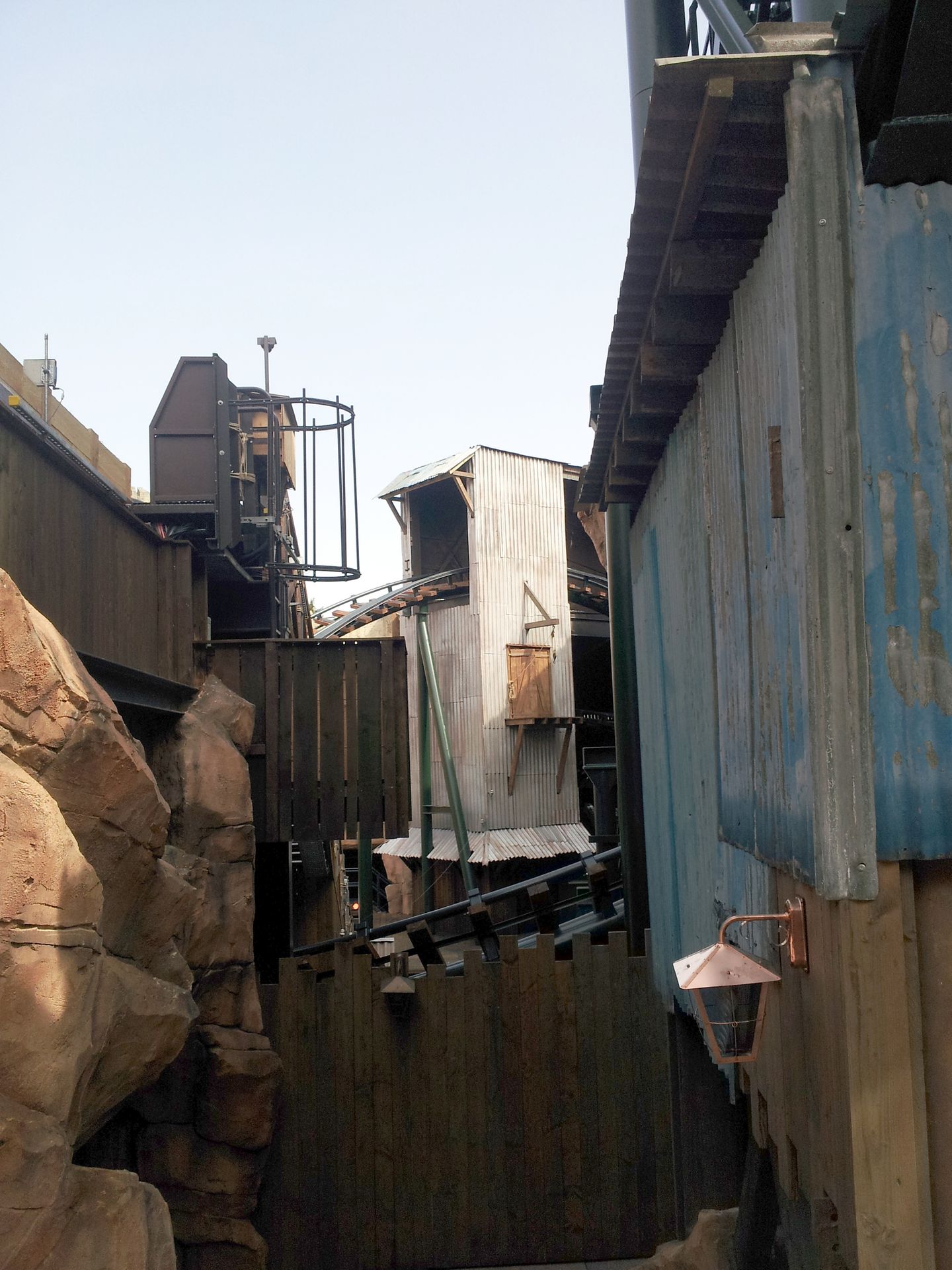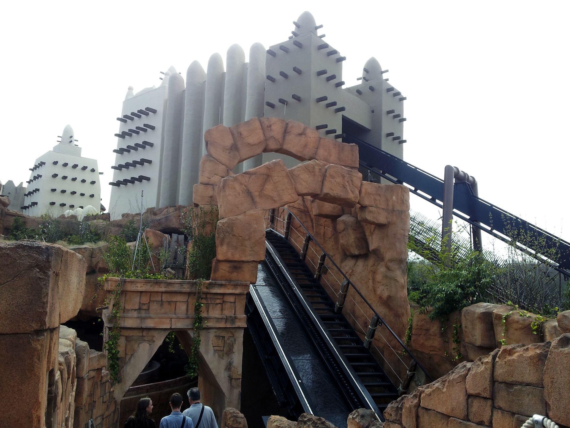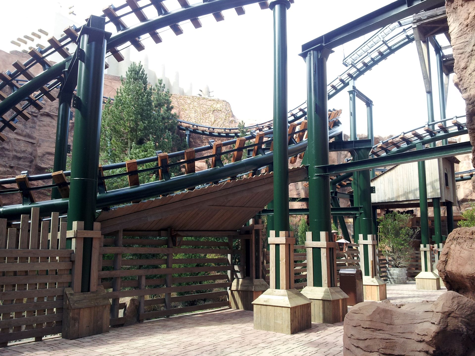 Ganz da hinten drin befindet sich die Kurve zum ersten Drop. Vorne die Strecke zwischen zweitem Lift und Tempel.