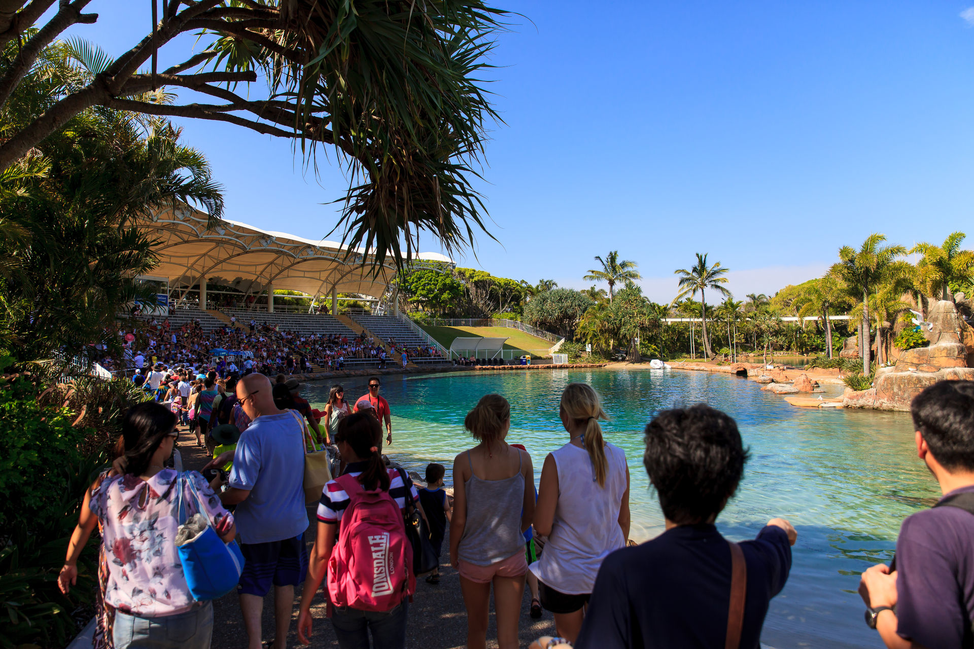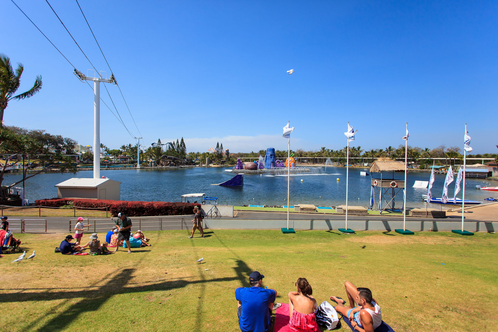 Gegen zwei Uhr erreichten wir den direkt an der Küste gelegenen Seworld Park, der nichts mit seinen amerikanischen Namensverwandten zu tun hat. Eine Mischung aus Stadtpark, Skiparadies und Bikini Bottom erwartete uns bereits.