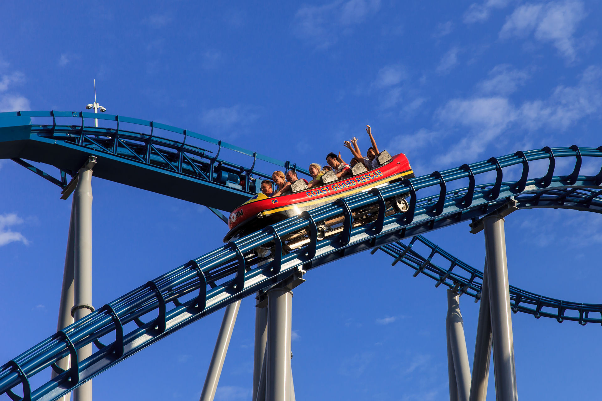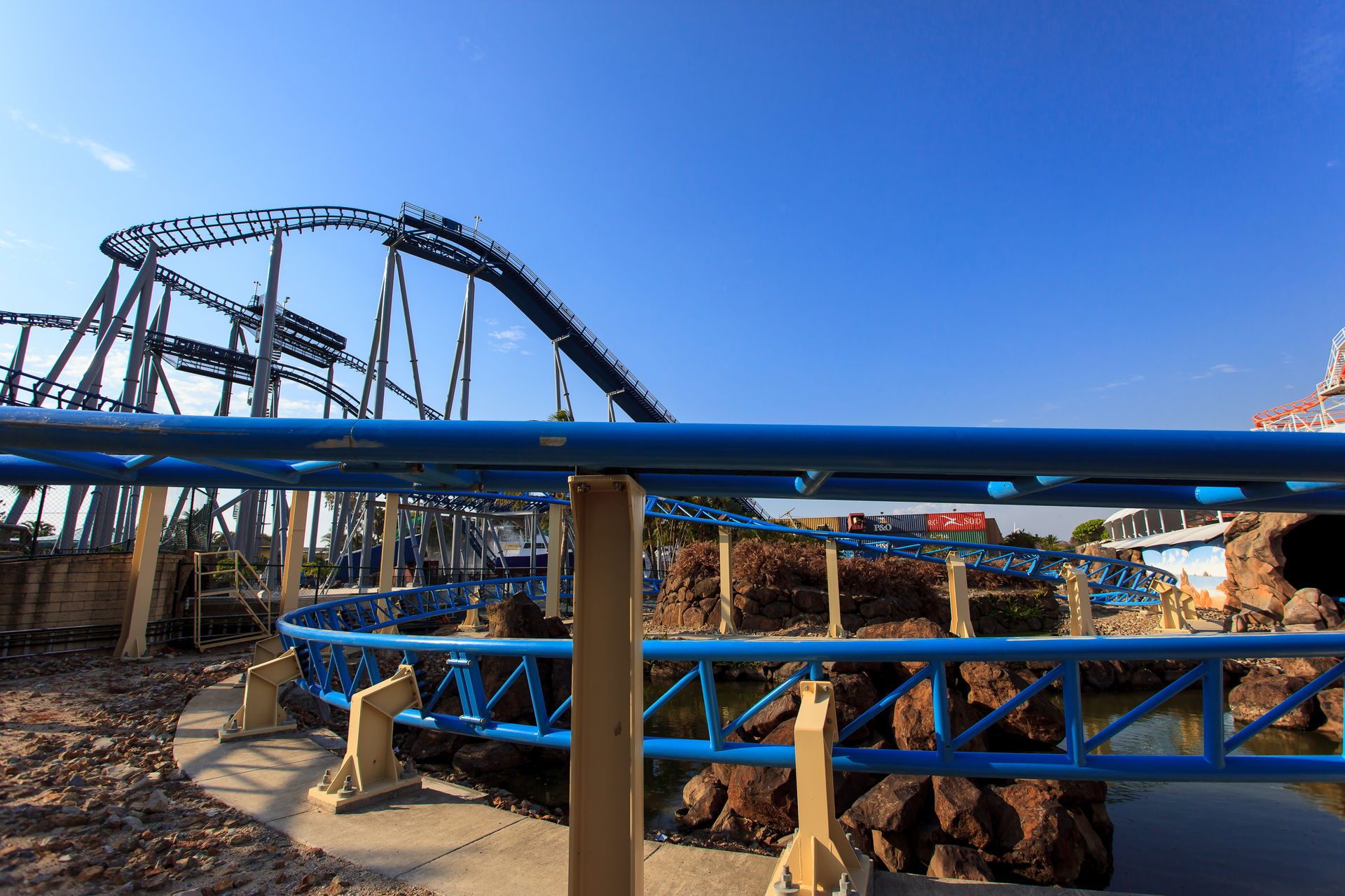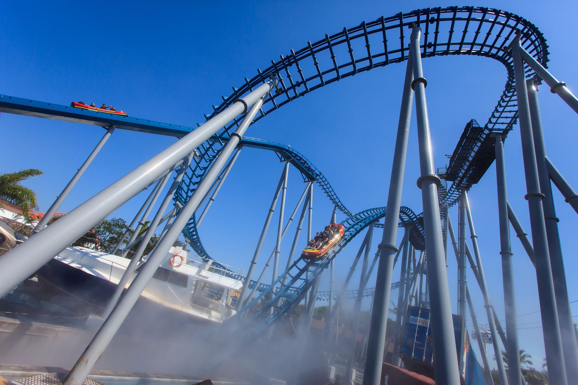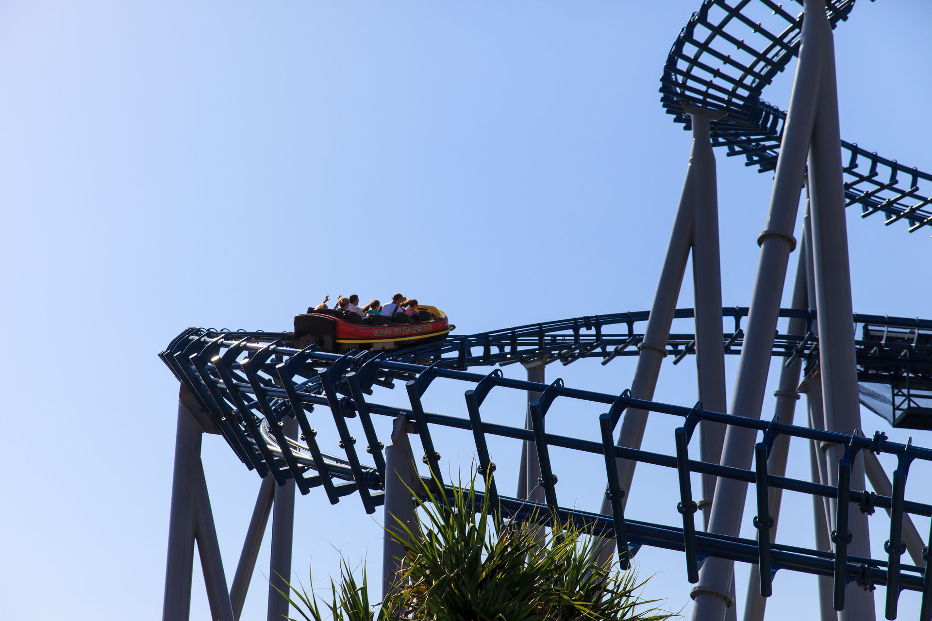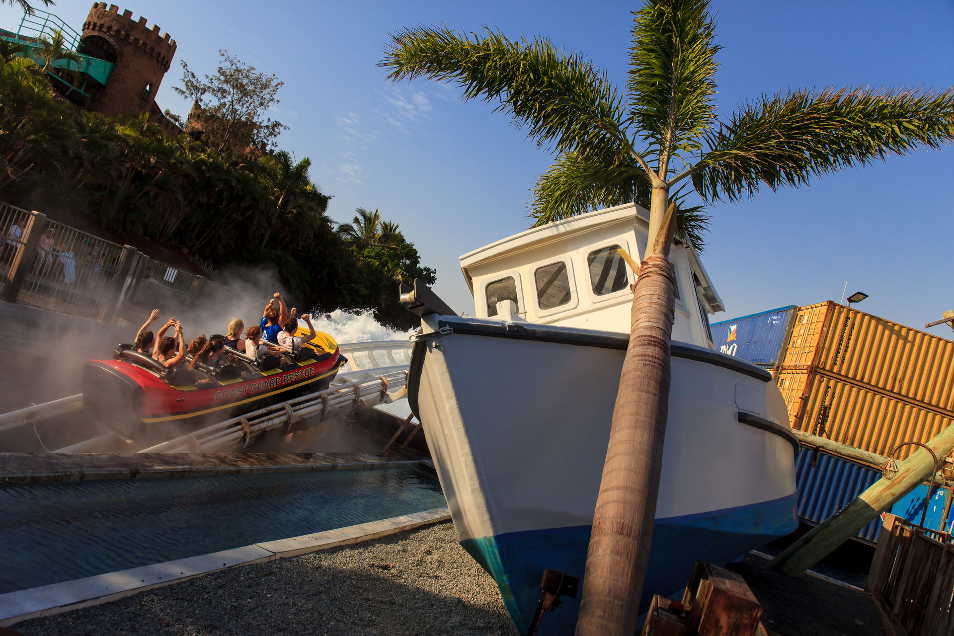 Zwischen der Vekoma-Schleuder und dem Mack'schen Watercoaster befindet sich noch der Jet Rescue Coaster, ein Intamin Reibrad Launcher.