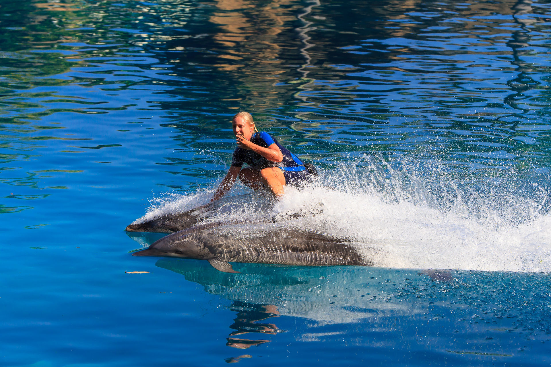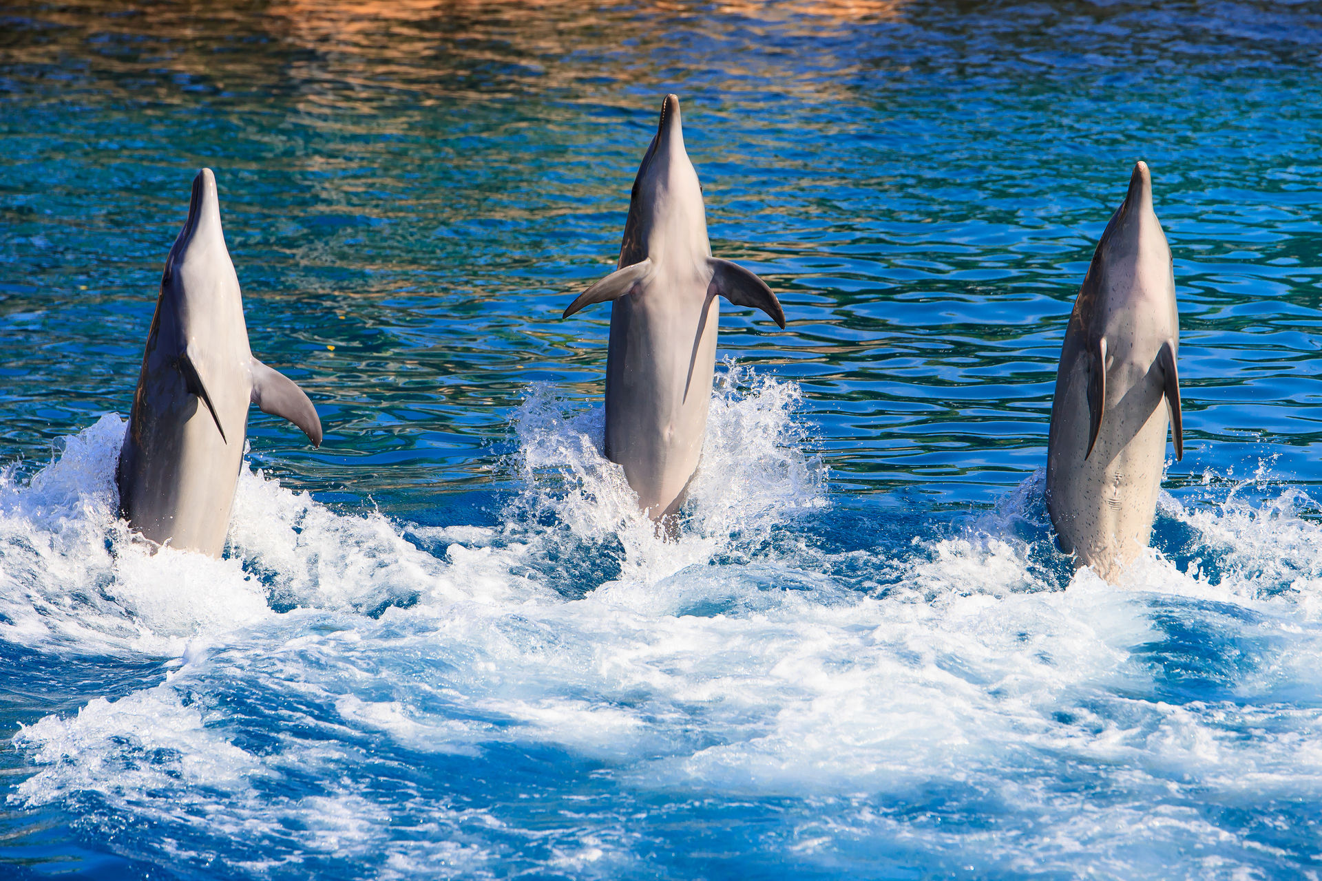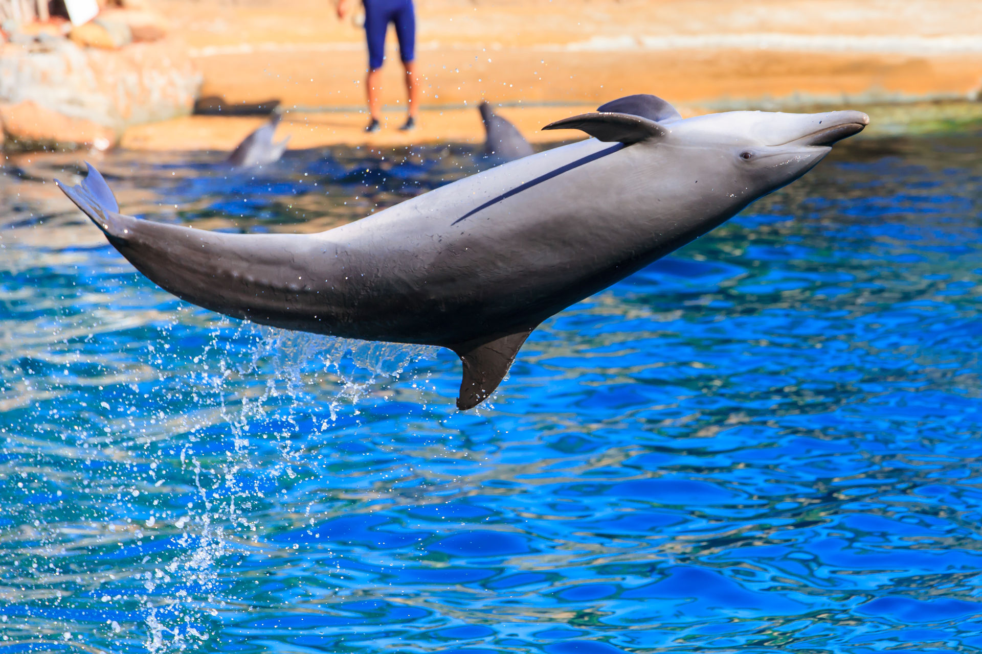 Und natürlich müssen die Delfine auch ein paar Kunststücke vorführen