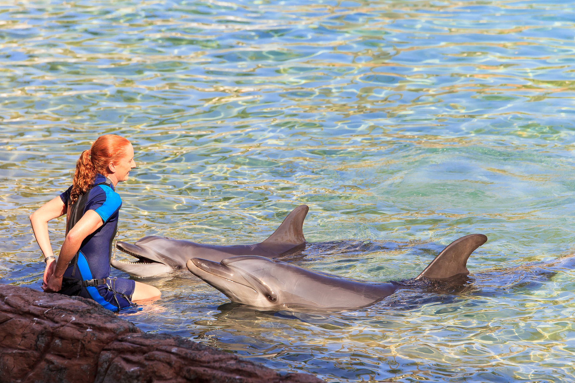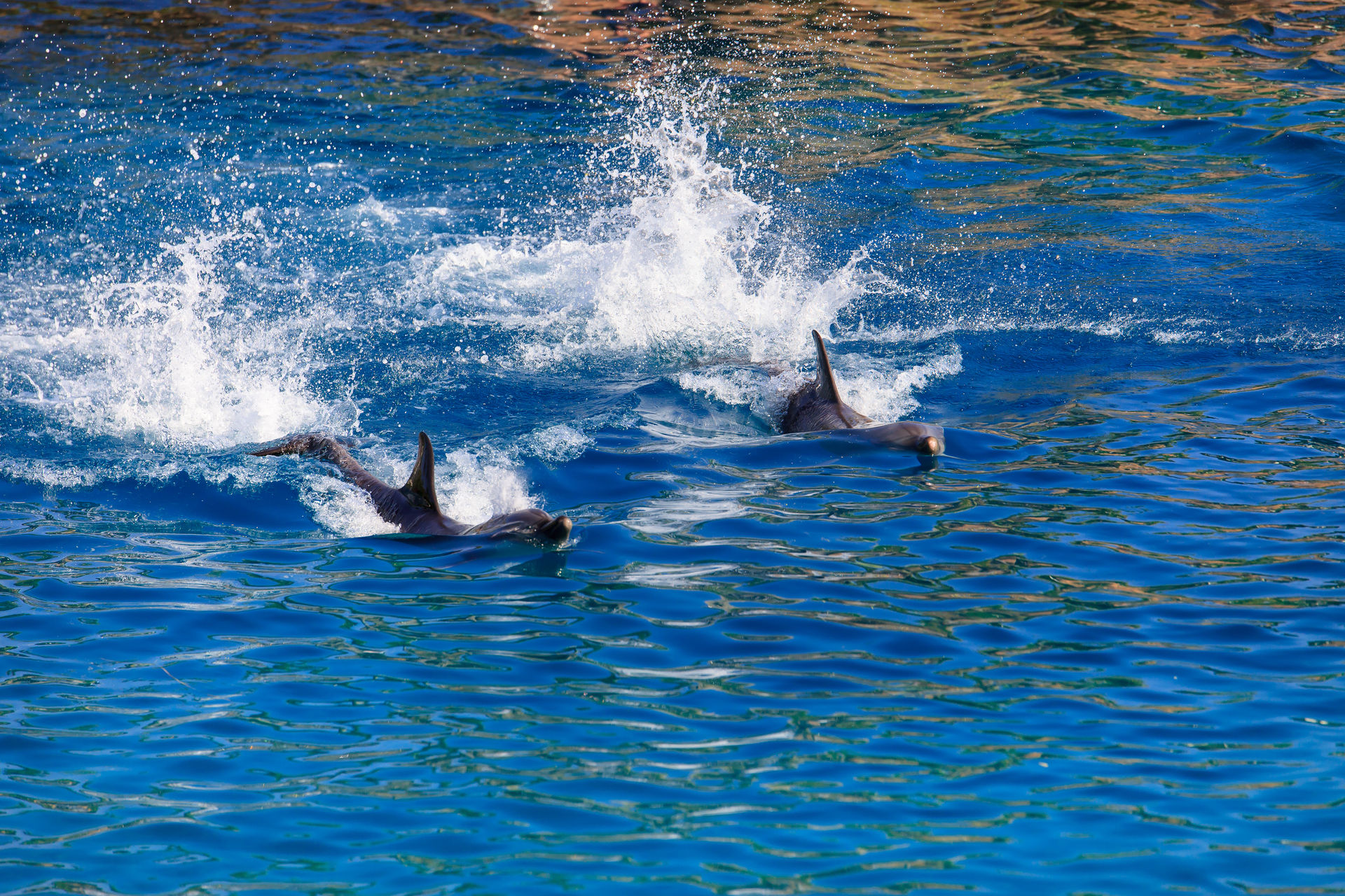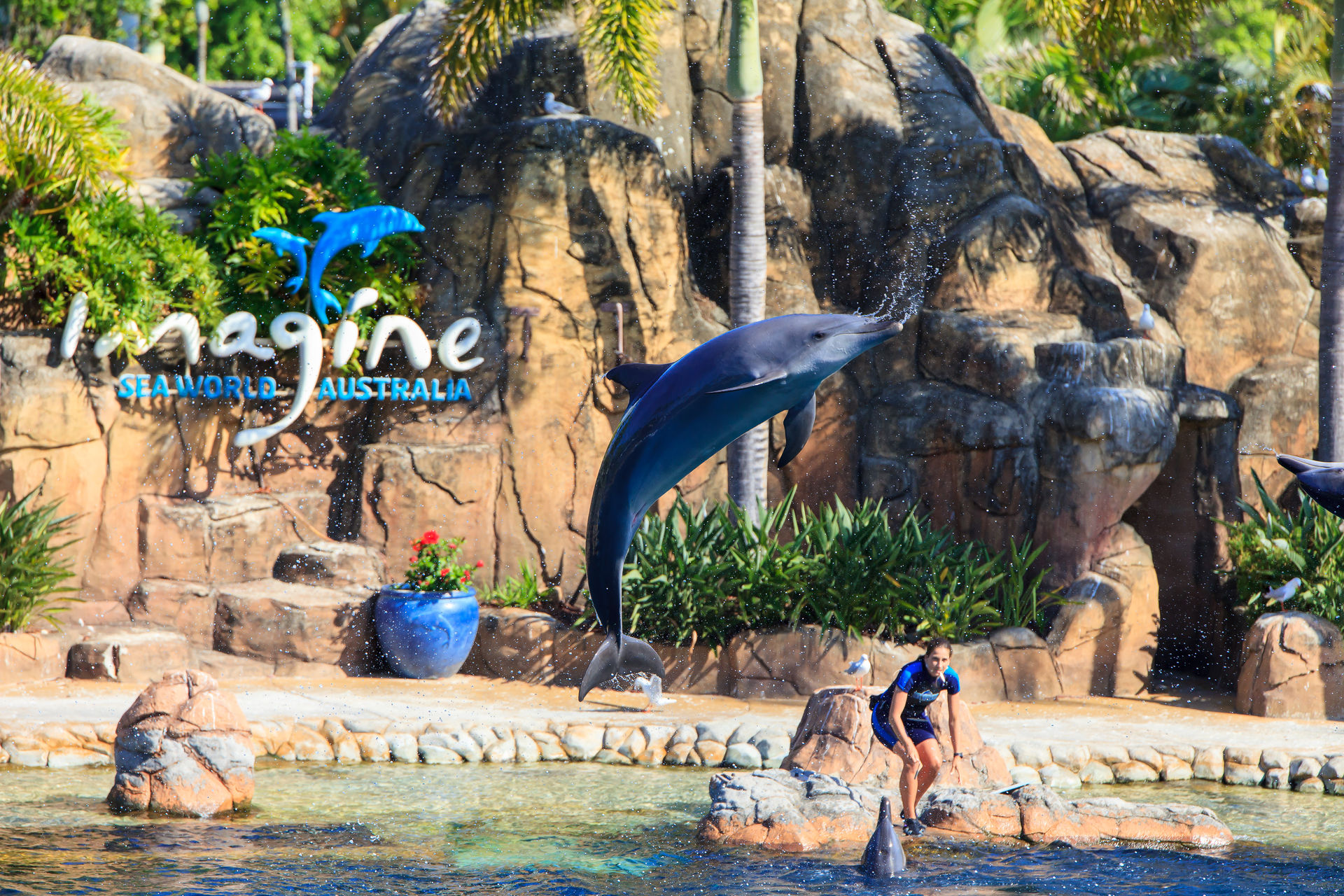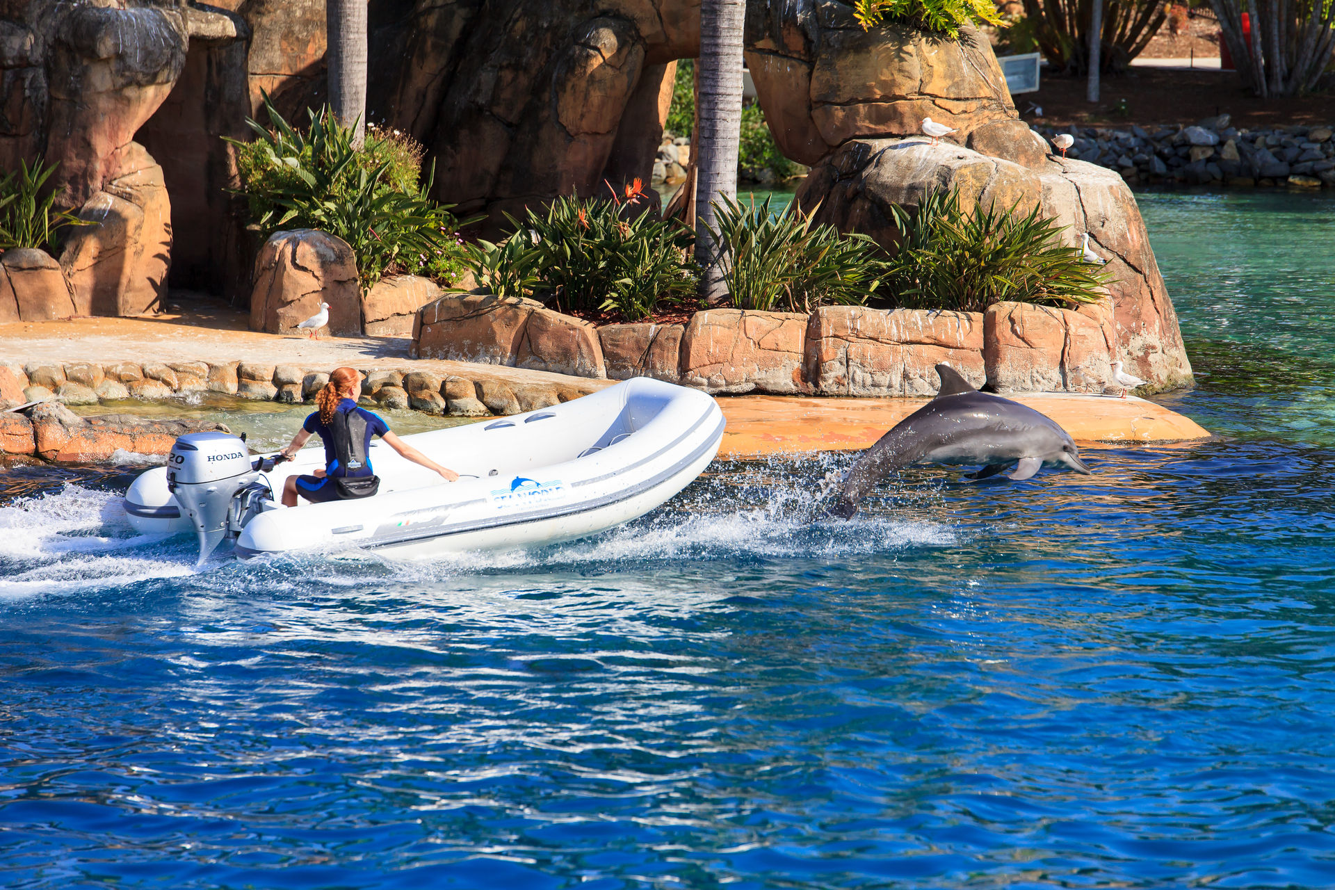 Und natürlich müssen die Delfine auch ein paar Kunststücke vorführen