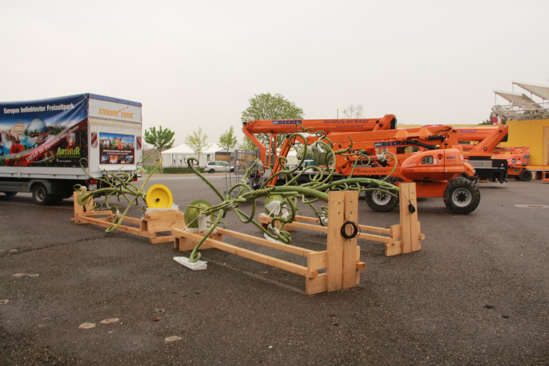Im Sommer steht hier Stefan Mross auf der Bühne, momentan diente der Platz aber noch als Lagerfläche.