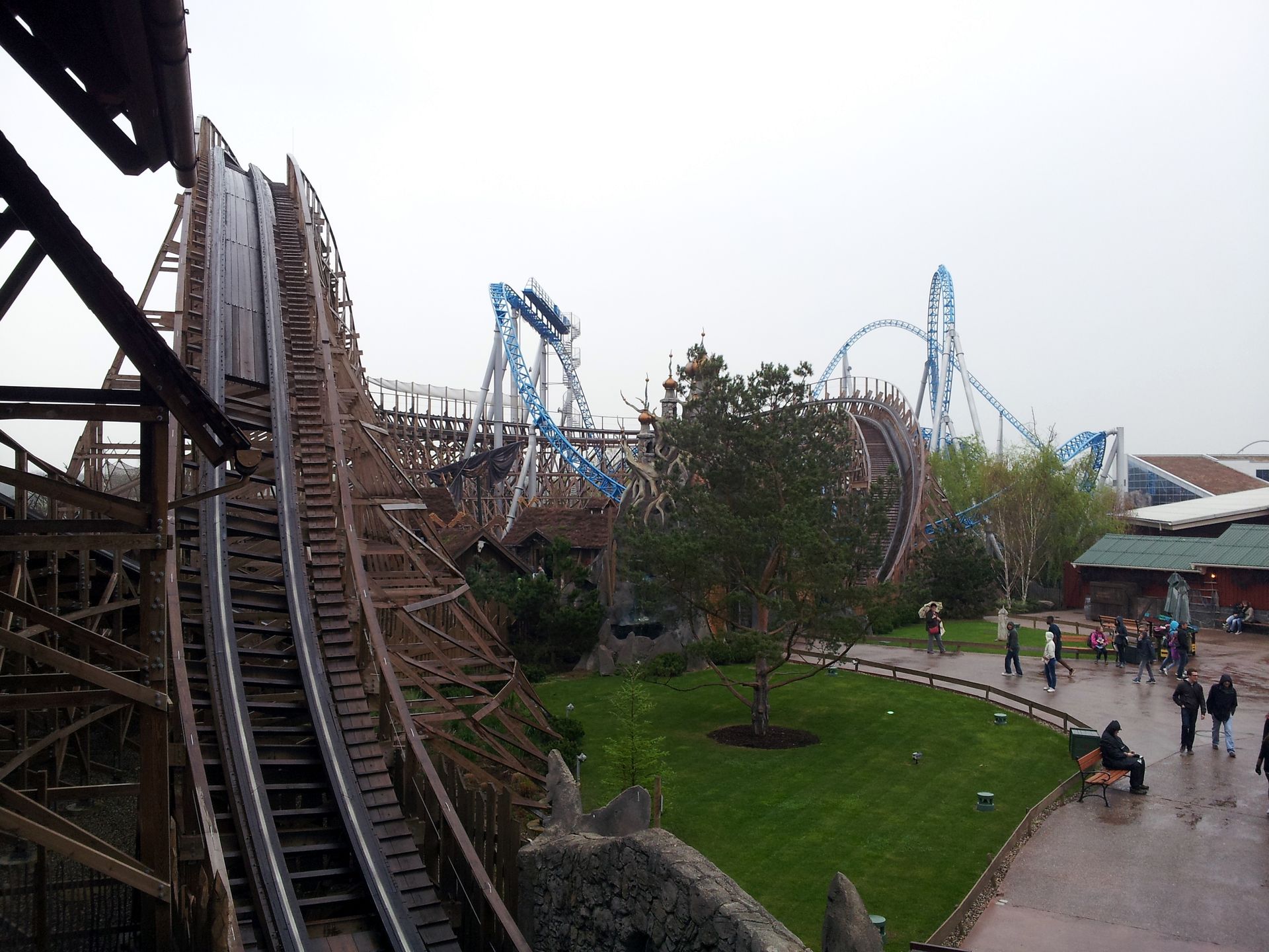 Wie die meisten gingen auch wir einmal quer durch den Park zu Wodan, wo dann gute 40 Minuten Wartezeit angesagt waren. Zugeteilt wurden wir für die Reihen 11 und 12, also ganz hinten. Bei meinem letzten Besuch kurz nach Eröffnung der Bahn war ich doch ein wenig enttäuscht. Inzwischen ist Wodan aber tatsächlich eingefahren und deutlich besser - vor allem am Ende eines verregneten Tages. Damit rutscht die Bahn in meinen Favoriten doch noch ein paar Plätze nach oben.