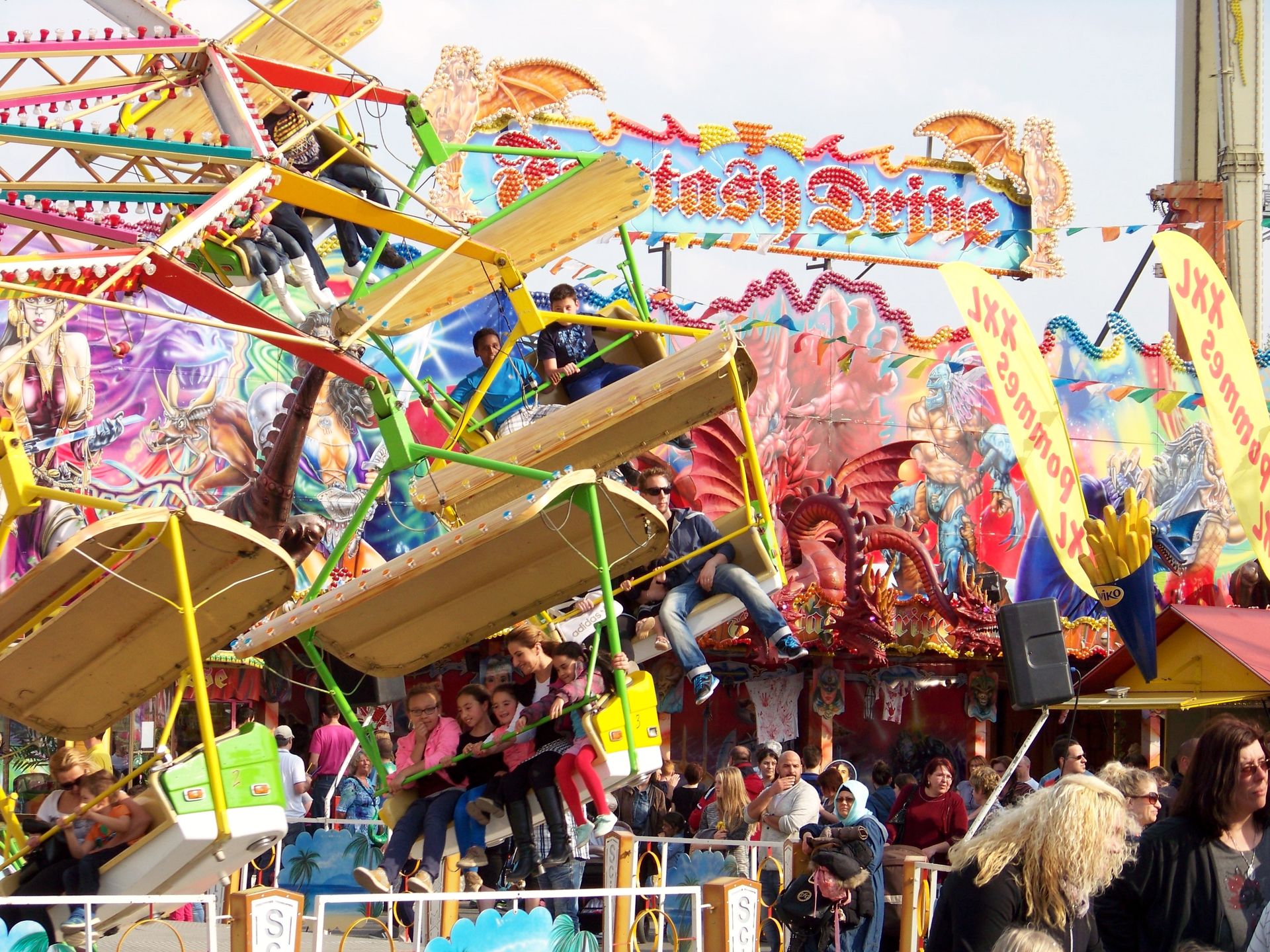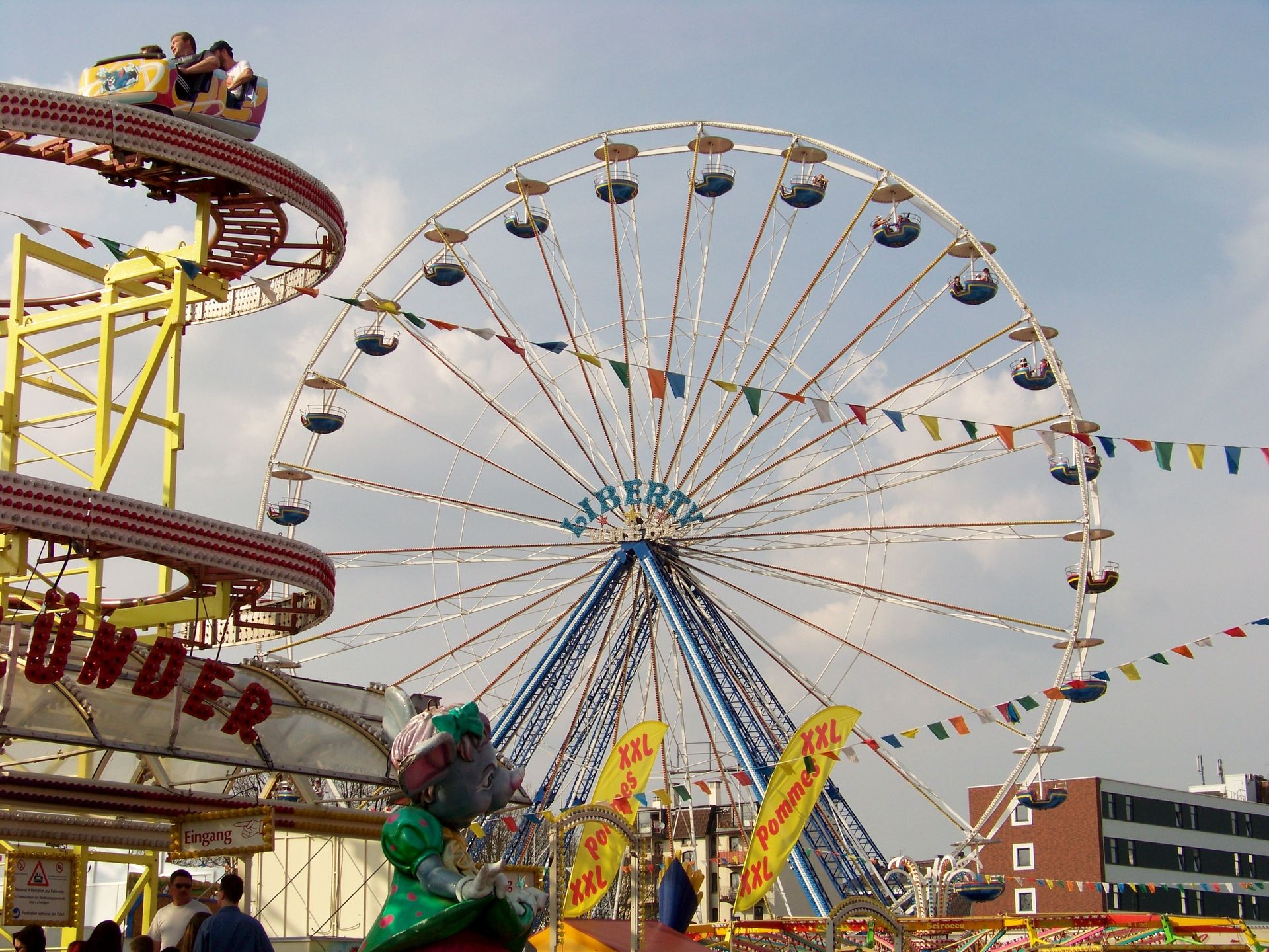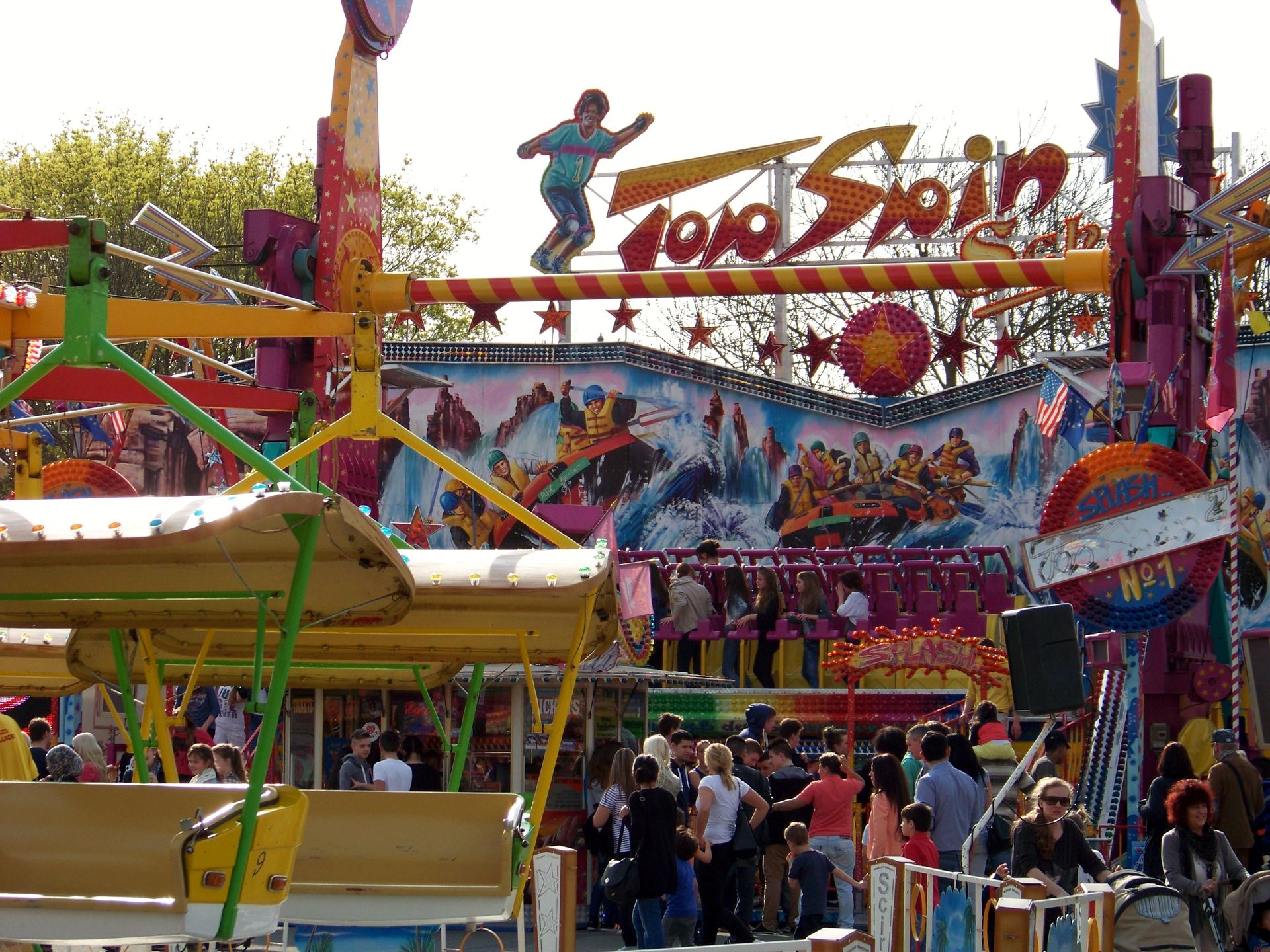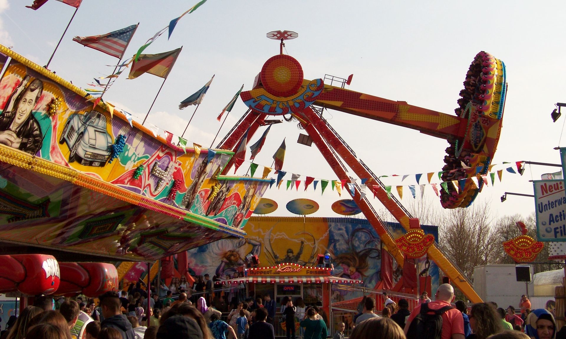 Einziger Wehrmutstropfen an diesem schönen Kirmesnachmittag war, dass die Hauptattraktion – der Gladiator – leider außer Betrieb war. Sehr schade! Allerdings hatte das Frühlingsfest trotzdem noch genug zu bieten, wenn auch sehr viel Kasseler Standard dabei war. So nahmen Rupperts Take Off, der Scirocco, Niers Starlight Express und die beiden Scooter ihre Stammplätze ein. Auch die Frisbee von Ruppert gehört hier mittlerweile zum festen Inventar. Scheeles Top Spin (für mich immer noch das schönste Exemplar in Deutschland) gab ein erneutes Heimgastspiel. Weiterhin wurden noch Katz & Maus, U 3000, Domino und das Liberty Wheel von Gormanns geboten.