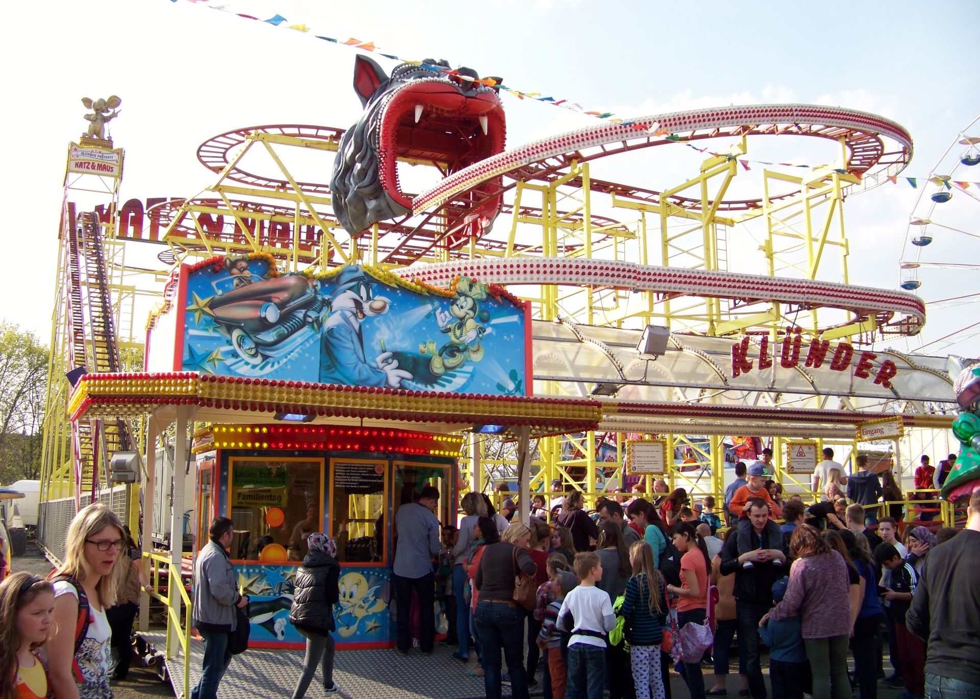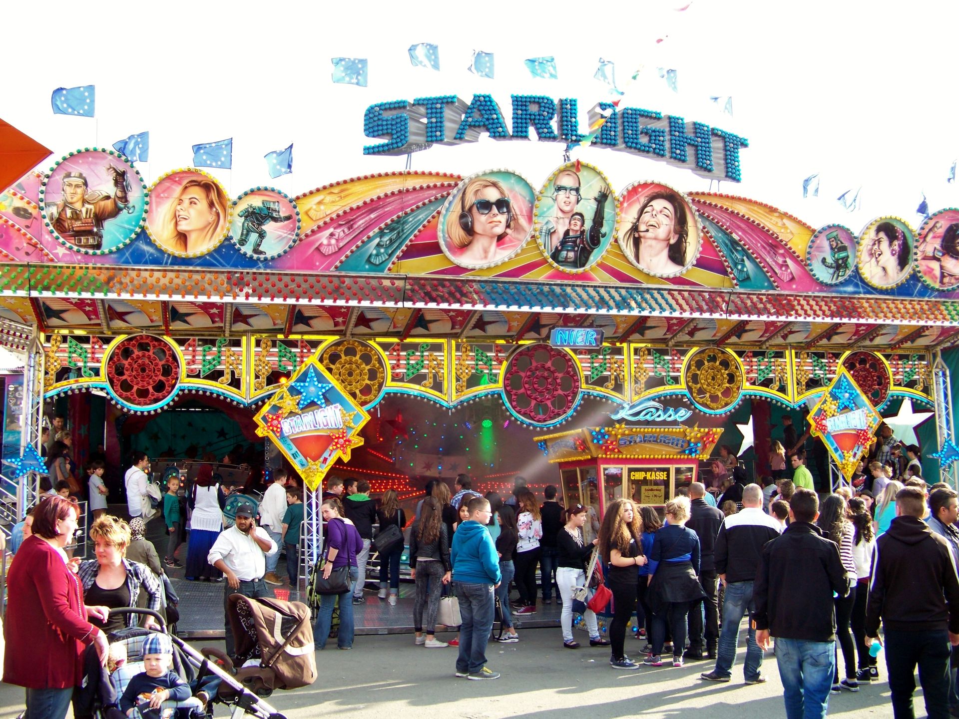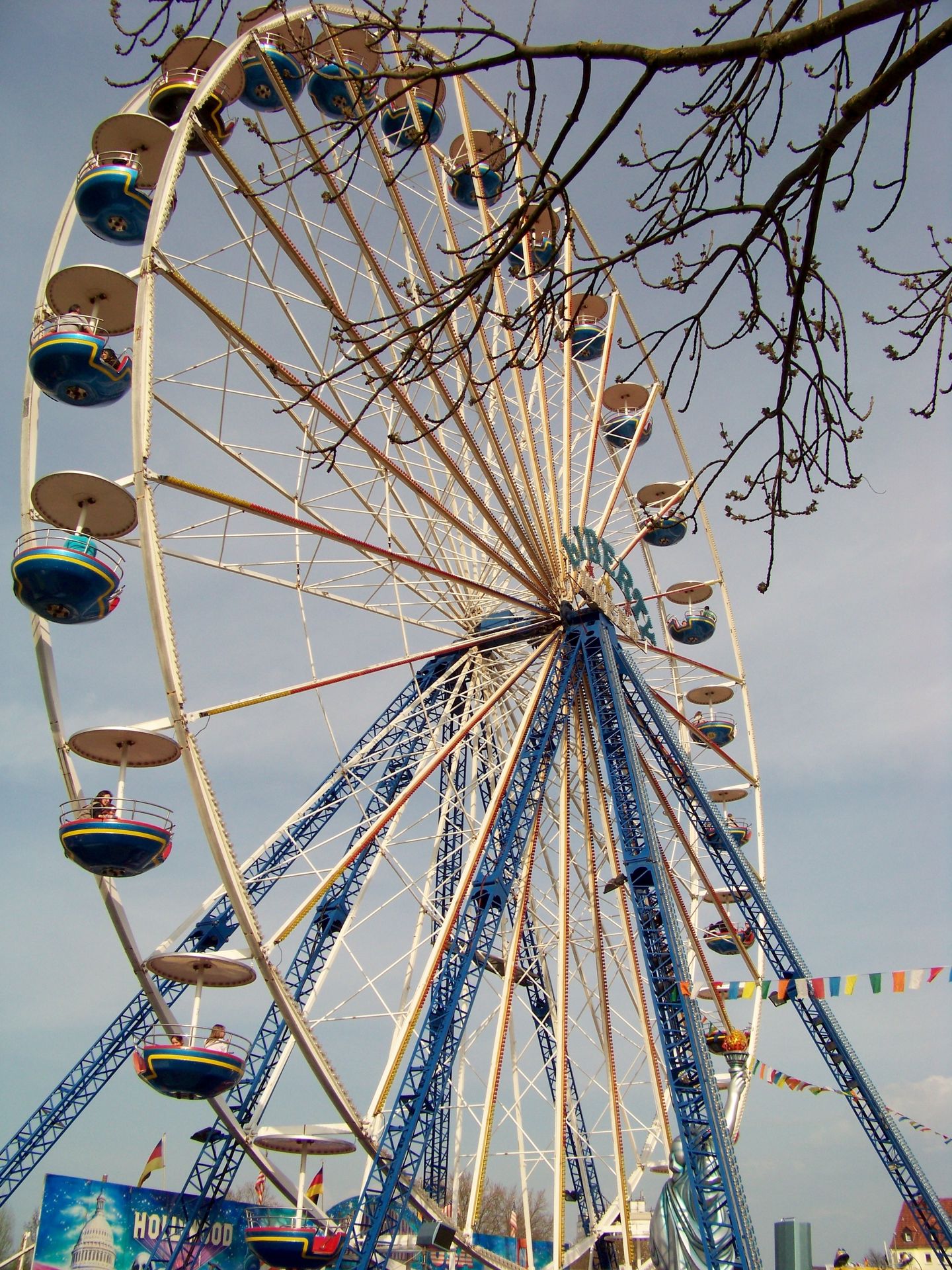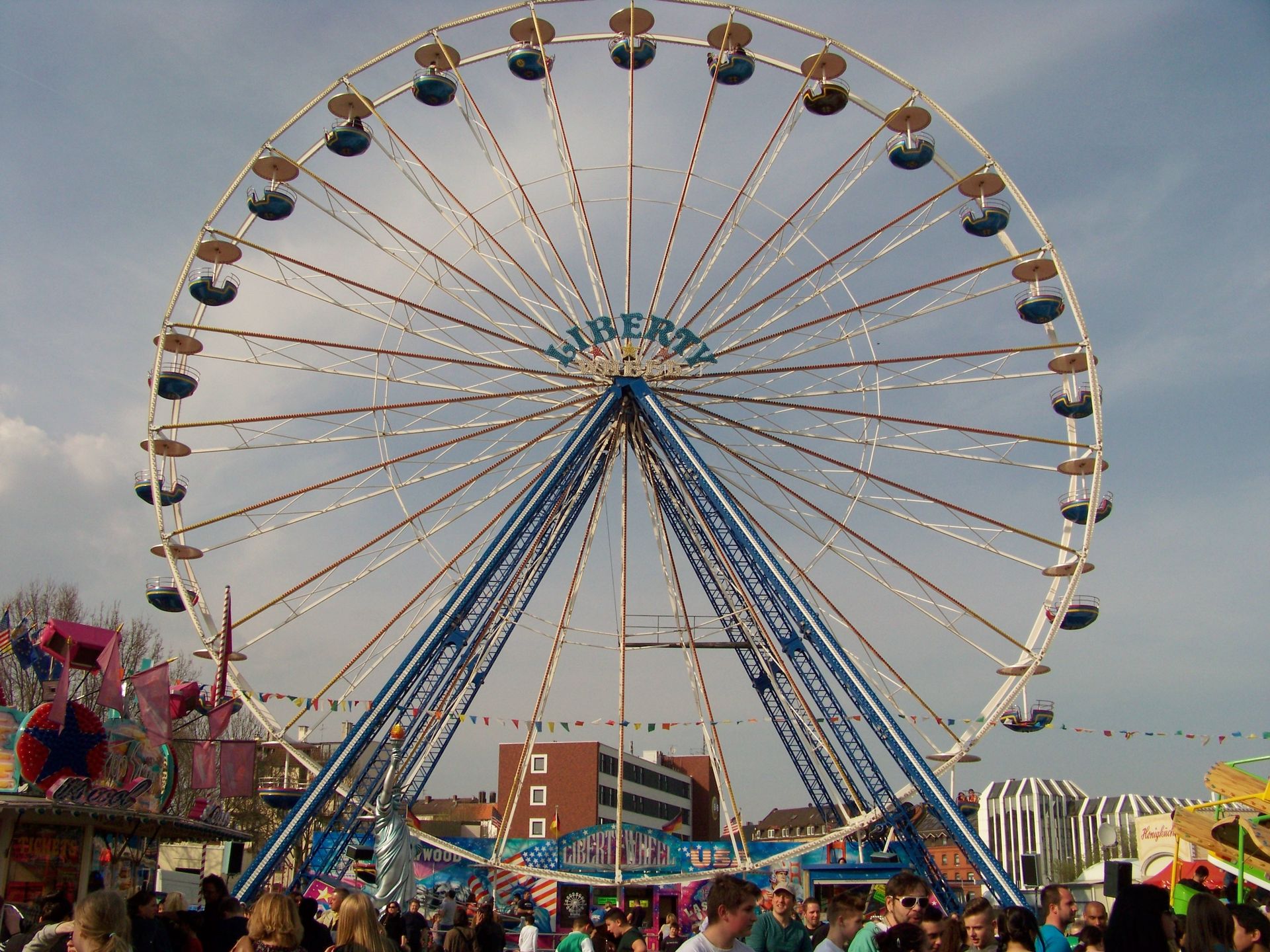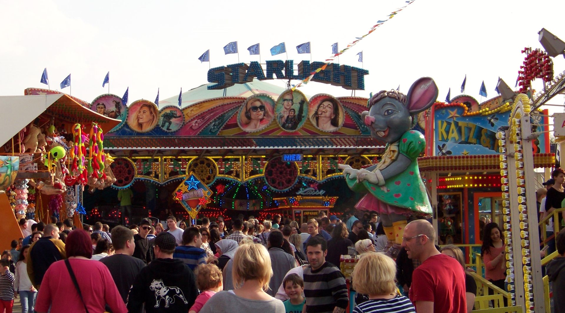 Einziger Wehrmutstropfen an diesem schönen Kirmesnachmittag war, dass die Hauptattraktion – der Gladiator – leider außer Betrieb war. Sehr schade! Allerdings hatte das Frühlingsfest trotzdem noch genug zu bieten, wenn auch sehr viel Kasseler Standard dabei war. So nahmen Rupperts Take Off, der Scirocco, Niers Starlight Express und die beiden Scooter ihre Stammplätze ein. Auch die Frisbee von Ruppert gehört hier mittlerweile zum festen Inventar. Scheeles Top Spin (für mich immer noch das schönste Exemplar in Deutschland) gab ein erneutes Heimgastspiel. Weiterhin wurden noch Katz & Maus, U 3000, Domino und das Liberty Wheel von Gormanns geboten.