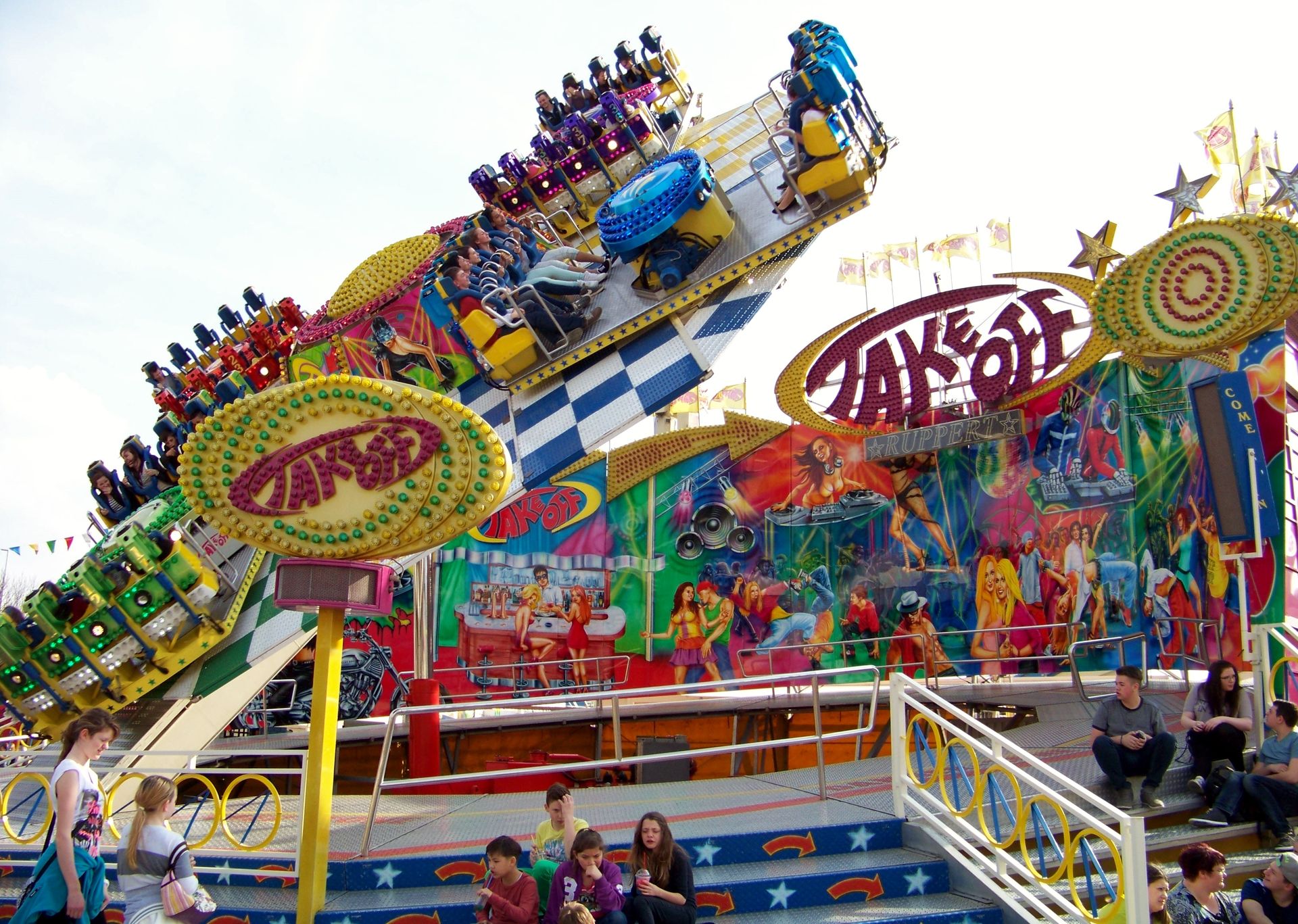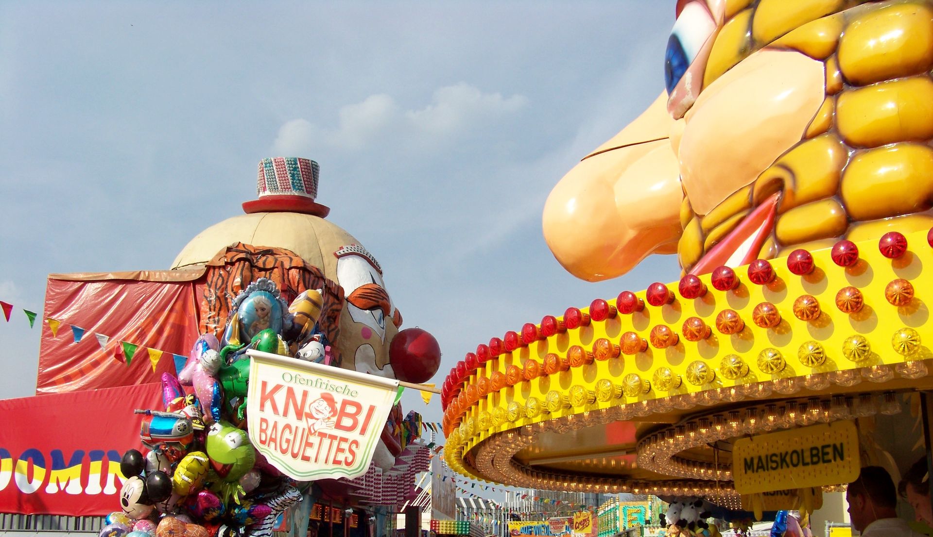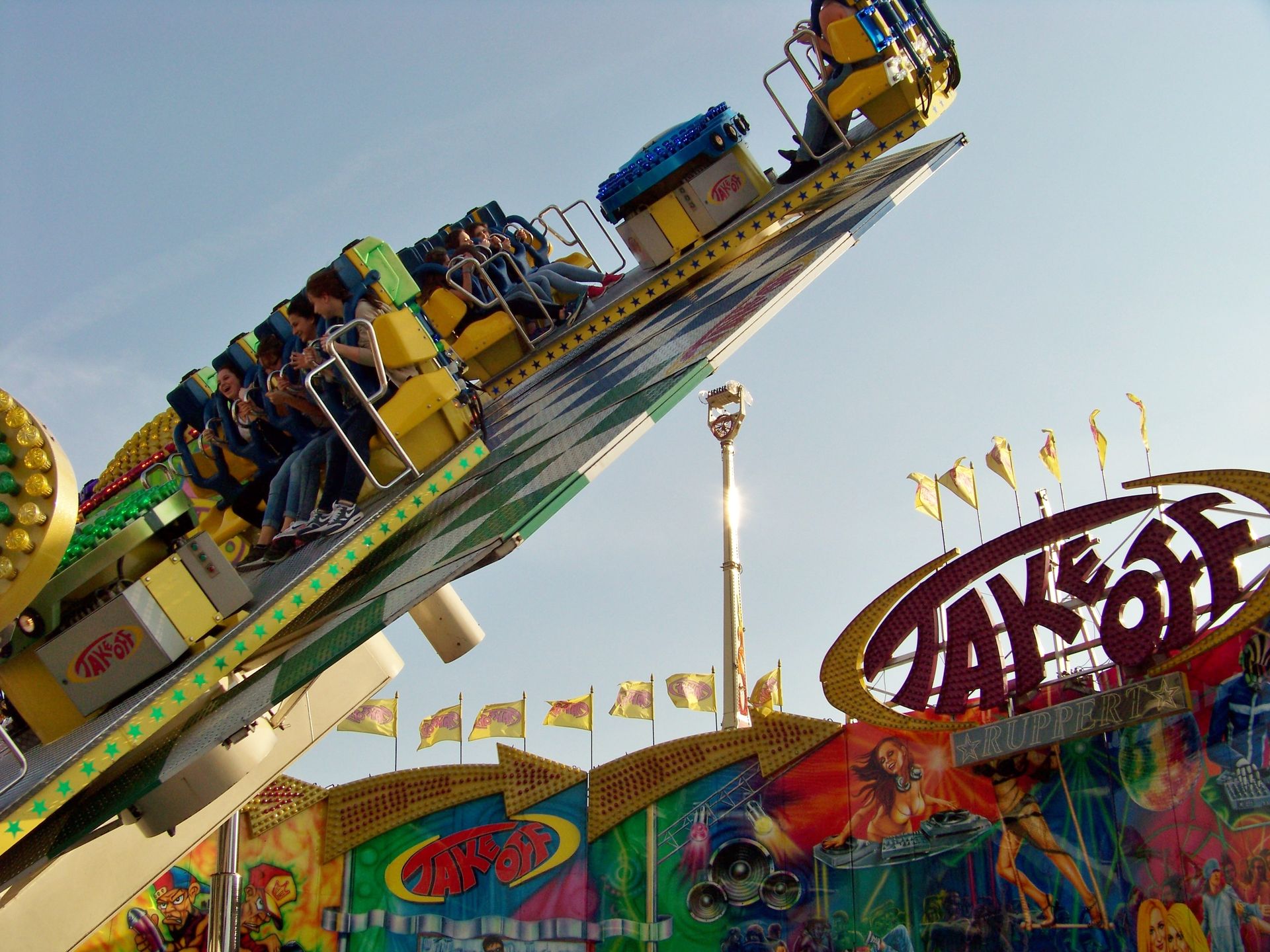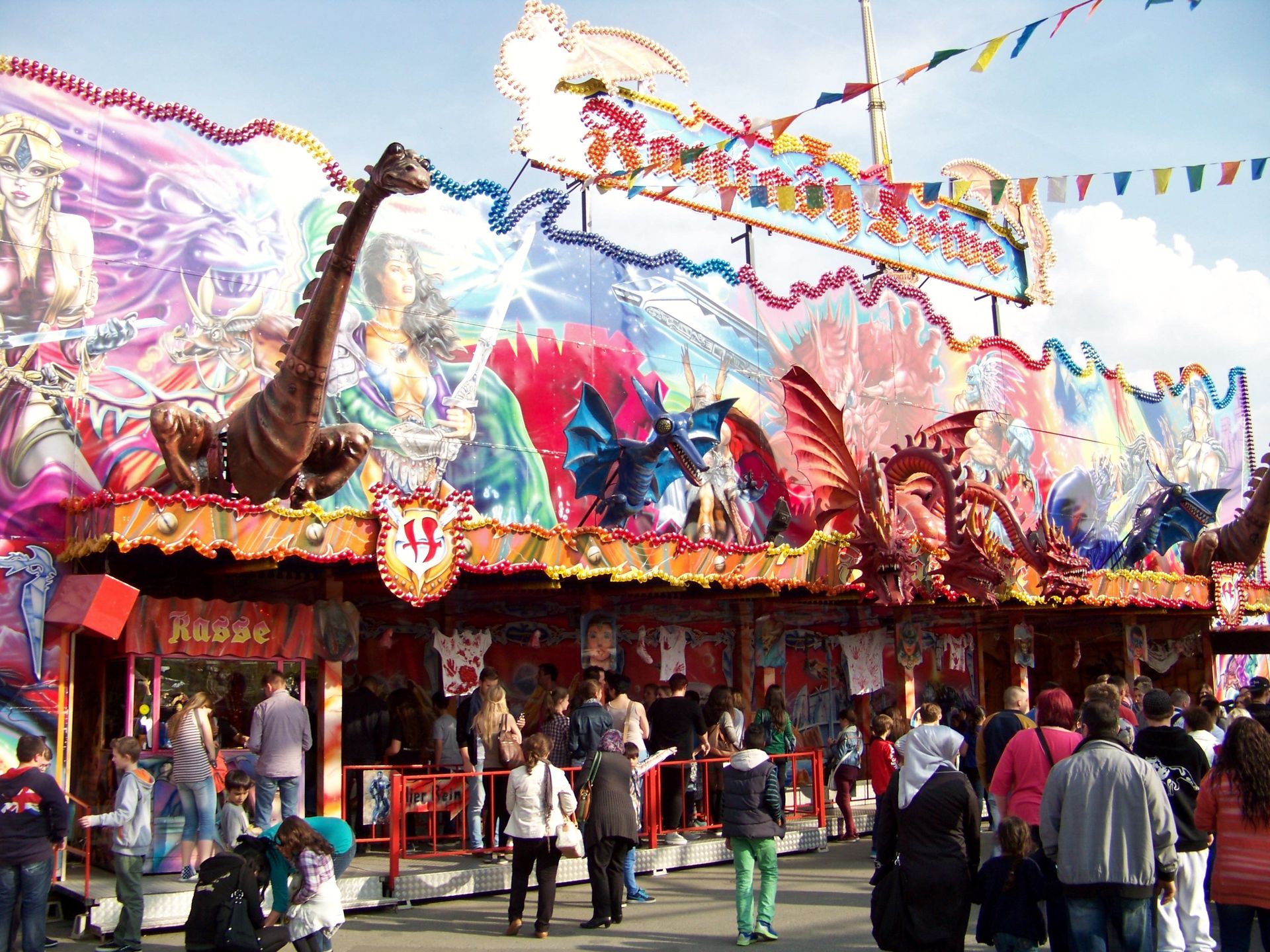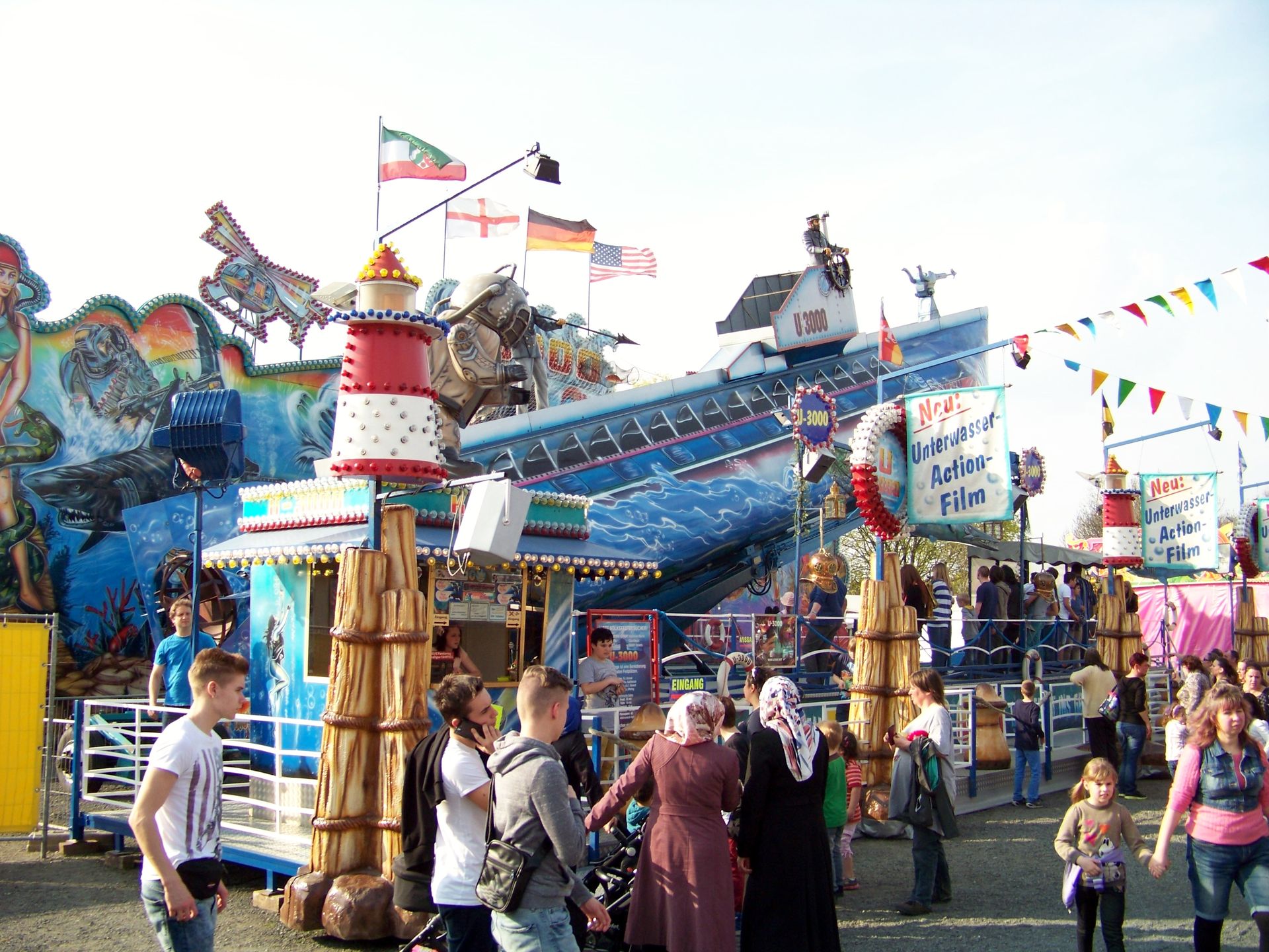 Einziger Wehrmutstropfen an diesem schönen Kirmesnachmittag war, dass die Hauptattraktion – der Gladiator – leider außer Betrieb war. Sehr schade! Allerdings hatte das Frühlingsfest trotzdem noch genug zu bieten, wenn auch sehr viel Kasseler Standard dabei war. So nahmen Rupperts Take Off, der Scirocco, Niers Starlight Express und die beiden Scooter ihre Stammplätze ein. Auch die Frisbee von Ruppert gehört hier mittlerweile zum festen Inventar. Scheeles Top Spin (für mich immer noch das schönste Exemplar in Deutschland) gab ein erneutes Heimgastspiel. Weiterhin wurden noch Katz & Maus, U 3000, Domino und das Liberty Wheel von Gormanns geboten.