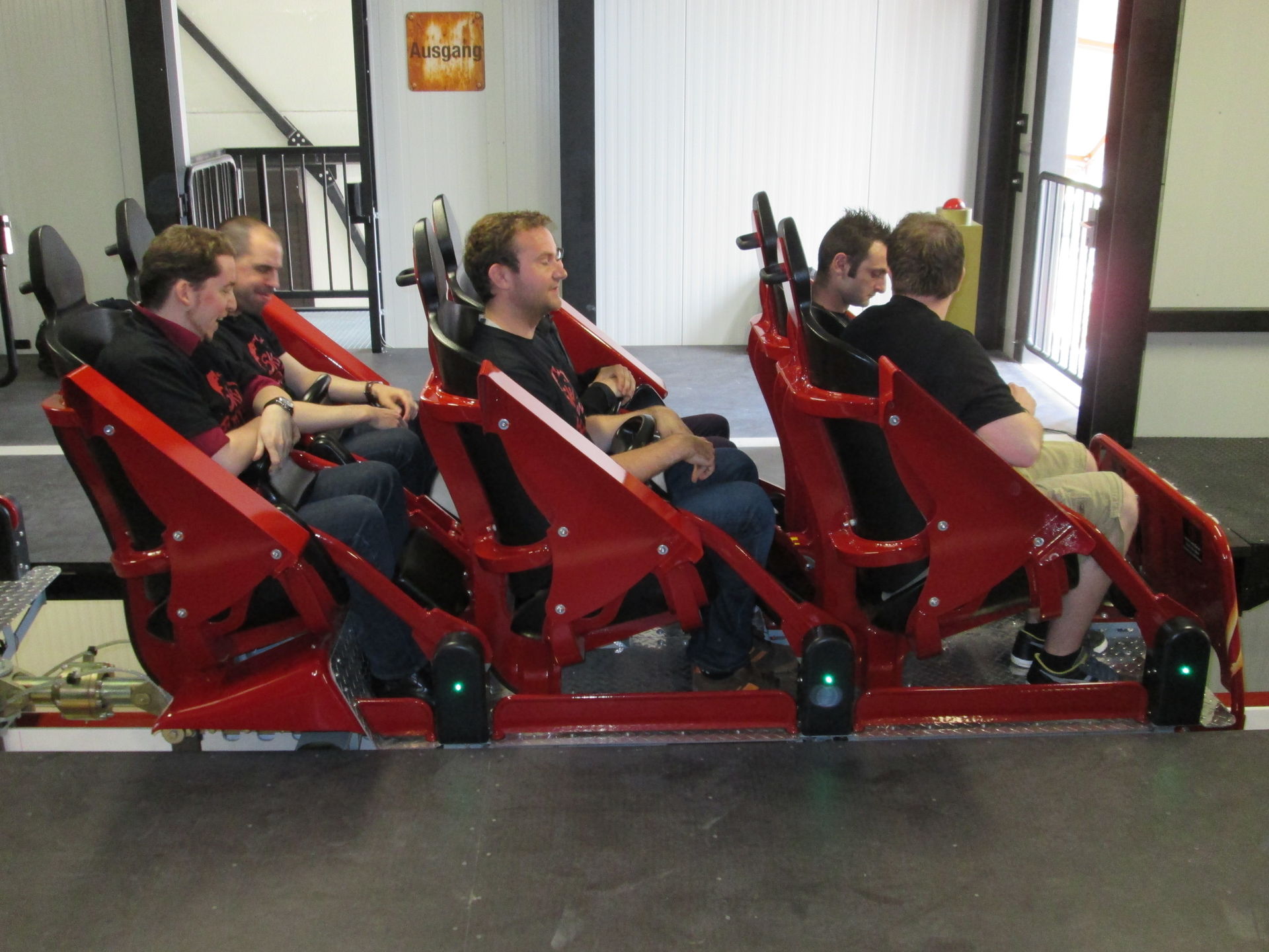 g-Kräfte, insbesondere im vorderen und hinteren Zugteil, hat mich trotz Vorwarnung einiger Discovery Kingdom-fahrer ziemlich überrascht. Die Launches selbst sind logischerweise nicht so beeindruckend wie auf anderen Abschussanlagen, trotzdem macht das "hin- und herschwingen" Spaß und der Rückwärtspart ist definitiv etwas anderes für europäische Verhältnisse. Leider hat die Bahn auch einen kleinen Haken: für größere Personen sind die Beinklammern der Bügel leider etwas unbequem. Da diese aber direkt mit dem Beckenbügel verbunden sind, hat man als schlanker Mensch allerdings einiges an Platz zwischen Beckenbügel und Bauch - immerhin eine kleine Entschädigung. Ich habe mit Jim Seay, President von Premier Rides, über dieses Problem gesprochen, und er meinte, ihm sei dieses Problem bewusst, aber man könne es nicht ändern, da dies Teil des Sicherheitskonzeptes der Anlage sei und wohl die Behörden das auch haben wollen.