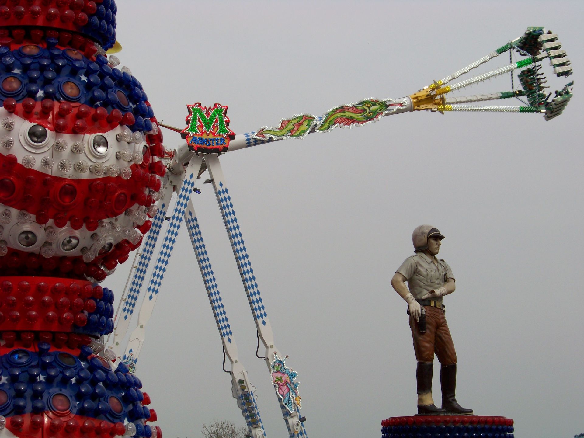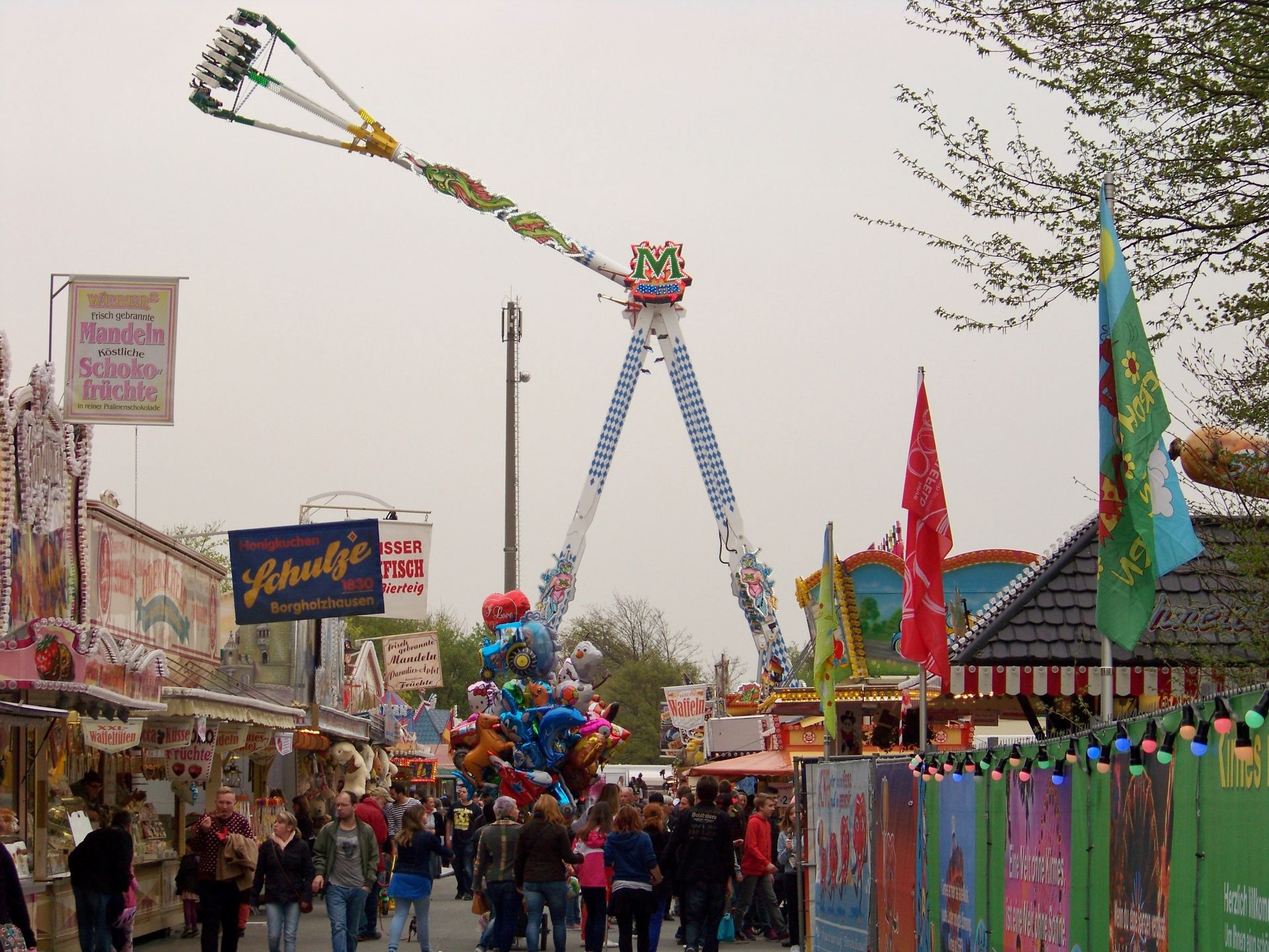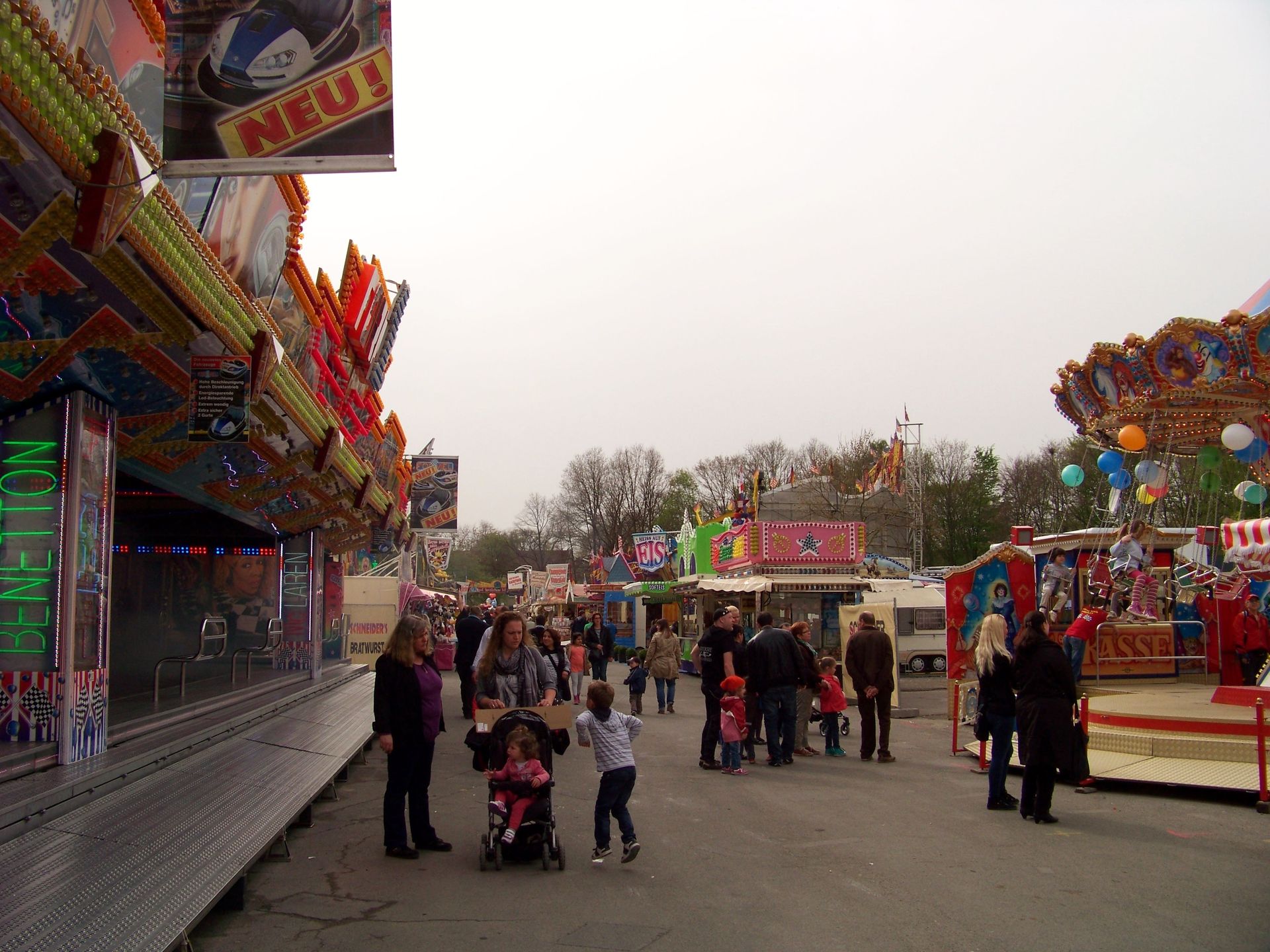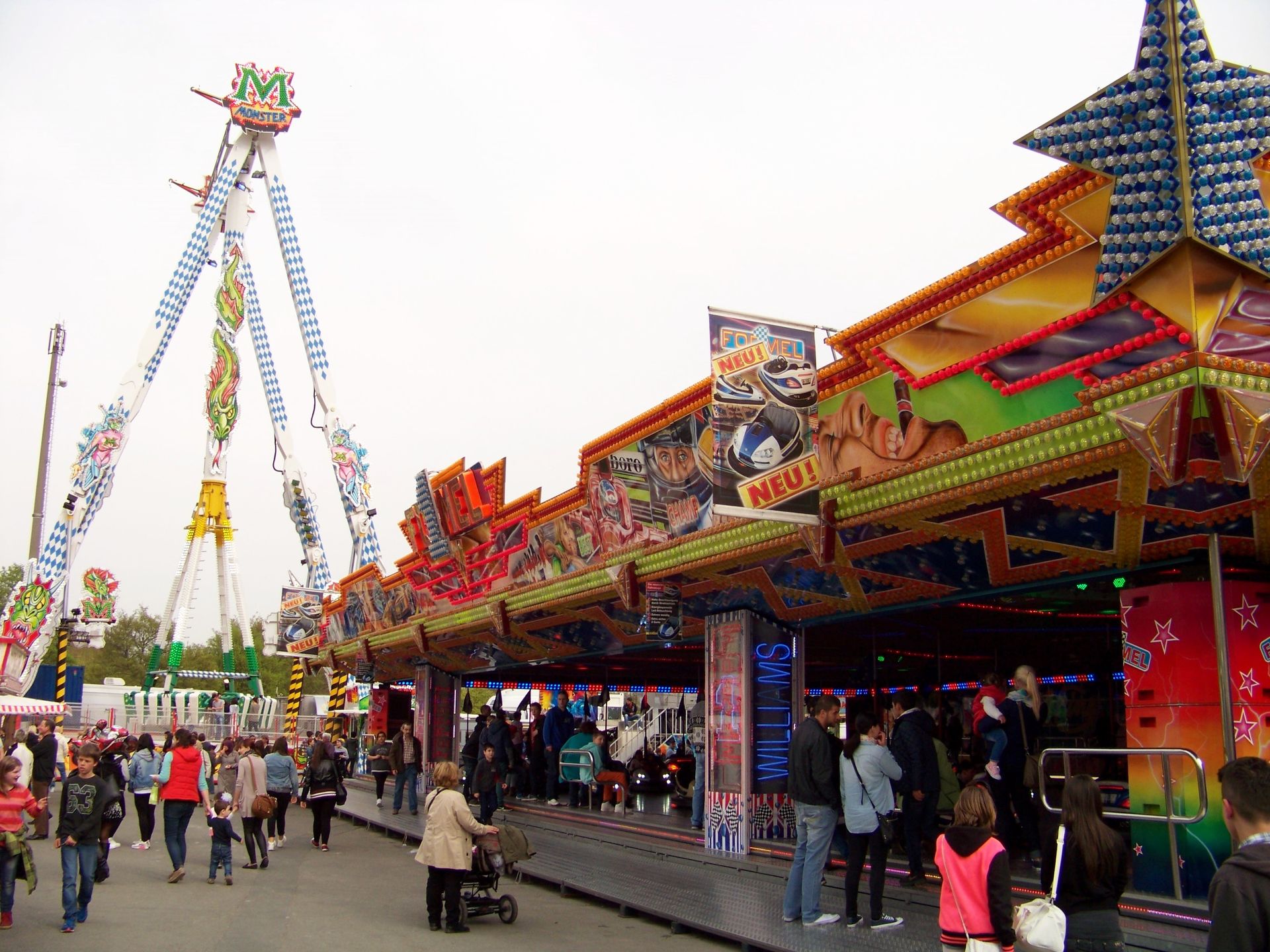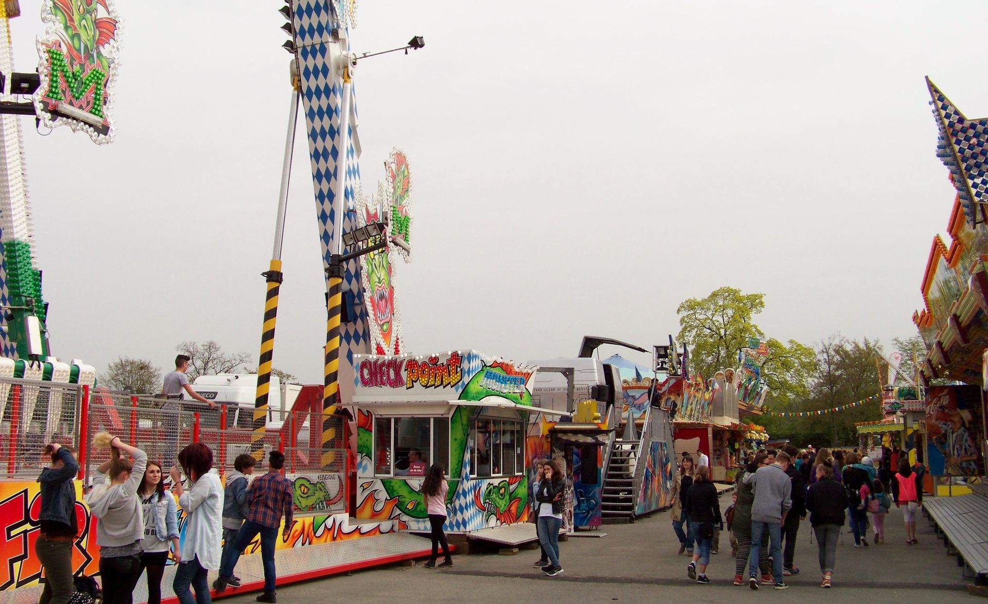Die Frühjahrskirmes an der Radrennbahn in Bielefeld ist eine Veranstaltung, die vor allem in den letzten Jahren ein wenig unter Schwund gelitten hat. Schon seit ein paar Jahren gastiert hier kein Riesenrad mehr und die größeren Fahrgeschäftshighlights stehen – wenn überhaupt – nur zur Herbstveranstaltung auf dem Platz. In diesem Jahr konnte jedoch mit Boos' Neuanschaffung – dem KMG-XXL Monster – eine echte Zugnummer, die den Platz deutlich dominiert und aufwertet gewonnen werden. Auch im Bereich Belustigung (wobei Belustigung hier eigentlich das falsche Wort ist) konnte mit Bossles Horror House ein wirkliches Higlight für die Frühjahrskirmes gewonnen werden. Ansonsten findet man auf dem Platz die üblichen Stammgeschäfte, die hier auch schon in den vergangenen Jahren zumeist anzutreffen waren (in diesem Jahr aber zum Glück nur ein Musikexpress), u.a. der wirklich toll betriebene Break Dancer von Engelbrecht, der in diesem Jahr beide Bielefelder Frühjahrsveranstaltungen angesteuert hat.