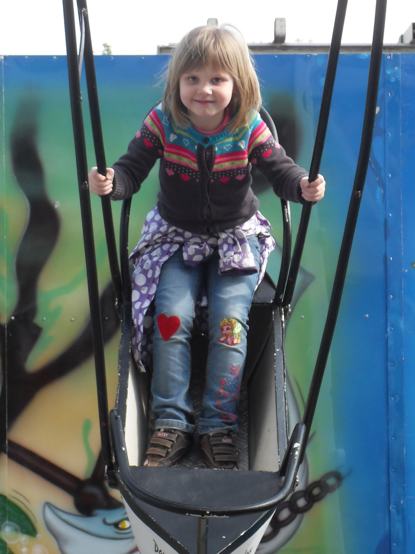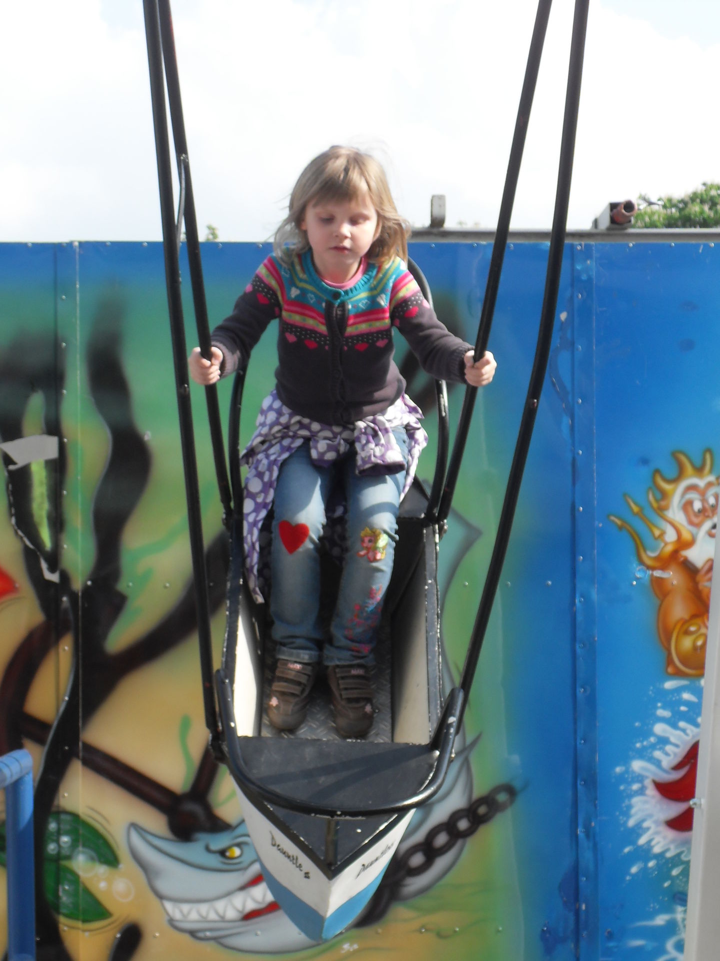 Mia vergnügt sich in den Kinderschiffschaukeln