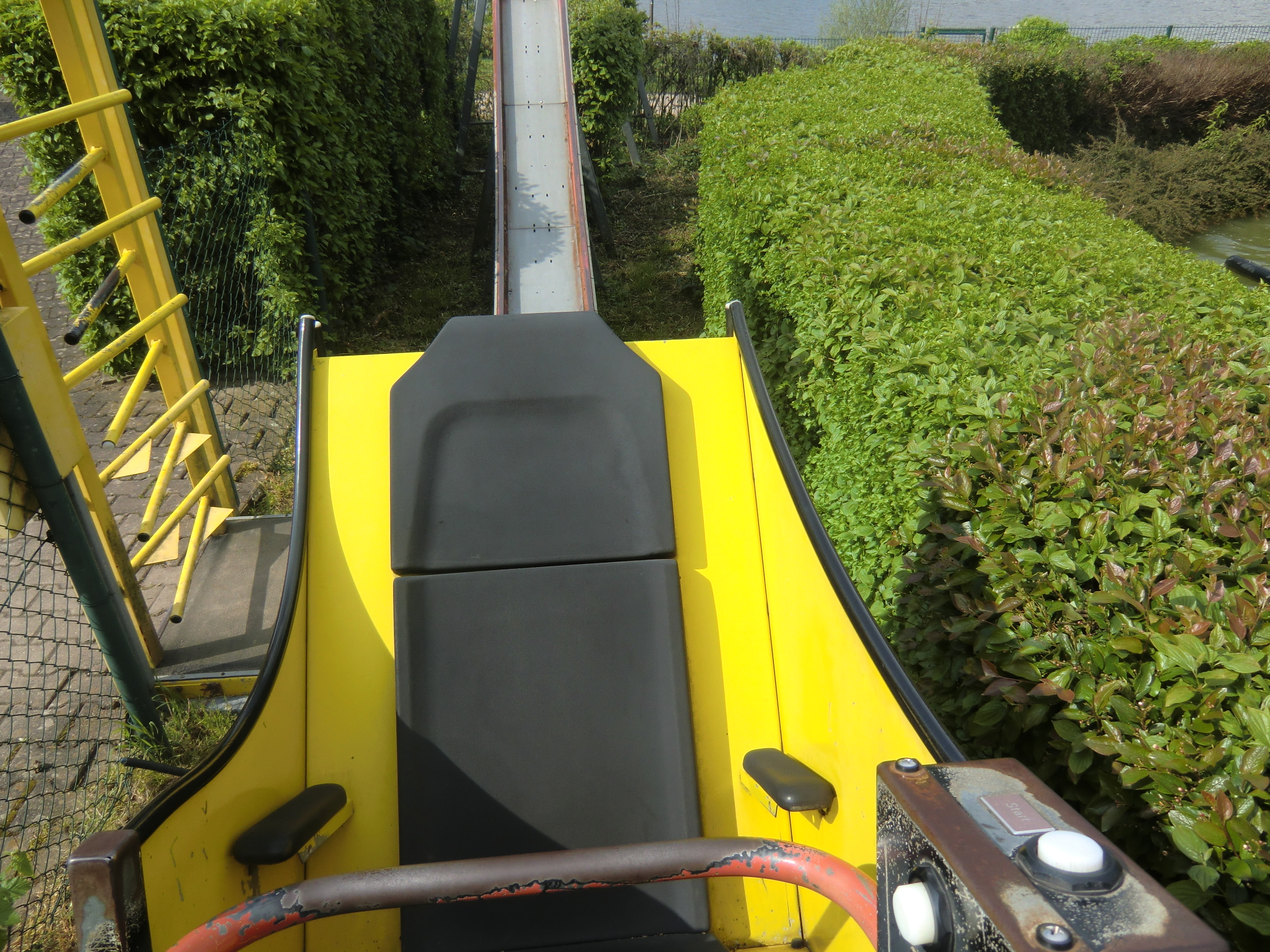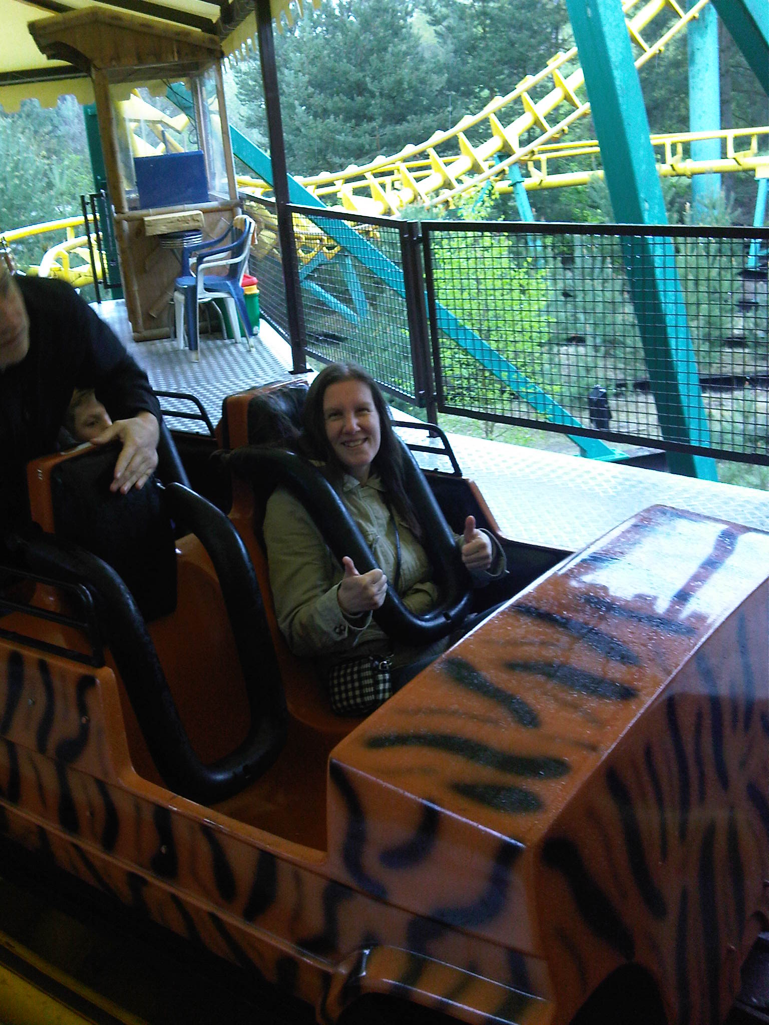 Jetzt kommts: wir in die Wildwasserbahn gestiegen,das Boot steuert den ersten Lifthill an und wir bleiben stecken. Ich nehme mal an,weil mein Mann in zweiter Reihe und ich ganz vorne saß und das Boot deshalb hinten zu weit runter war und vorne hochstand.