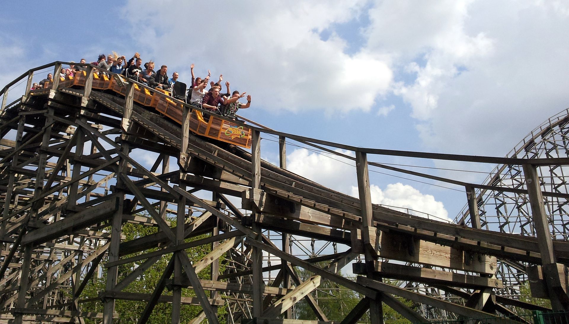 Von der Terrasse hat man einen tollen Blick auf die Achterbahnlandschaft.