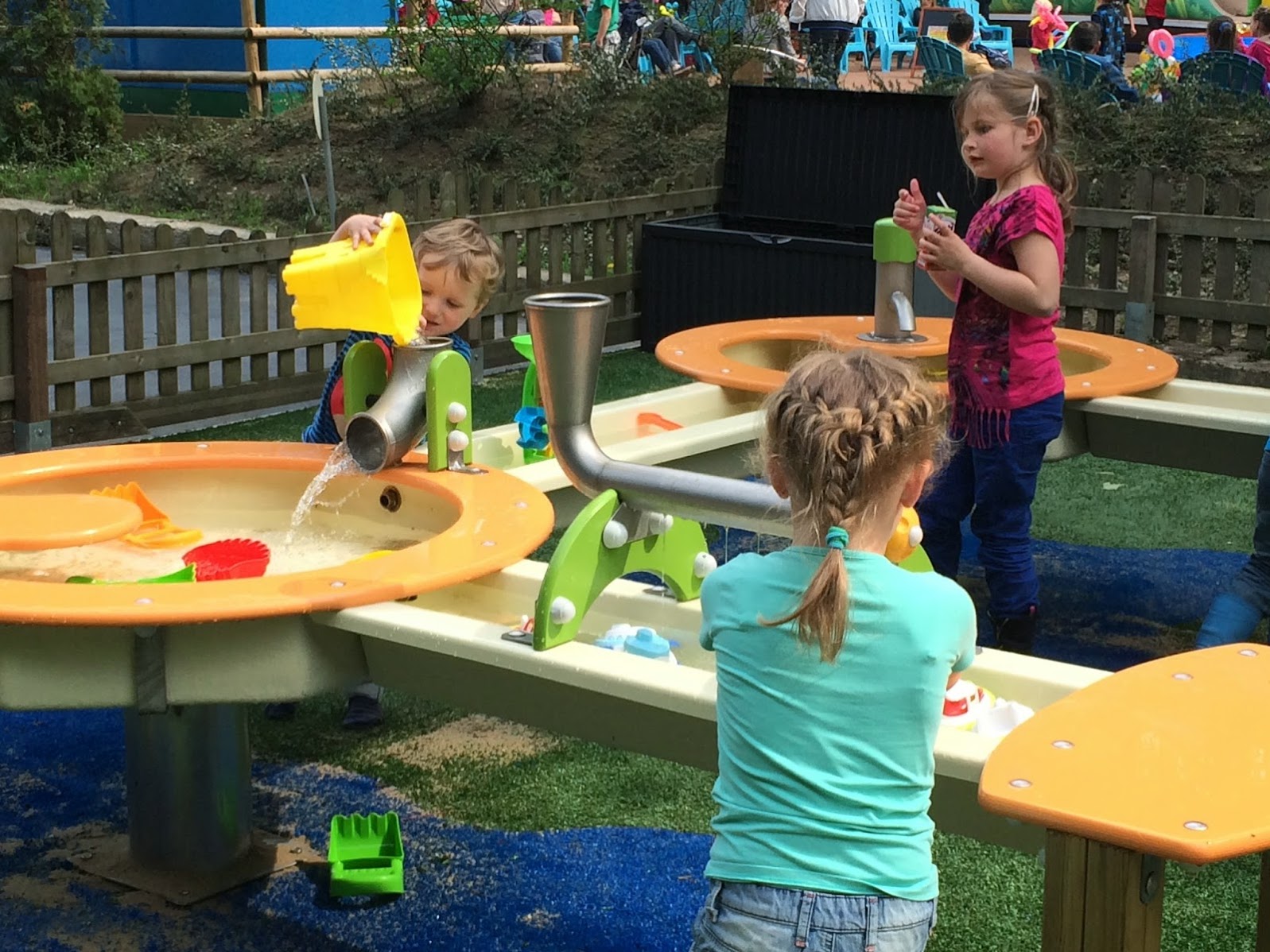 Spaß mit Wasser bietet das neue Wasserdorf. Mit Pumpen, Gießkannen, und Eimern kann hier mit dem Wasser gespielt oder einfach geplanscht werden.