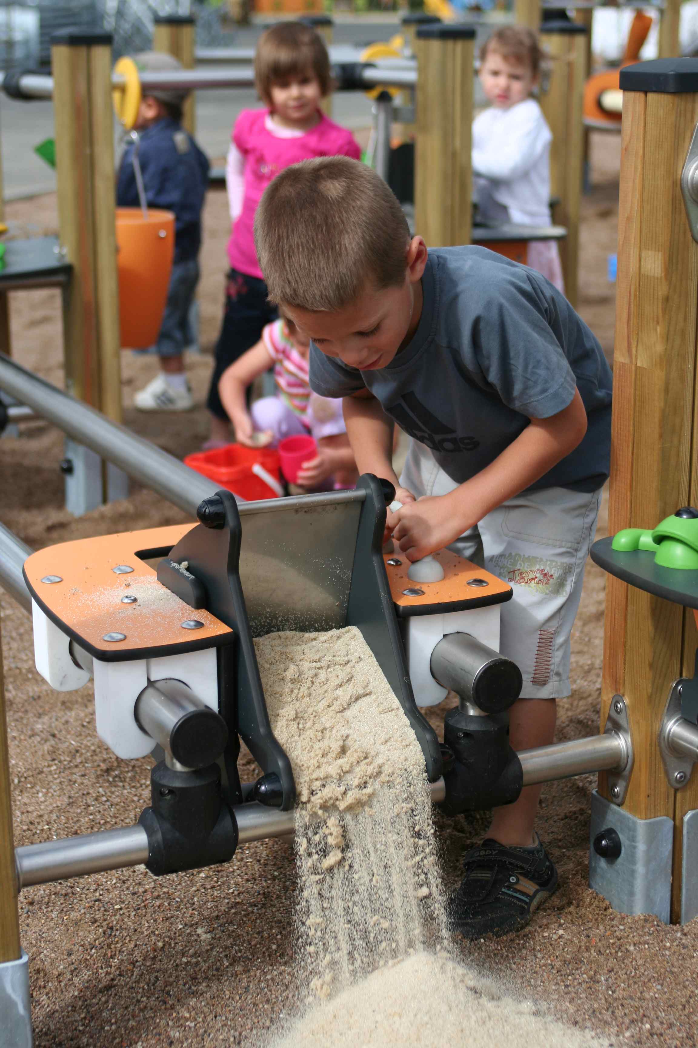 In der Sandfabrik können die Kinder mit dem Sand spielen und bauen und dabei zahlreiche Geräte benutzen. Der Phantasie sind keine Grenzen gesetzt beim Gießen, Transportieren und in Formen füllen der kleinen Körnchen
