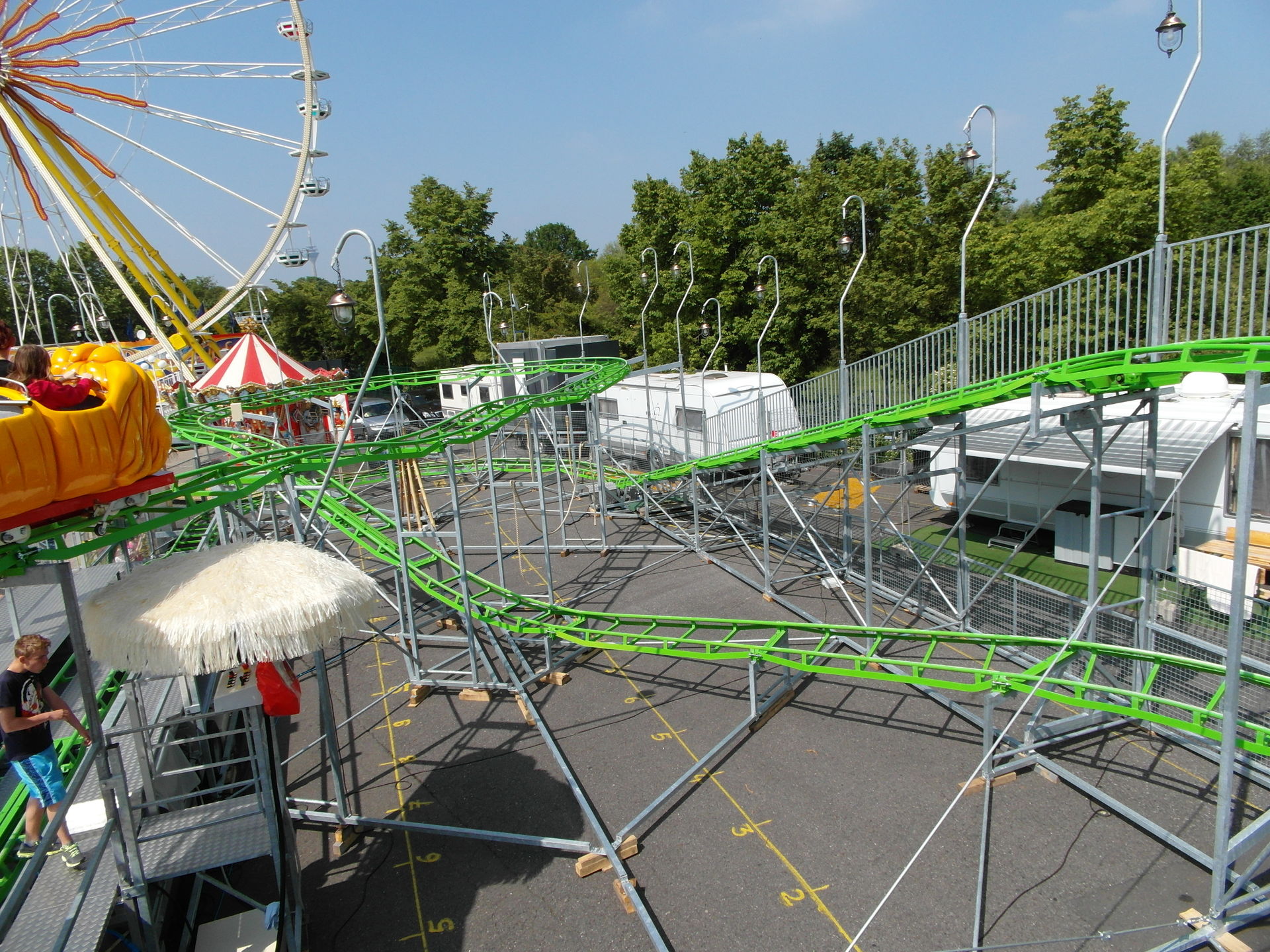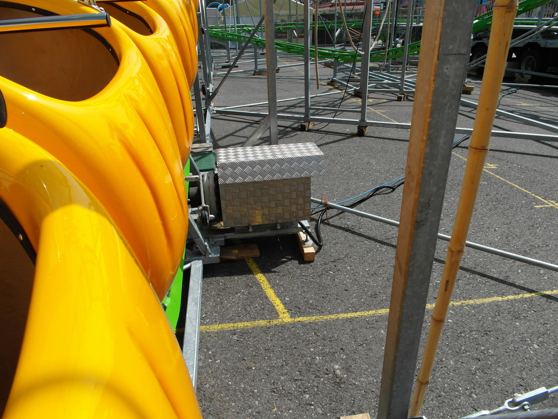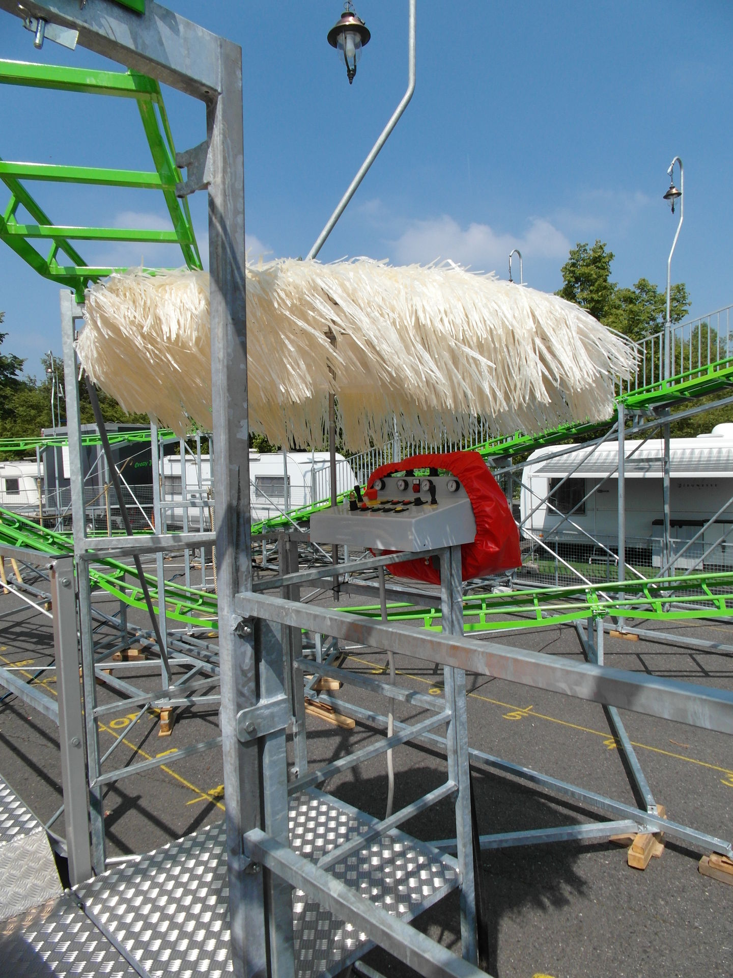 Wird wohl gerade umgestaltet. Schön ist trotzdem anders. Bei meinem Besuch gestern war was mit der Kette bzw der Umlenkung oben. Booster war übrigens richtig gut, der Herr im Fahrstand weiß genau, welche Geschwindigkeit nötig ist um eine gute ausbalancierte Fahrt zu machen. Und bei hohem Tempo zieht der Laden einem fast die Schuhe aus.
