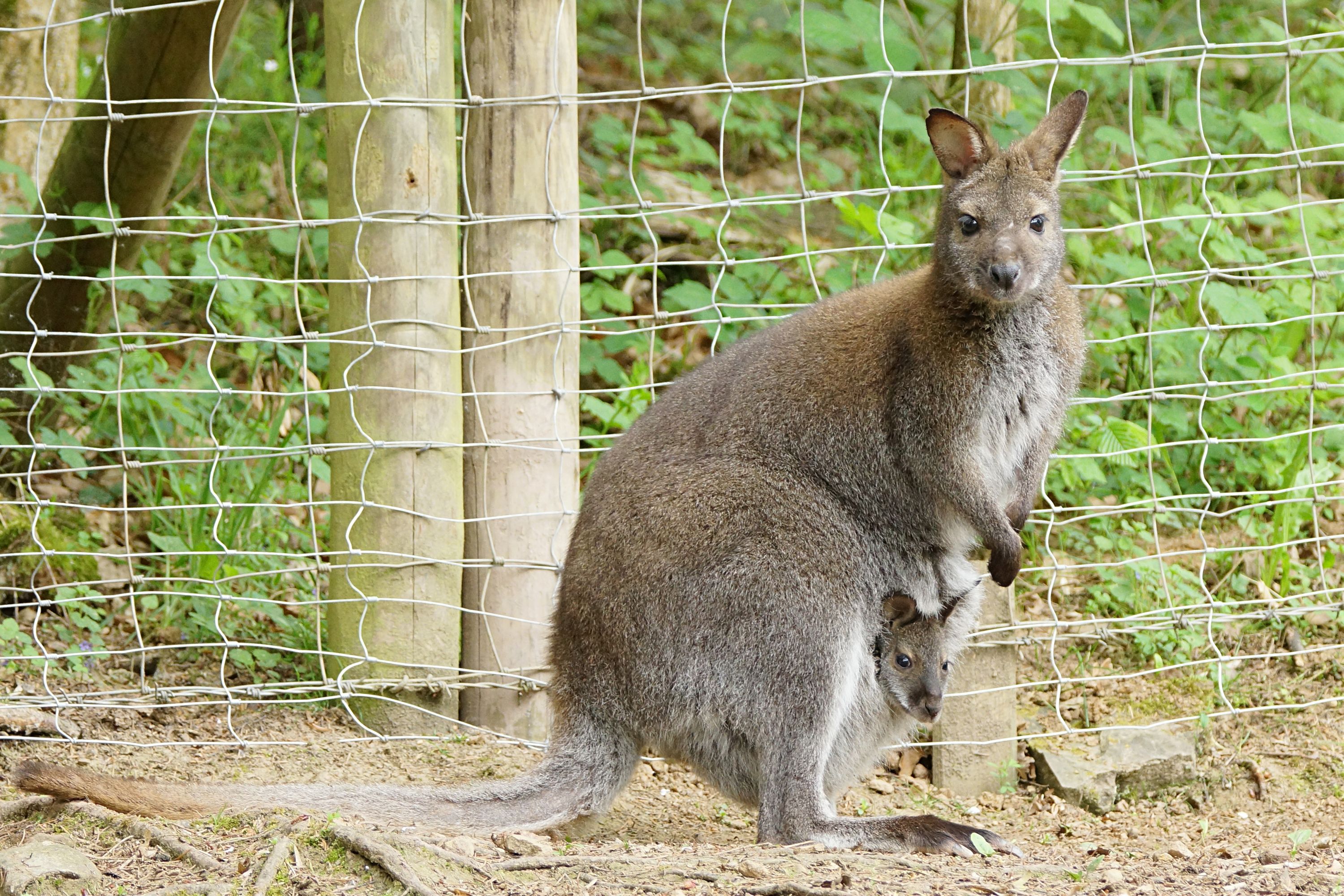 Darunter vier Wallaby Kängurus. Die „Mini Kängurus“, die eigentlich aus Australien stammen, erreichen gerade einmal eine Größe von bis zu 90 cm. Und wer genau hinschaut kann bei einer Känguru Mama ein kleines Babykänguru im Beutel entdecken. Es ist wirklich putzig und schaut immer wieder mit dem kleinen Köpfchen aus dem Beutel heraus. So etwas sieht man sehr selten und das zieht die Besucher magisch an.