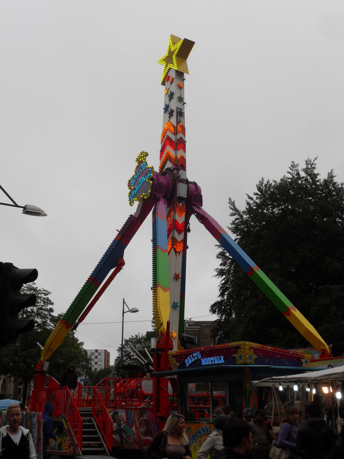 Wir parkten direkt hinter dem "Salto Mortale" den ich seit der Cranger Kirmes vor einigen Jahren jetzt mal wieder sah. Norbert und ich waren der gleichen Meinung, seitdem es die großen Schaukeln gibt wirken diese Dinger irgendwie mickrig und unspektakulär. Das Wittener Kirmespublikum erfreute sich trotzdem am "Salto Mortale" und fuhr laut kreischend mit.