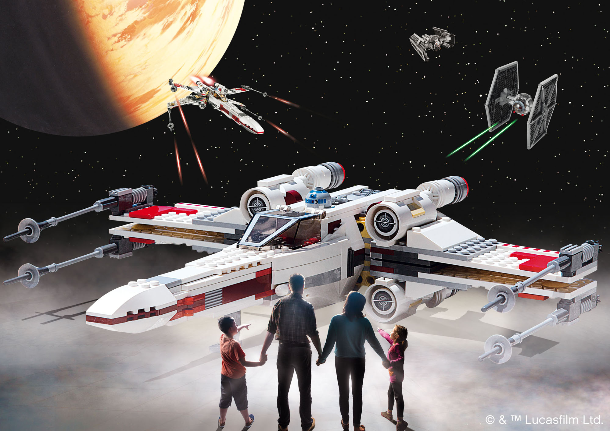 Ein weiteres LEGO STAR WARS Highlight im XXL-Format wartet bereits seit Saisonstart auf die LEGOLAND Besucher: der gigantische LEGO STAR WARS X-Wing Starfighter in Originalgröße. Der X-Wing ist das größte, jemals erbaute LEGO Modell der Welt und für alle Fans ein absolutes Muss. Das Modell wurde in der LEGO Modellwerkstatt im tschechischen Kladno von 32 Modelldesignern aus 5.335.200 handelsüblichen LEGO Steinen erbaut. Es wiegt mehr als 20.000 Kilogramm, ist über drei Meter hoch sowie 13 Meter lang und breit. Der Gigant befindet sich erstmals auf europäischem Boden und ist exklusiv bis 2. November 2014 in der LEGO STAR WARS X-Wing Modellausstellung im Park zu bewundern.