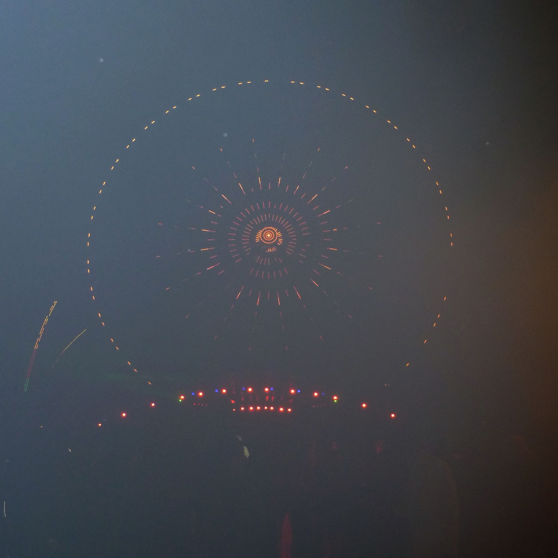 Das Maze ist links in den Hallen auf der Insel. Bei vollständiger Dunkelheit wirkt das noch viel besser, aber das hat meine Kamera nicht geschafft.