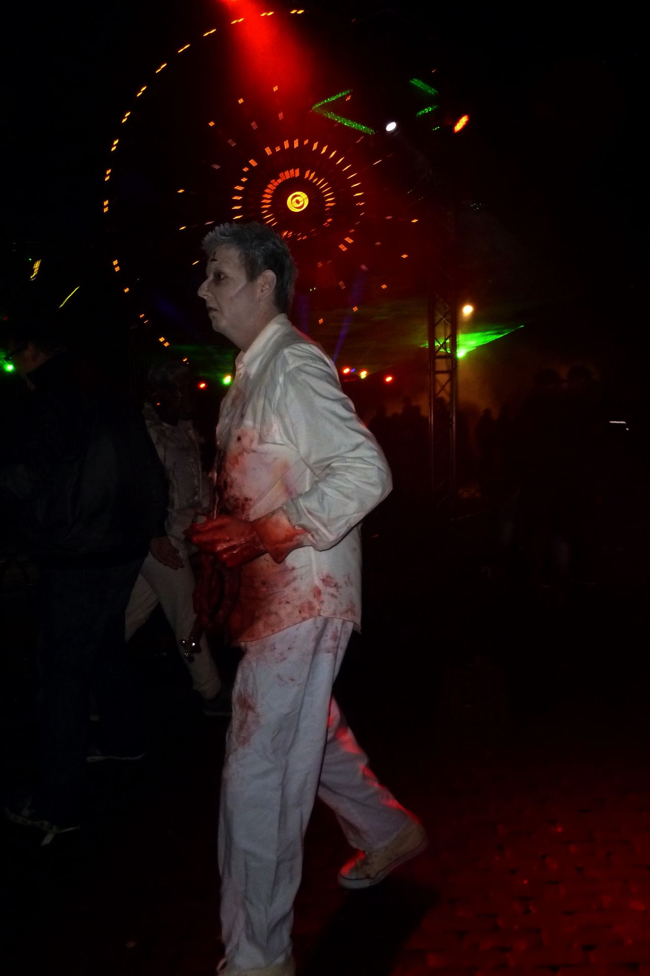 Anschließend setzten wir dann unseren Rundgang vor. Auf dem Programm standen noch 3 Scarezones und ein Maze. Wir starteten mit der Scarezone Anton Freak. Einer Märchenscarezone welche sich im Bereich der Wildwasserbahn befindet. Die Scarezones in diesem Bereich zeichneten sich schon früher schon durch schöne Licht-Sound-Kulissen aus. Harvest sei ihr zum Beispiel genannt. Auch Anton Freak konnte wieder durch diese Aspekte überzeugen. Mir fehlte hier aber das agieren mit den Besuchern. Irgendwie waren hier auch weniger Actor unterwegs. Naja, unter dem Strich eine schöne Scarezone, die aber von den Vier guten Scarezones die schlechtetse war.