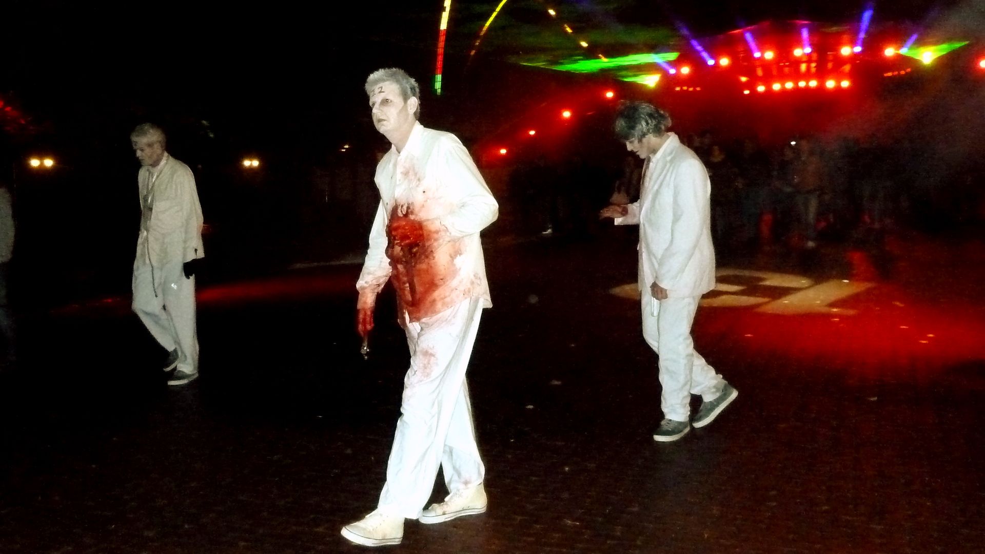 Kommen wir zuletzt zu noch was positiven. Die Scarezone "13" ist nämlich die letzte die wir besucht haben. 13 ist ebenfalls vor dem Riesenrad platziert und setzt quasi immer aus wenn die Eddie Shows sind. Hier stimmte einfach wieder alles. Super Scareactor, eine Soundkulisse und das darauf abgestimmt regelmäßig die Flammenwerfer eingesetzt wurden, war einfach Genial. Top. So muss eine Scarezone aussehen.