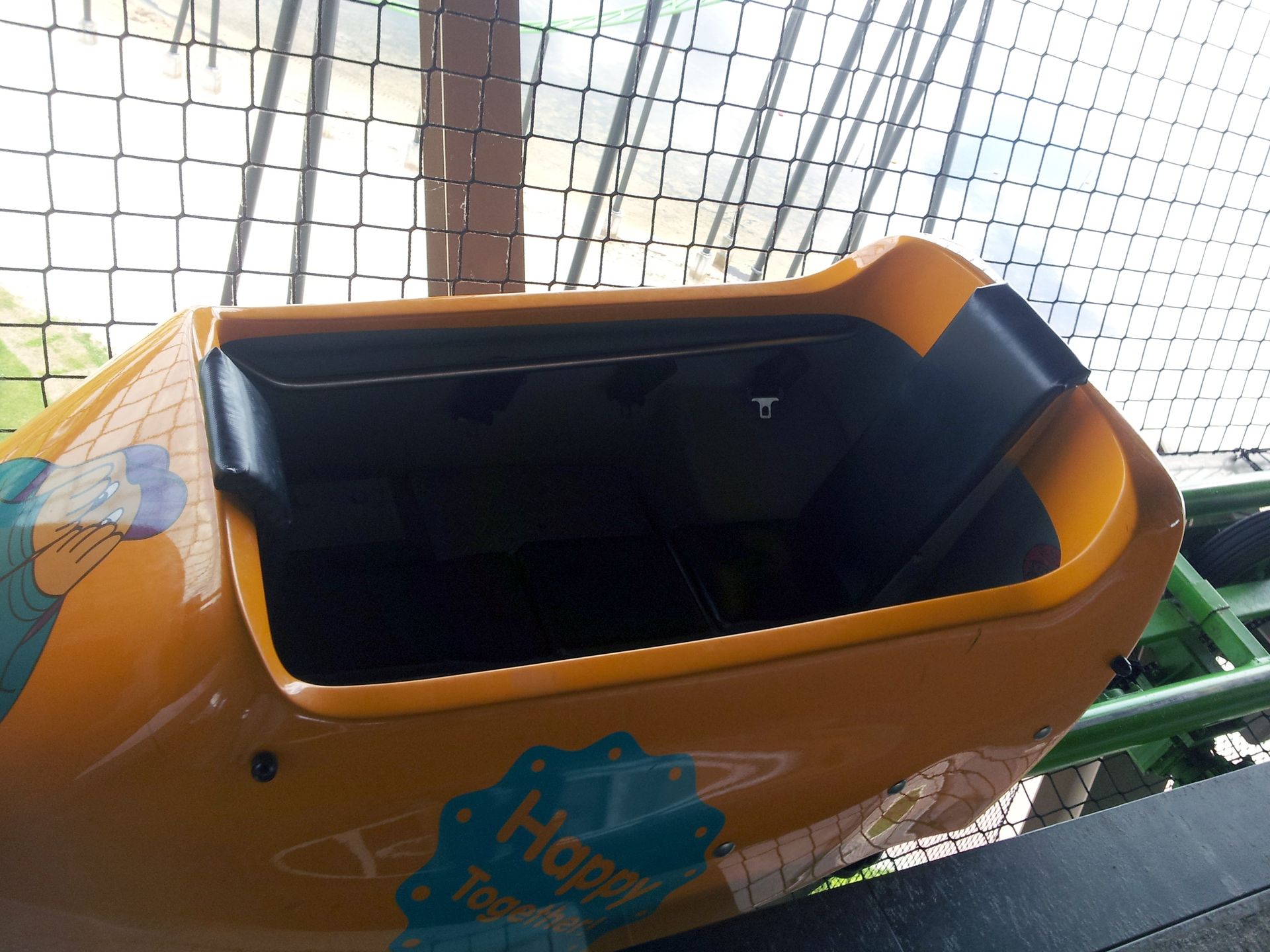 Die leichten Wagen haben keinerlei Bügel - nur einen normalen Beckengurt.